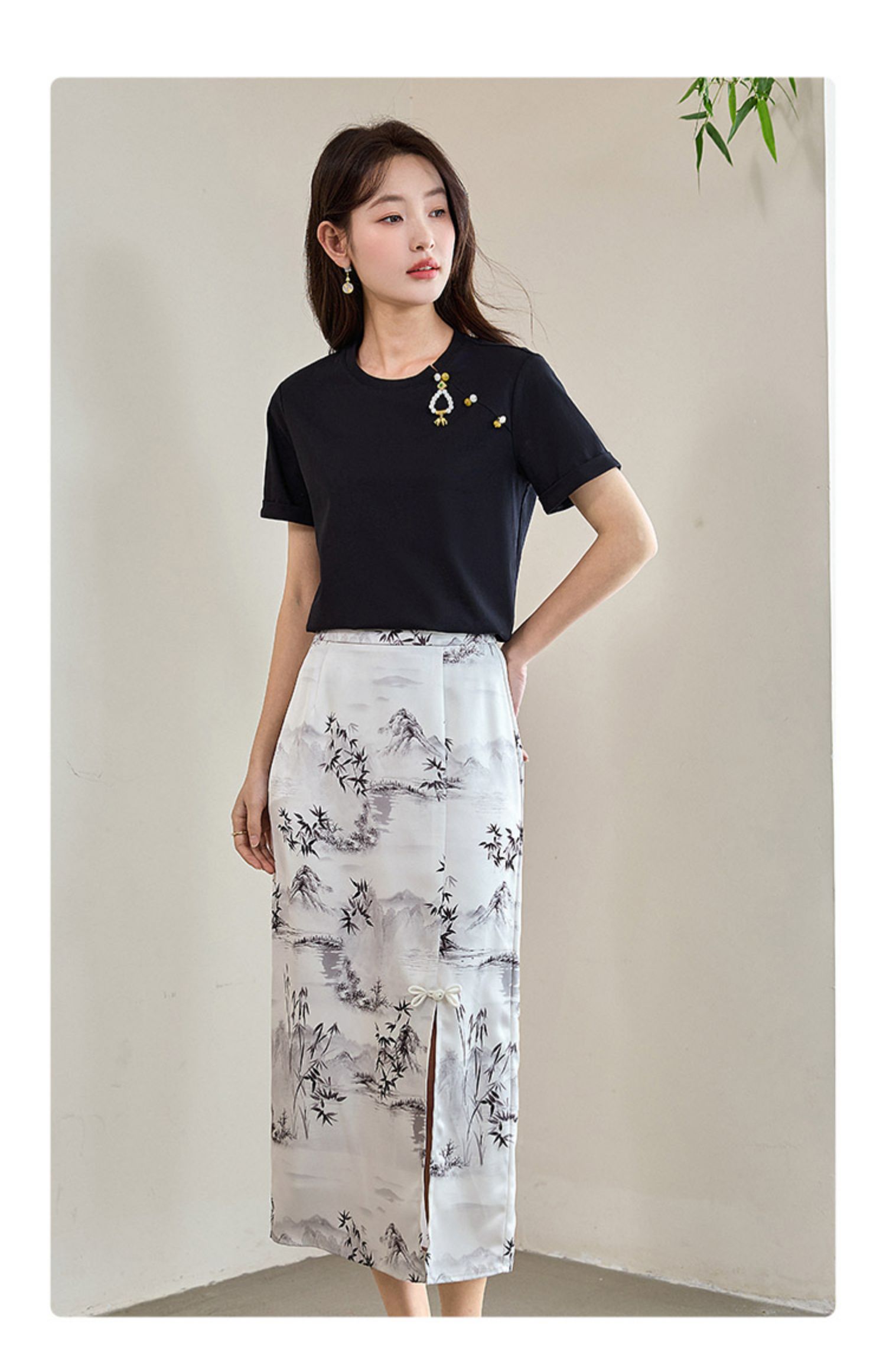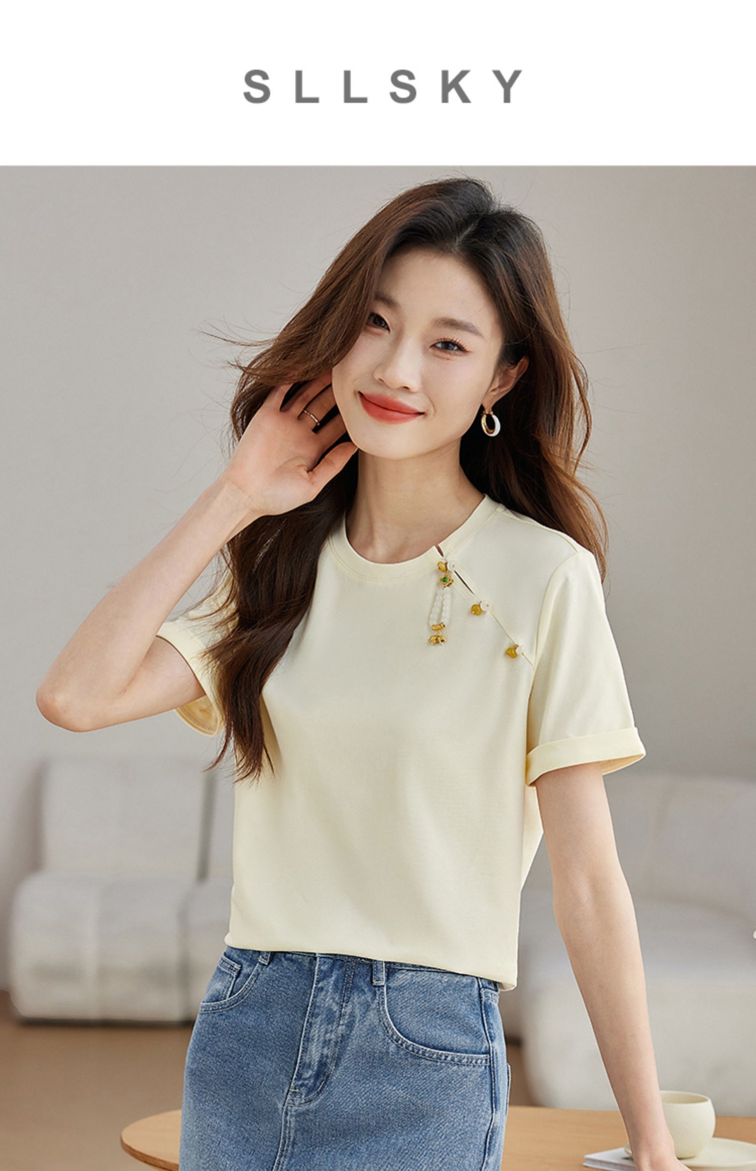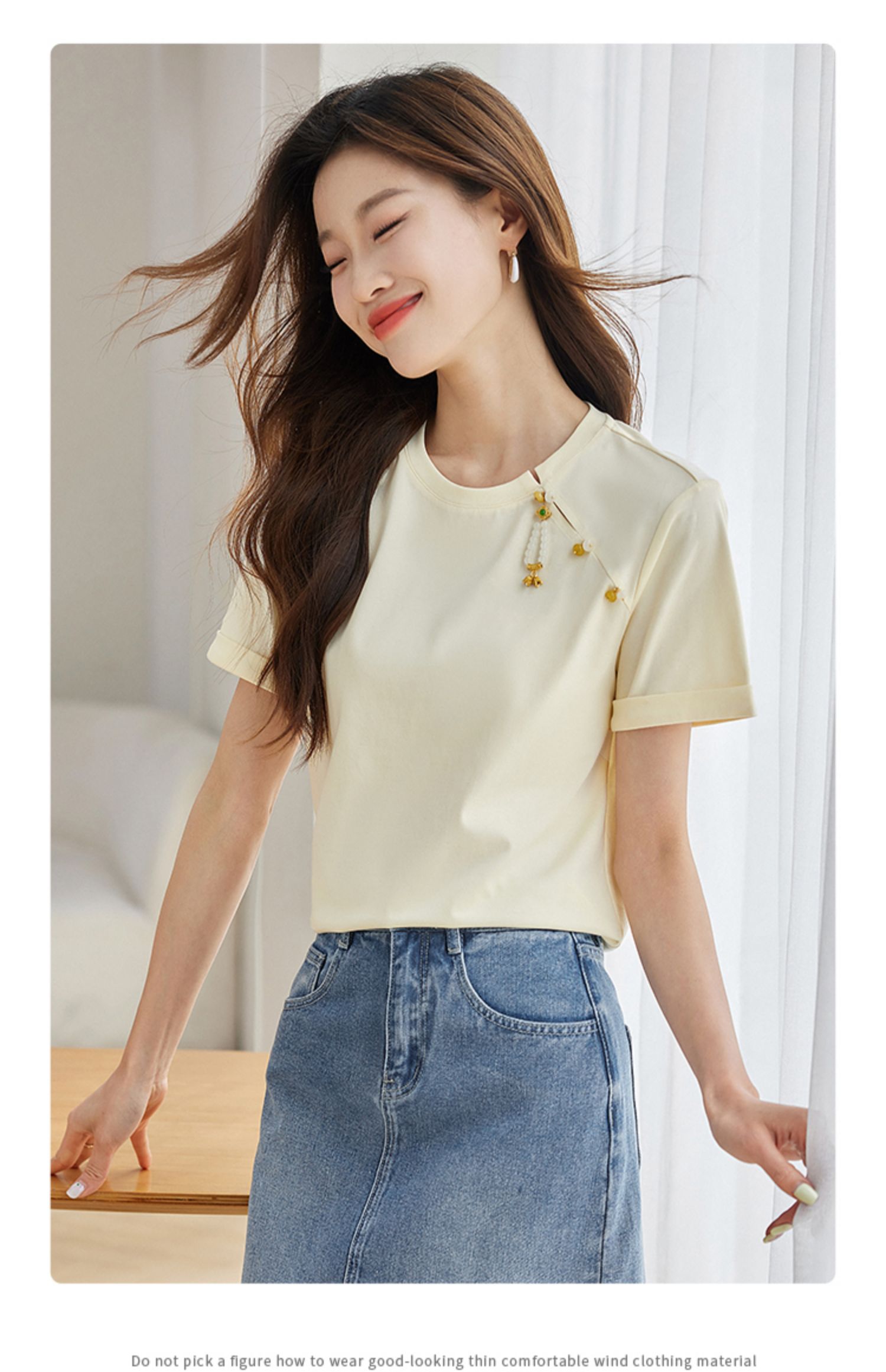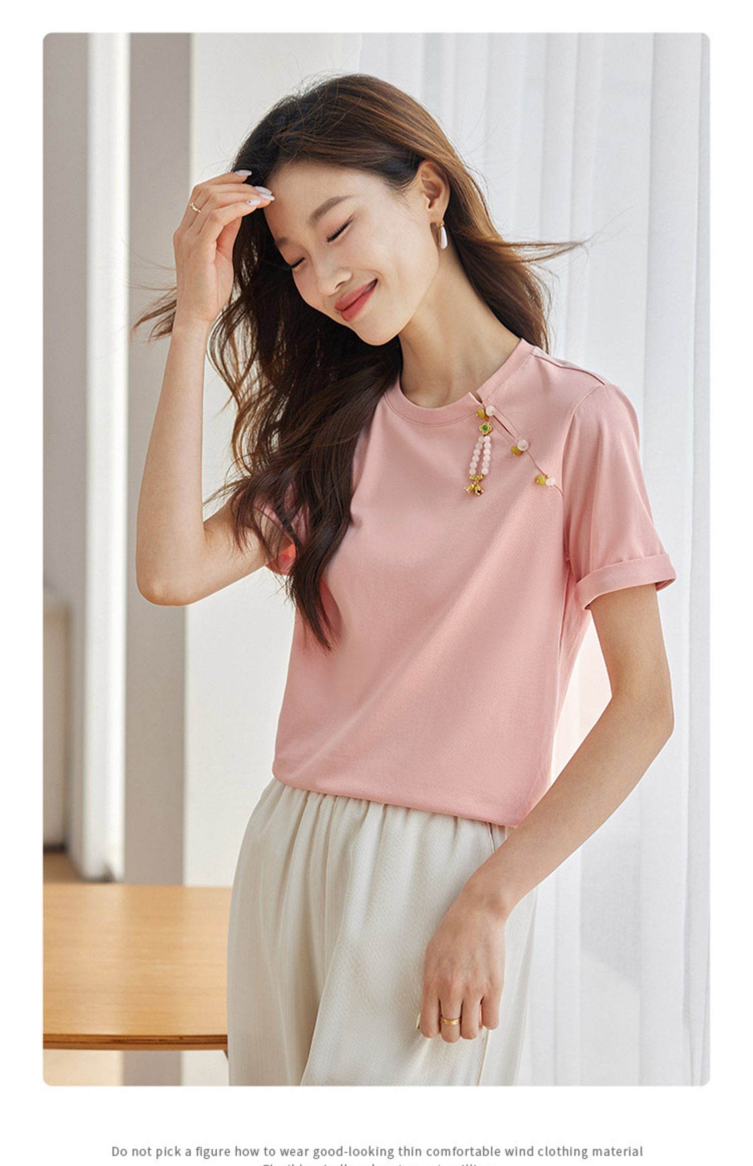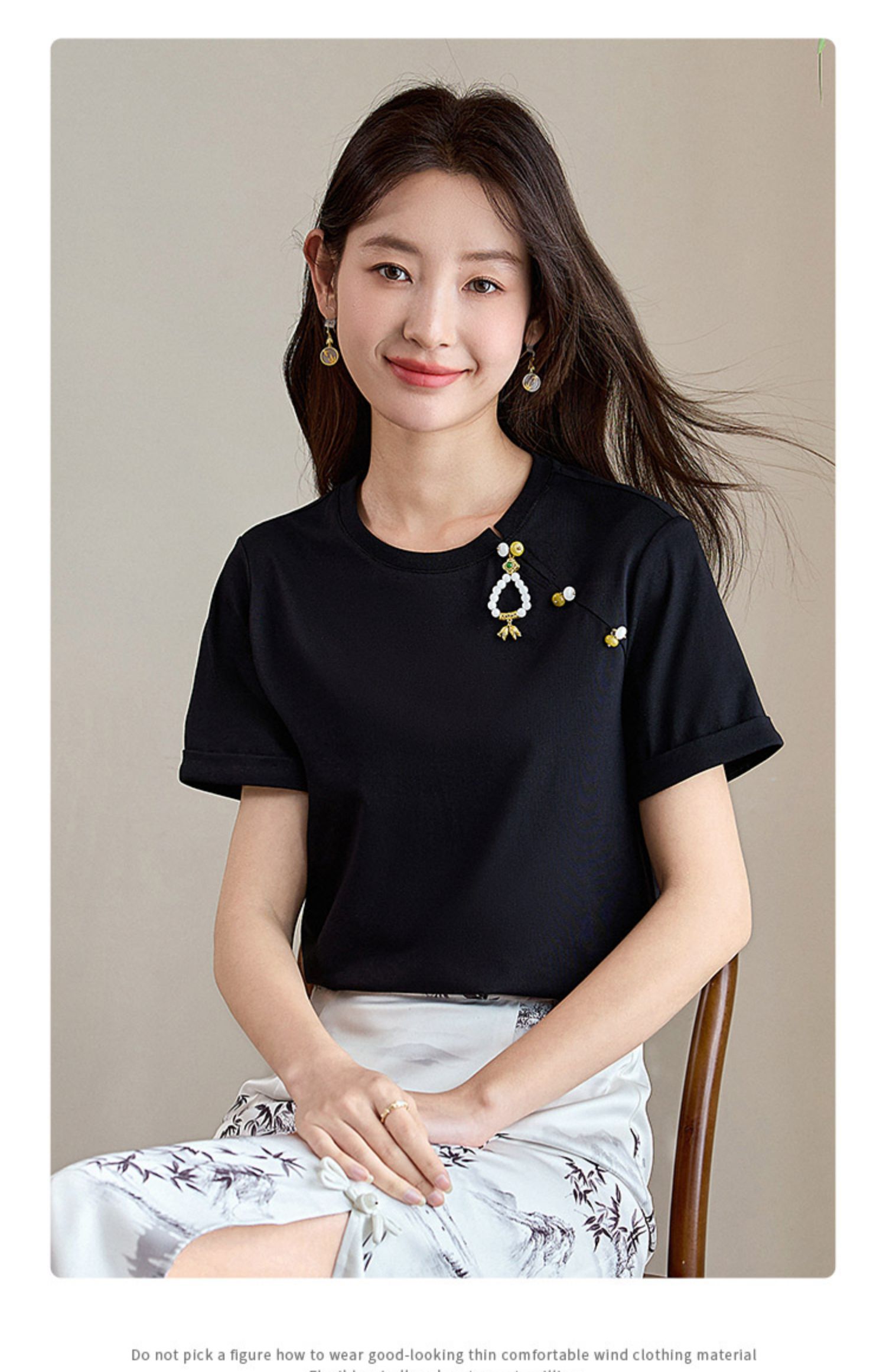 【专属特价】熙世界玉石吊坠新中式短袖T恤女2025夏新款圆领显瘦轻国风上衣
