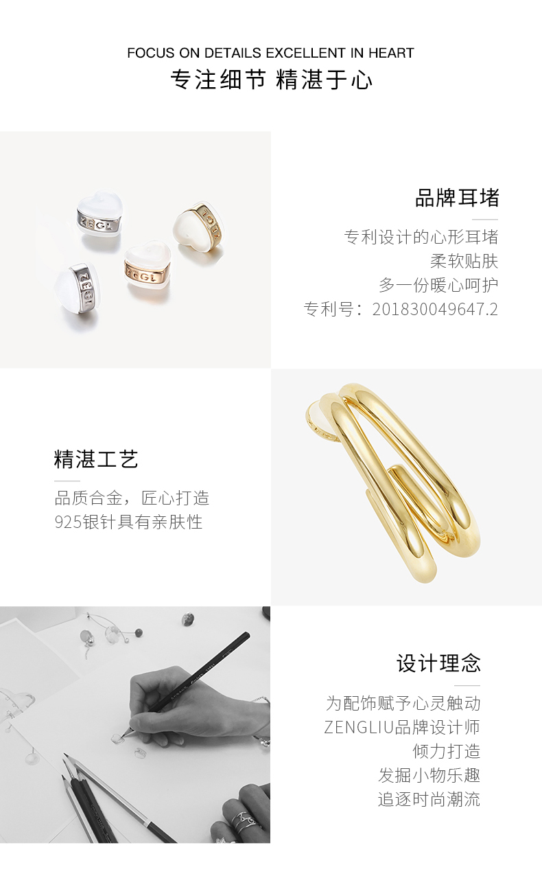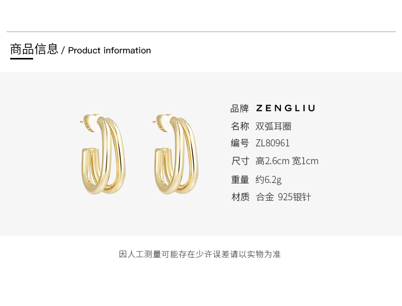 ZENGLIU弧形耳钉简约耳圈女ins冷淡风气质网红耳环925银针耳饰品