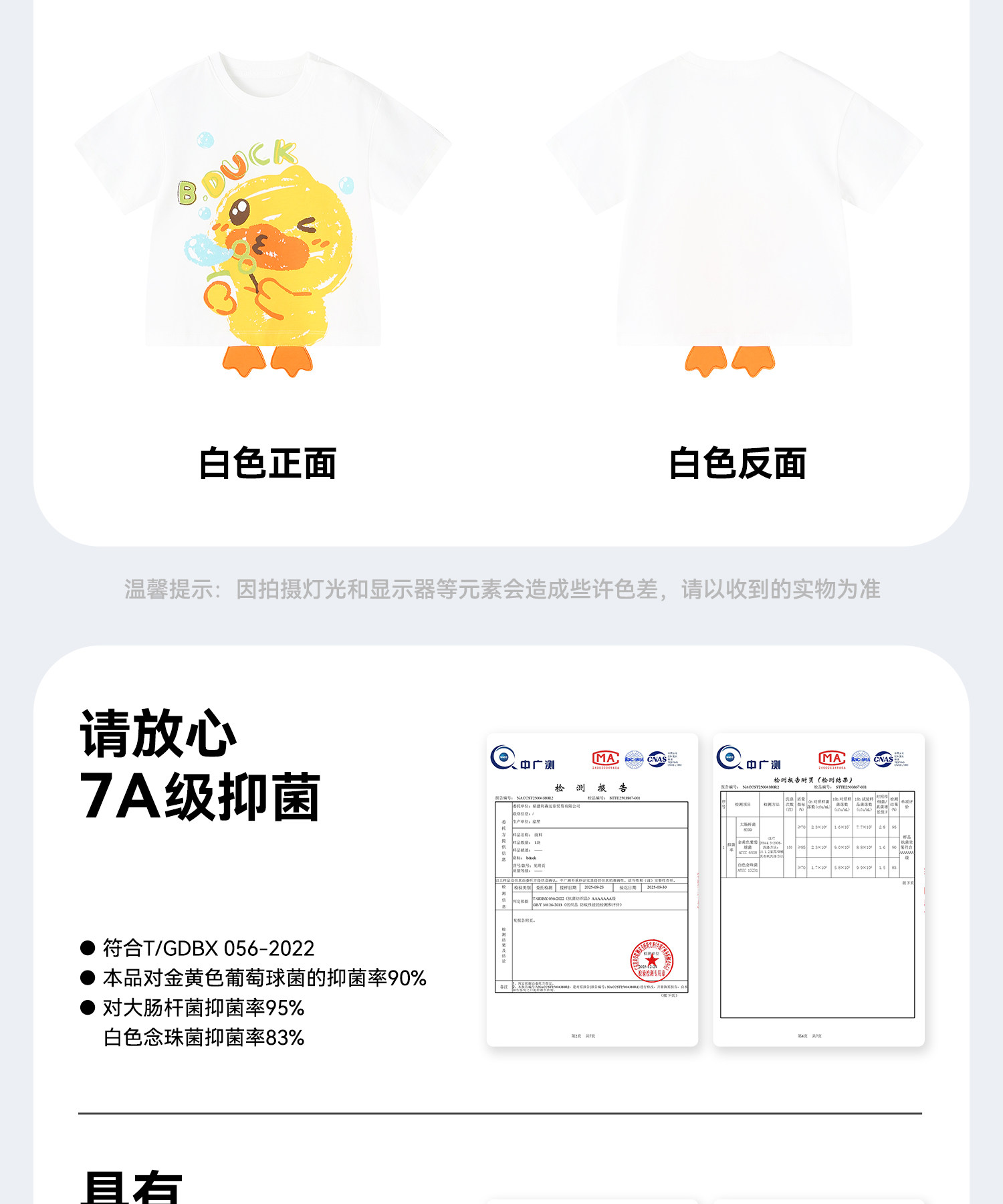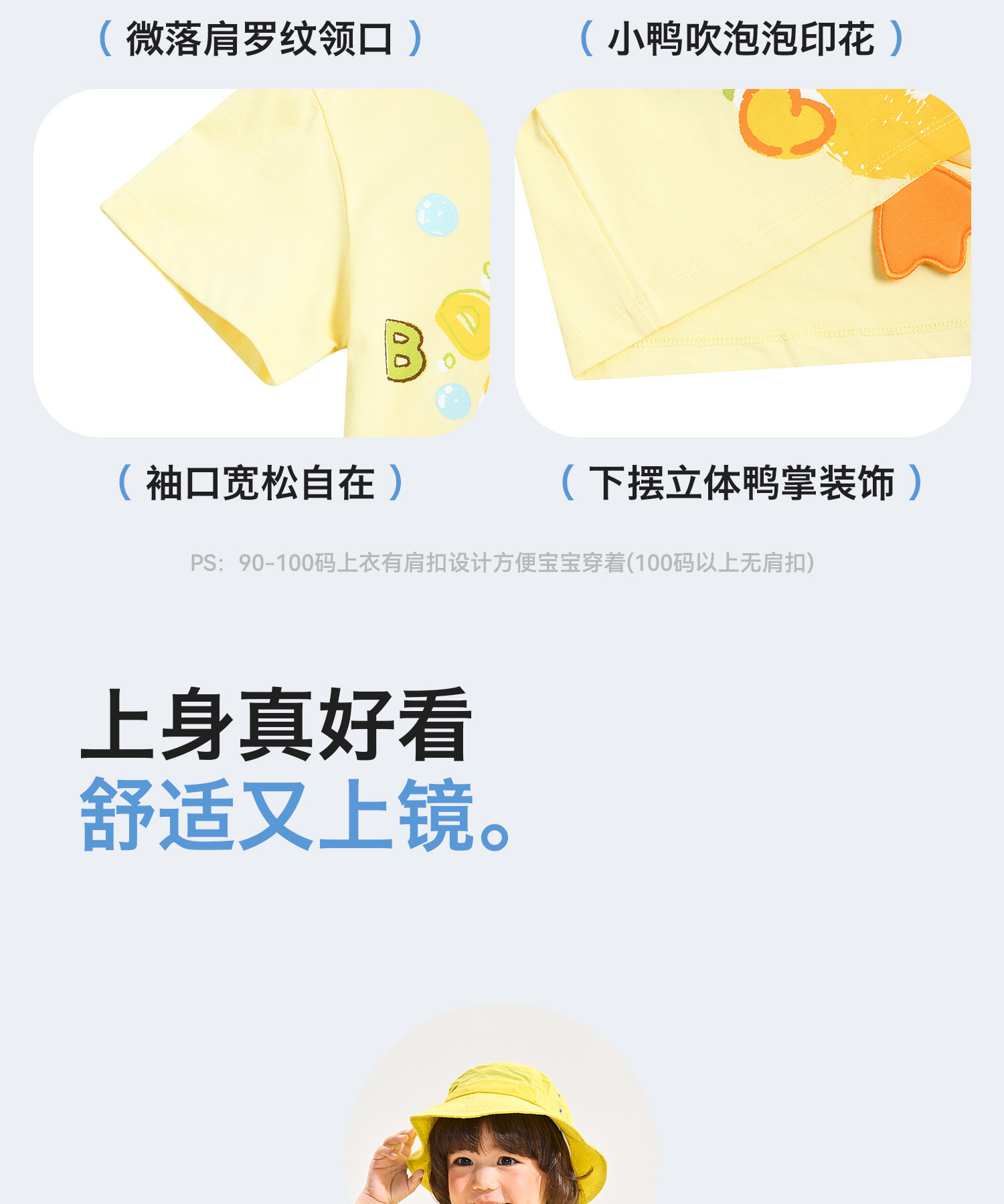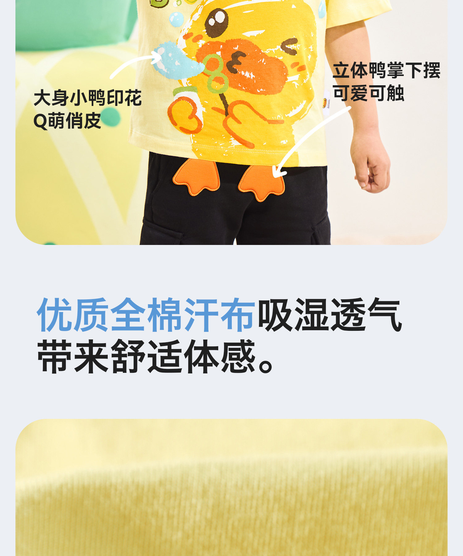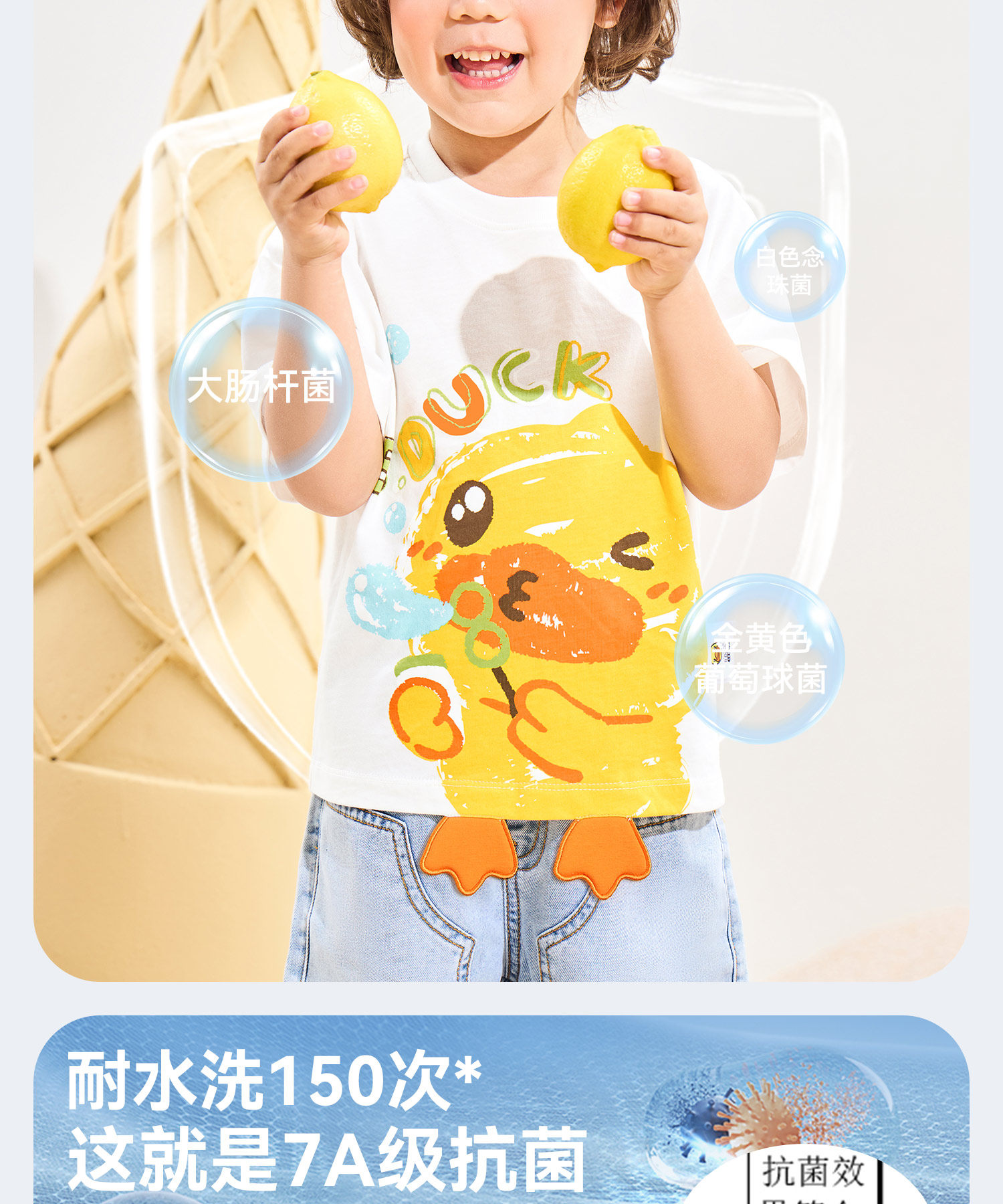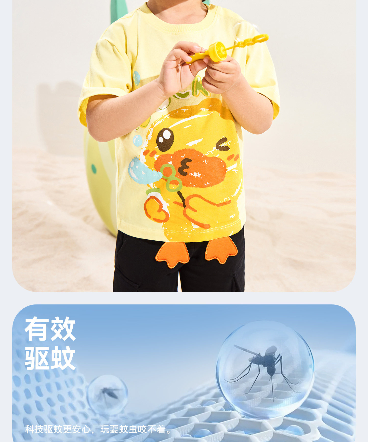 [驱蚊抗菌]小黄鸭童装男童短袖T恤宝宝夏装纯棉上衣儿童半袖衣服90-140 BF2701037