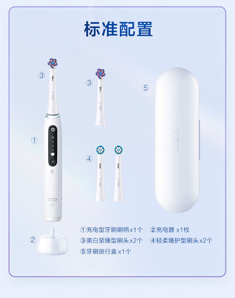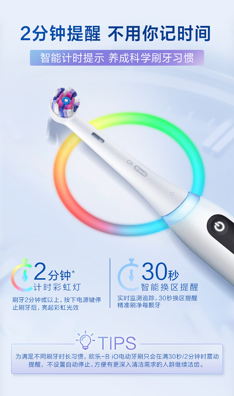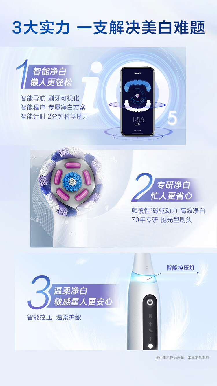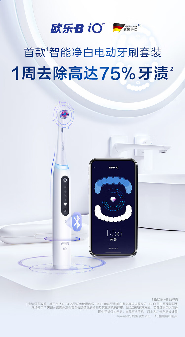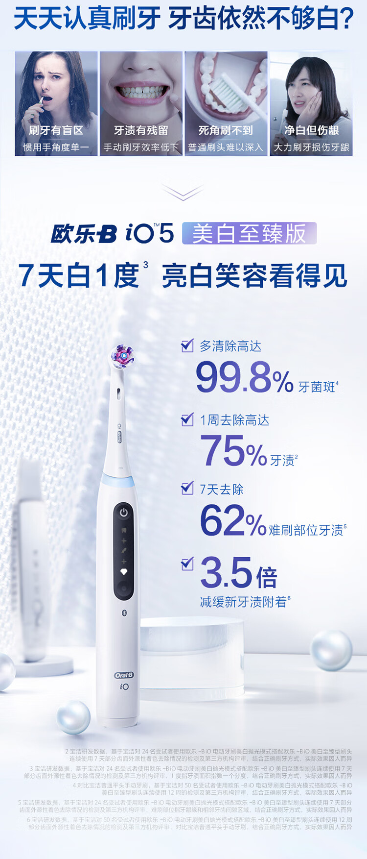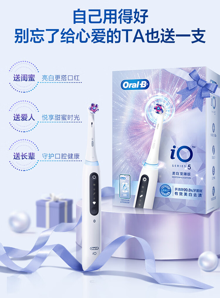 欧乐B成人电动牙刷成人iO5净白刷 iO系列圆头磁波刷微震科技牙齿美白深度清洁情侣送礼