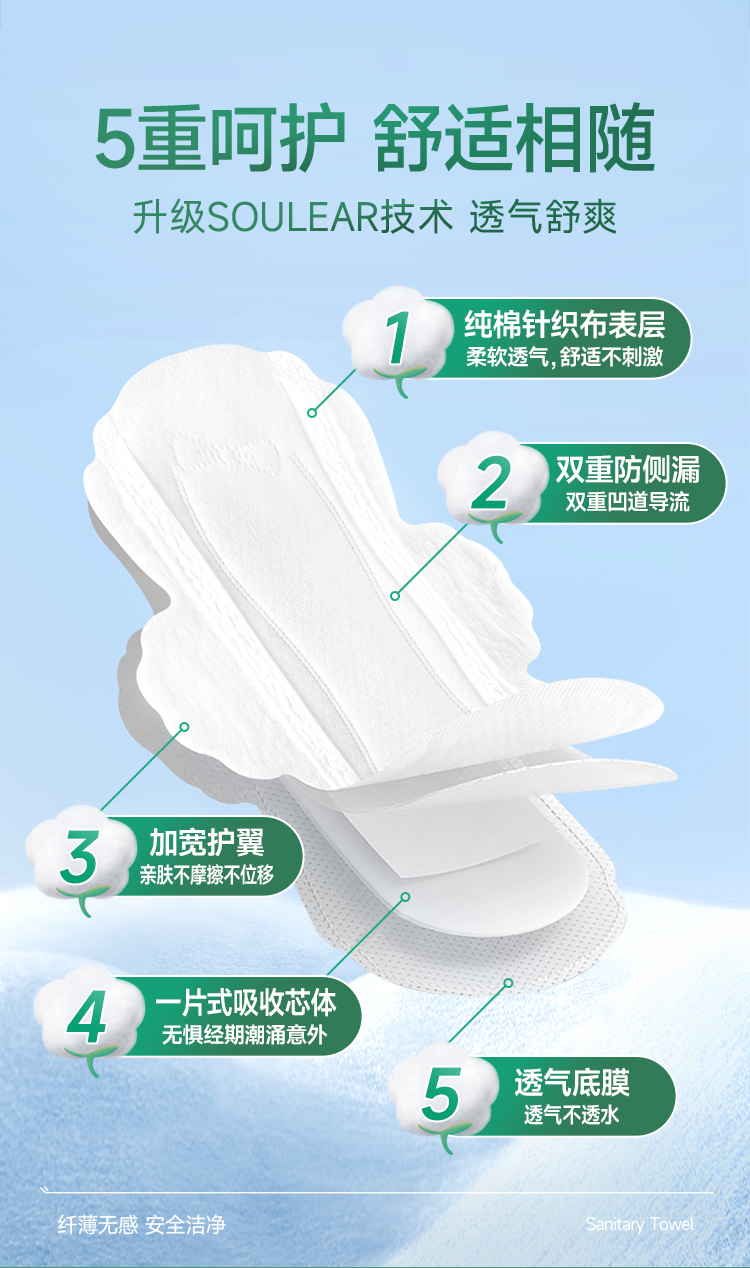 【下单两件立减10元】全新透气悬浮芯卫生巾 超薄透气不侧漏 日用夜用组合装 7秒瞬吸不反渗 纯棉姨妈巾无荧光剂无增白剂