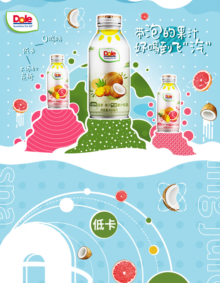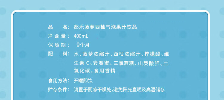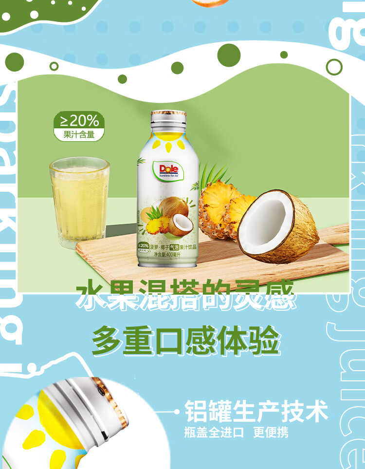 【特惠】都乐MIX气泡果汁6瓶组合装(菠萝西柚气泡果汁400ml/瓶*3+菠萝椰子气泡果汁400ml/瓶*3)