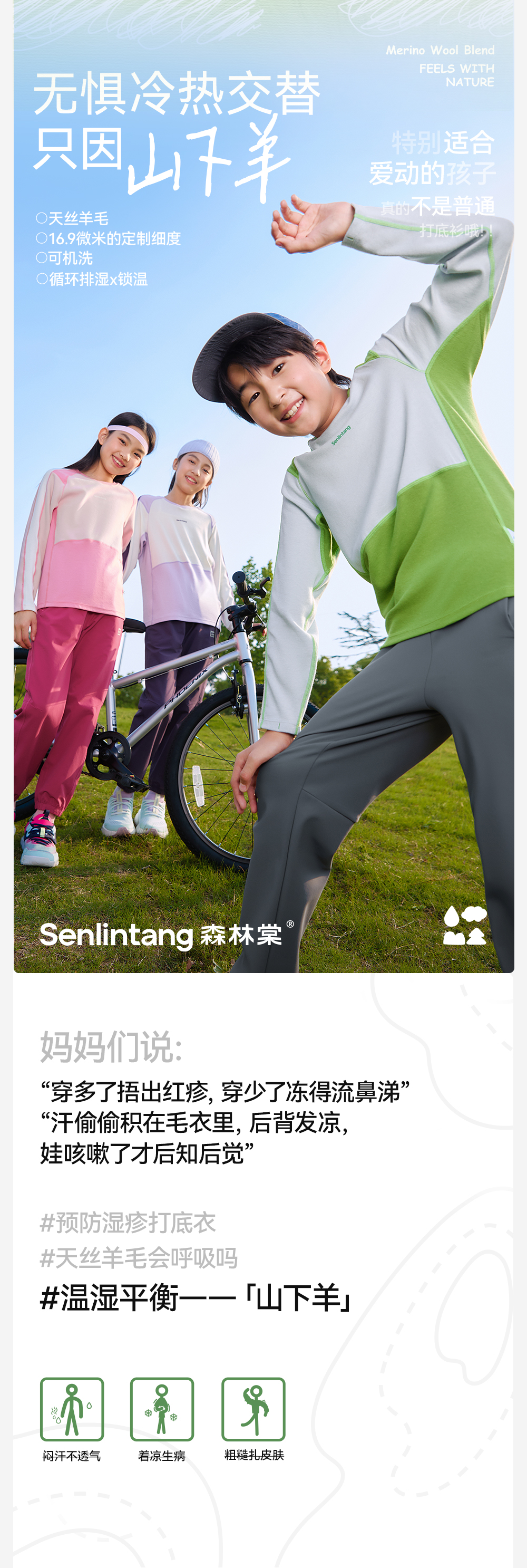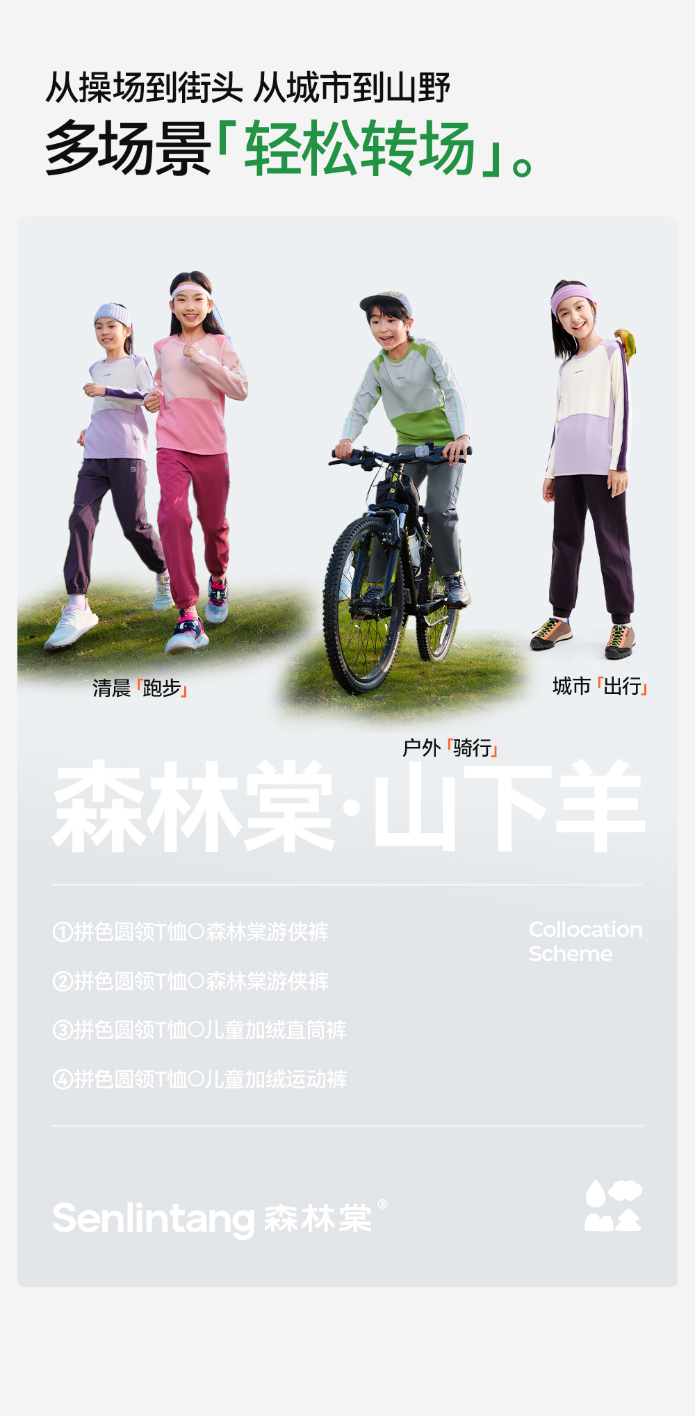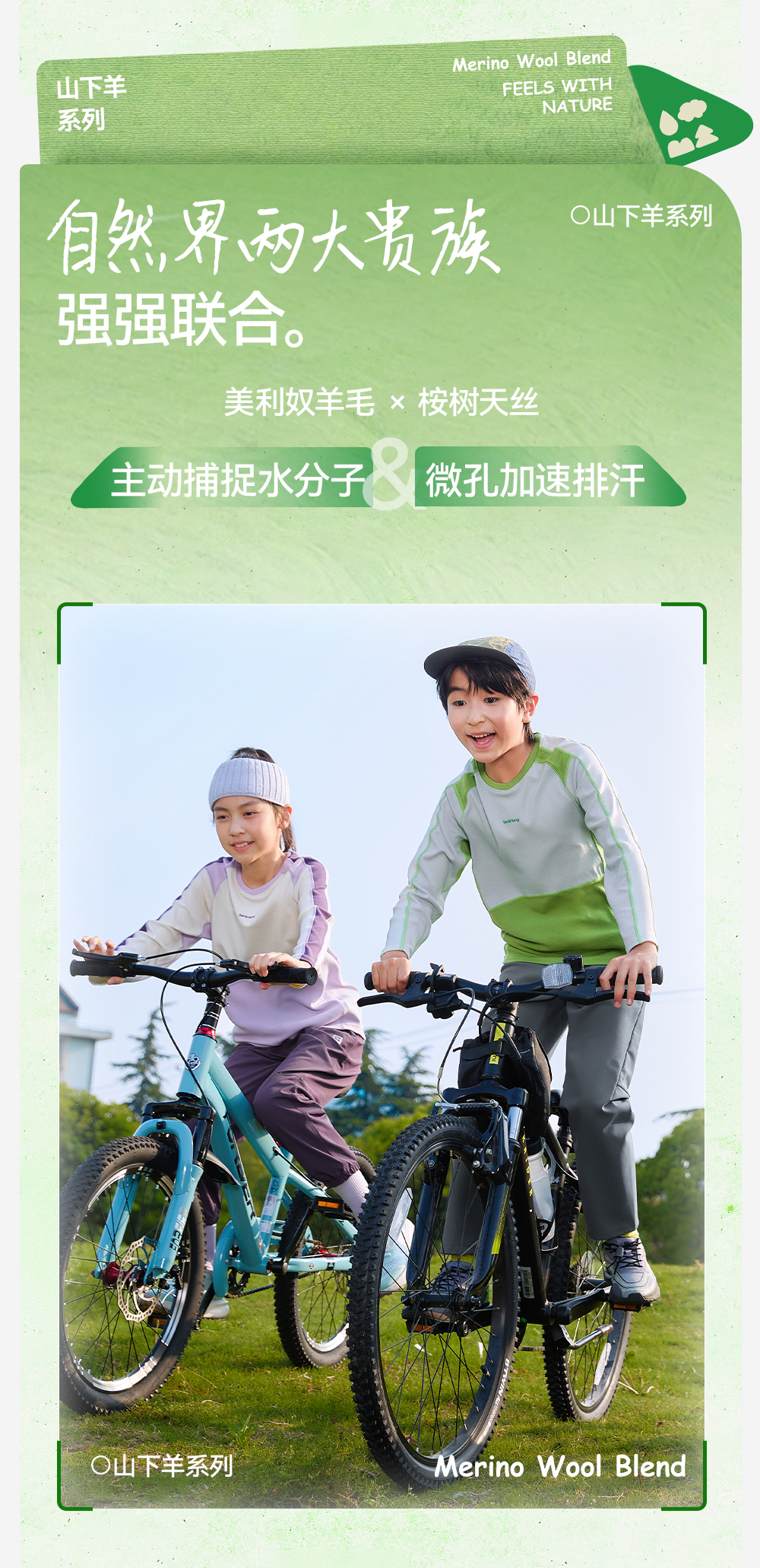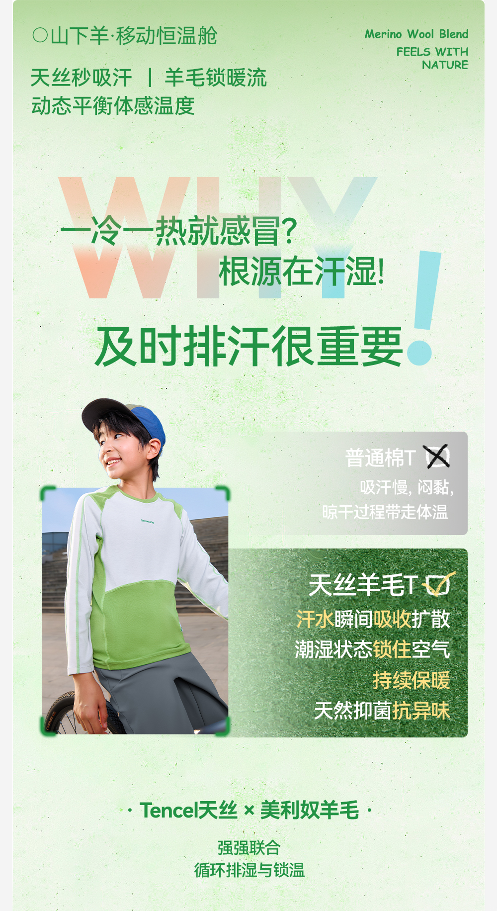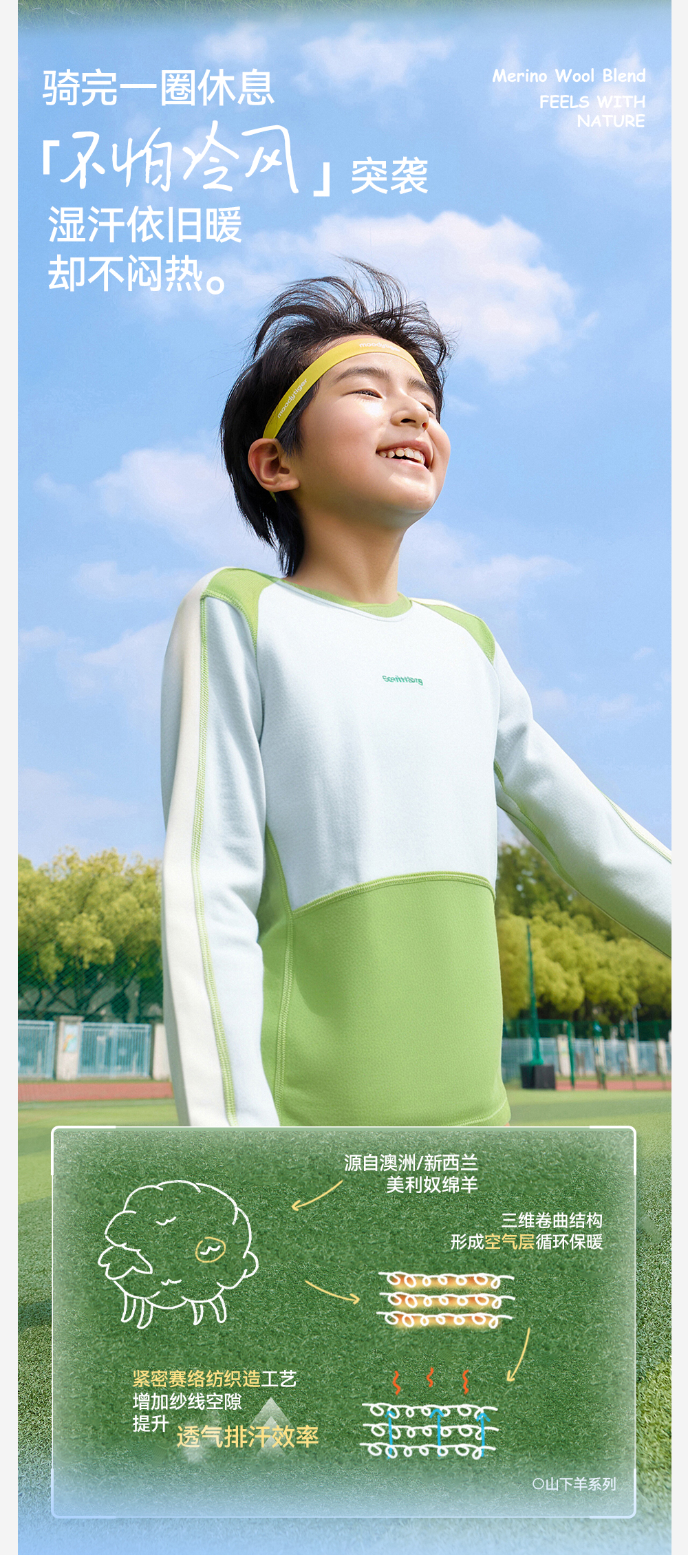 *【天丝羊毛拼色圆领T恤】森林棠25秋款 儿童吸湿透气运动长袖上衣60253058