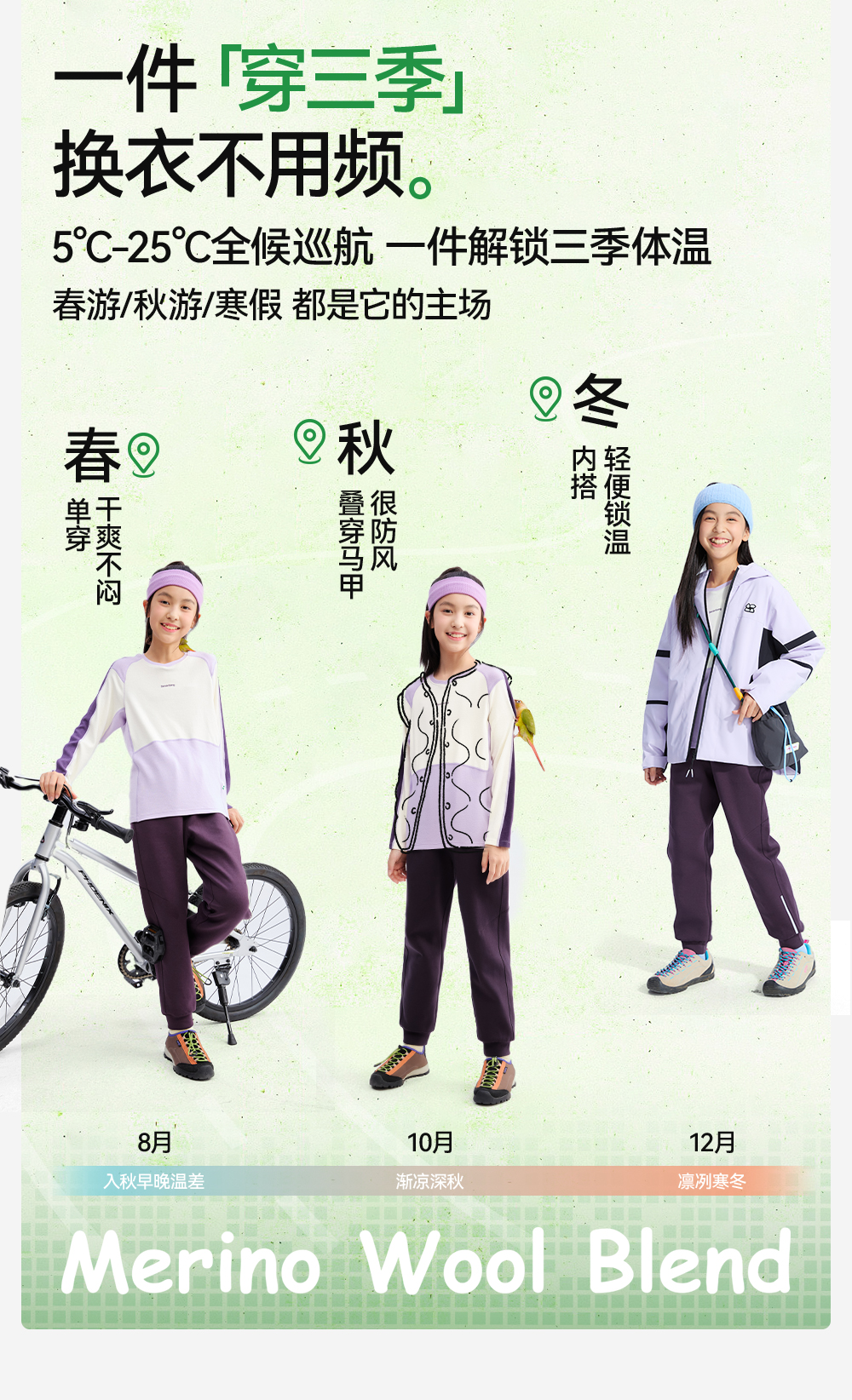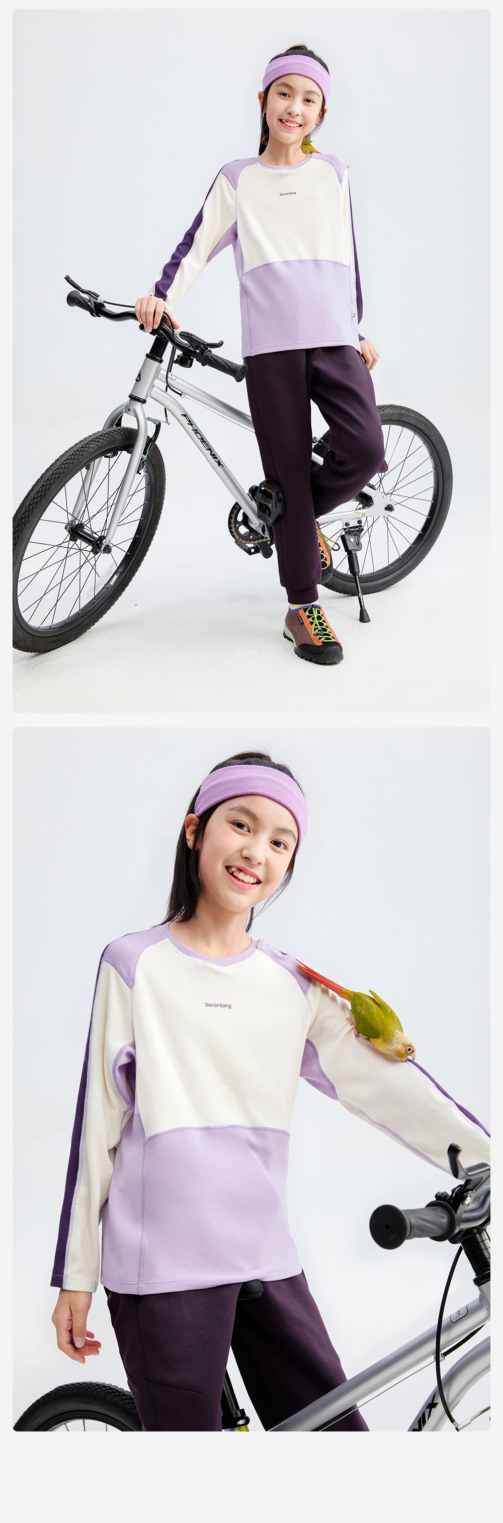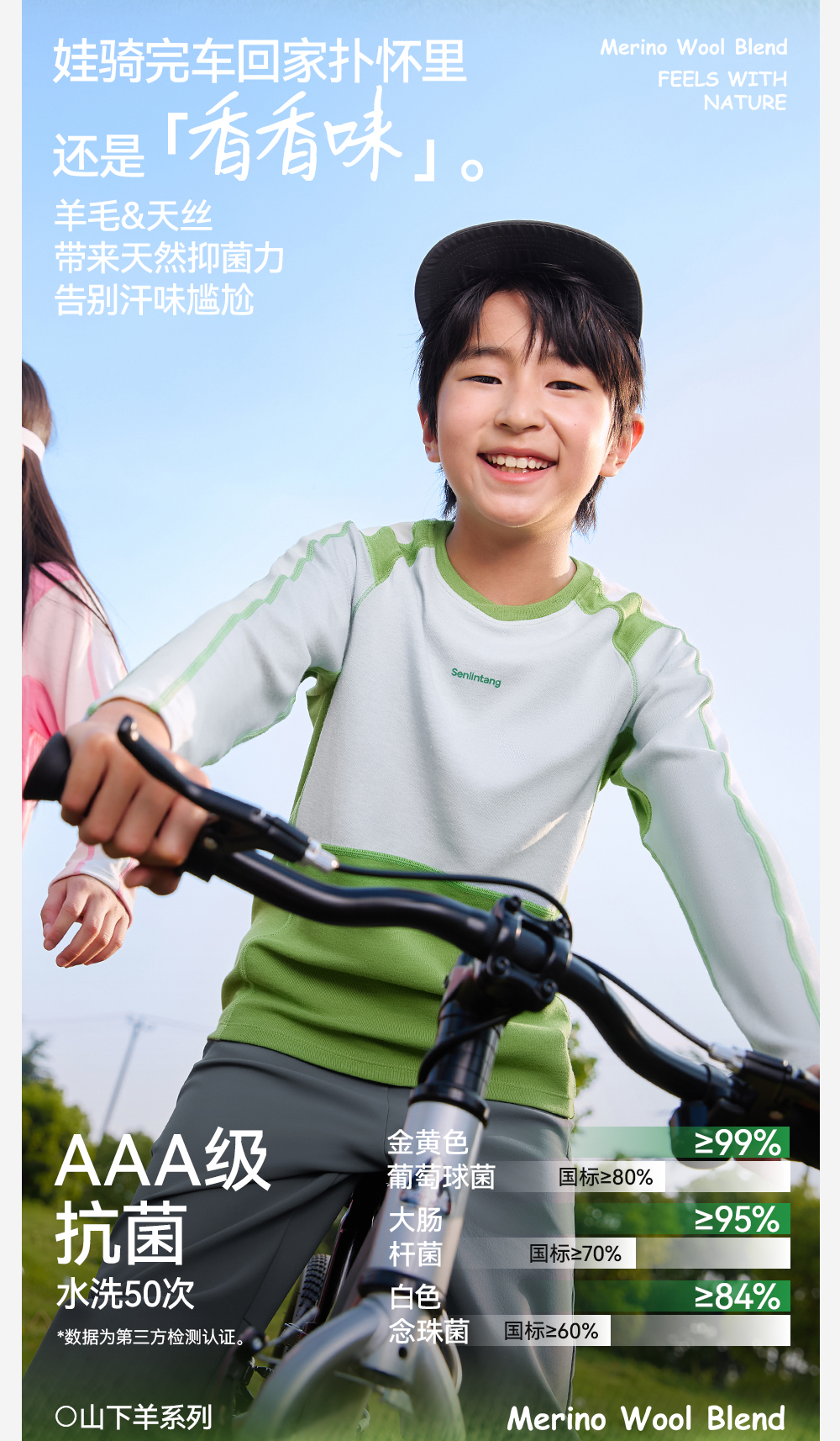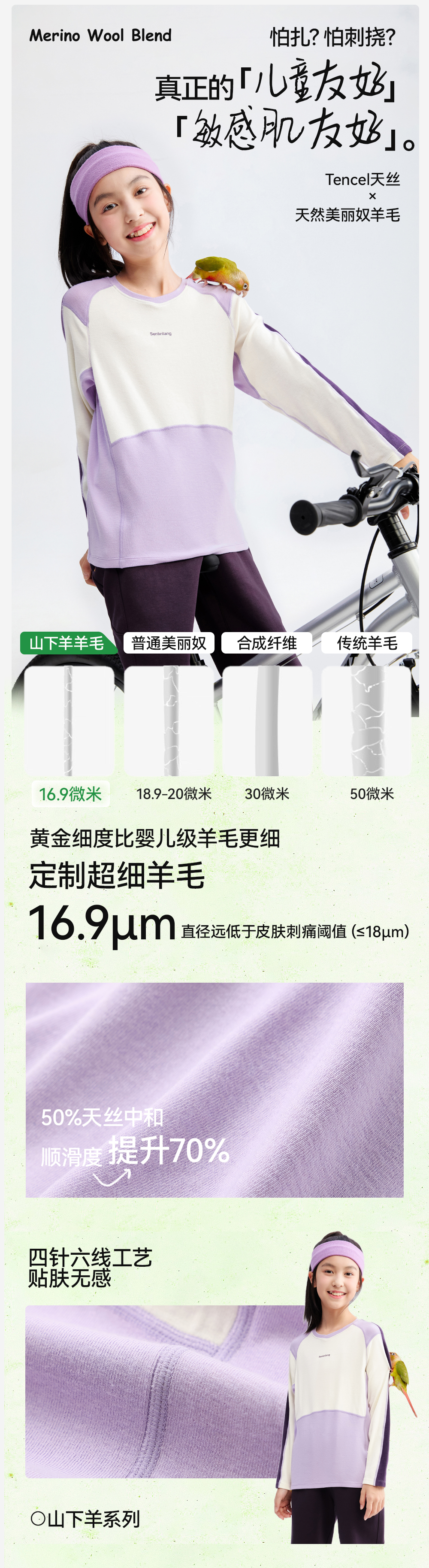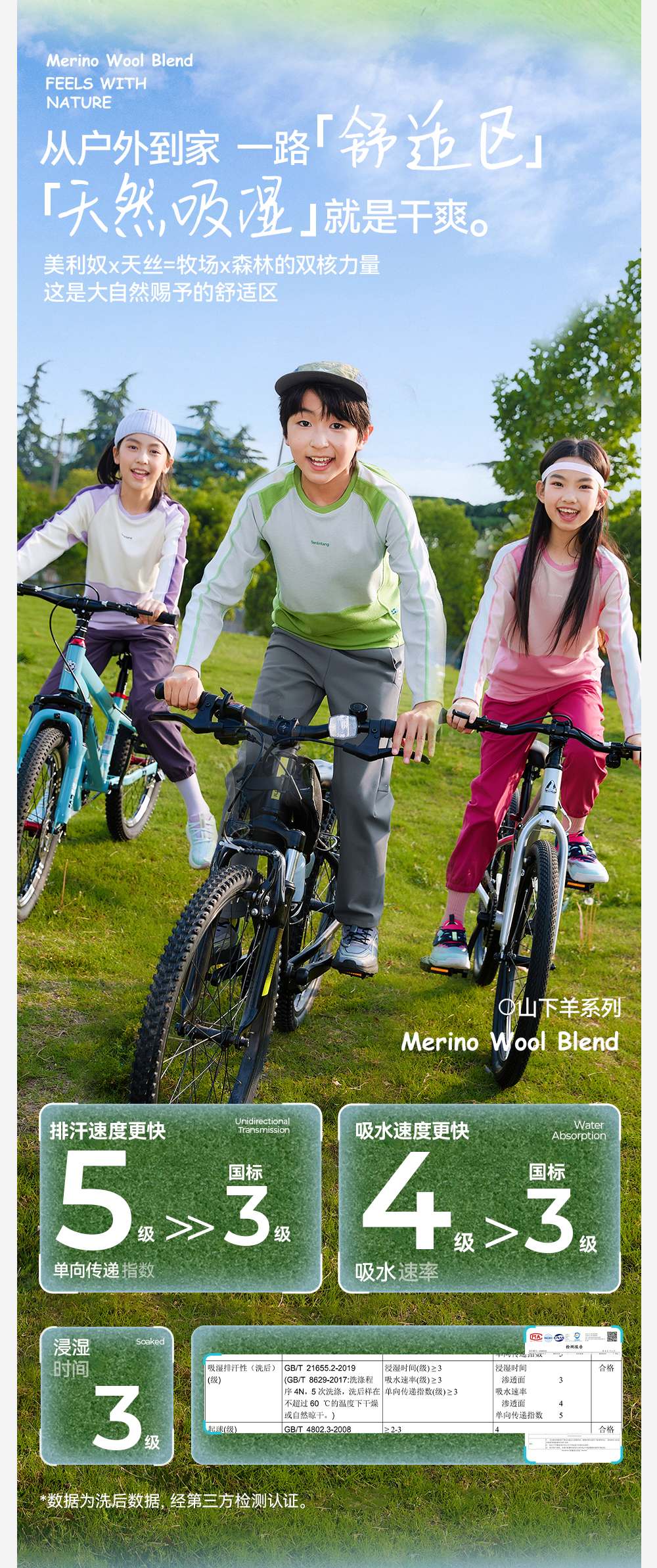 *【天丝羊毛拼色圆领T恤】森林棠25秋款 儿童吸湿透气运动长袖上衣60253058
