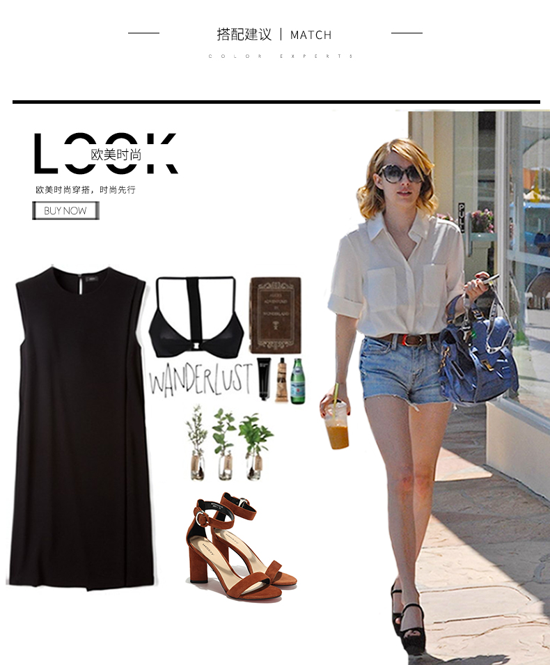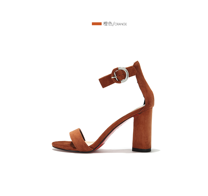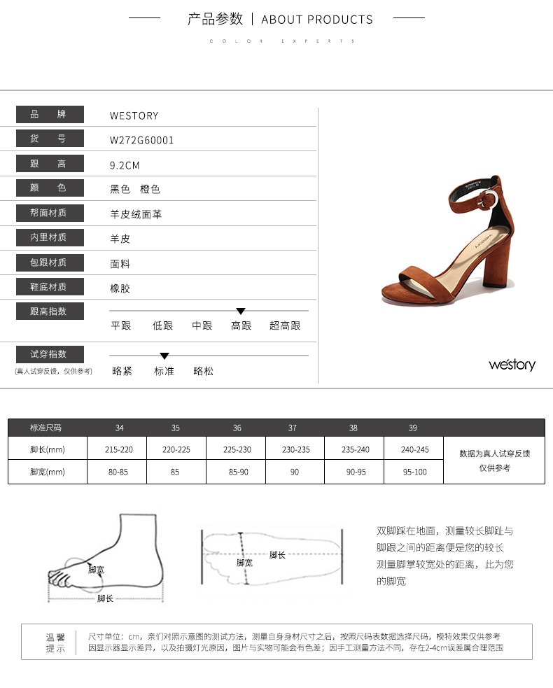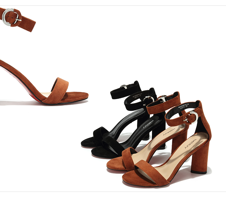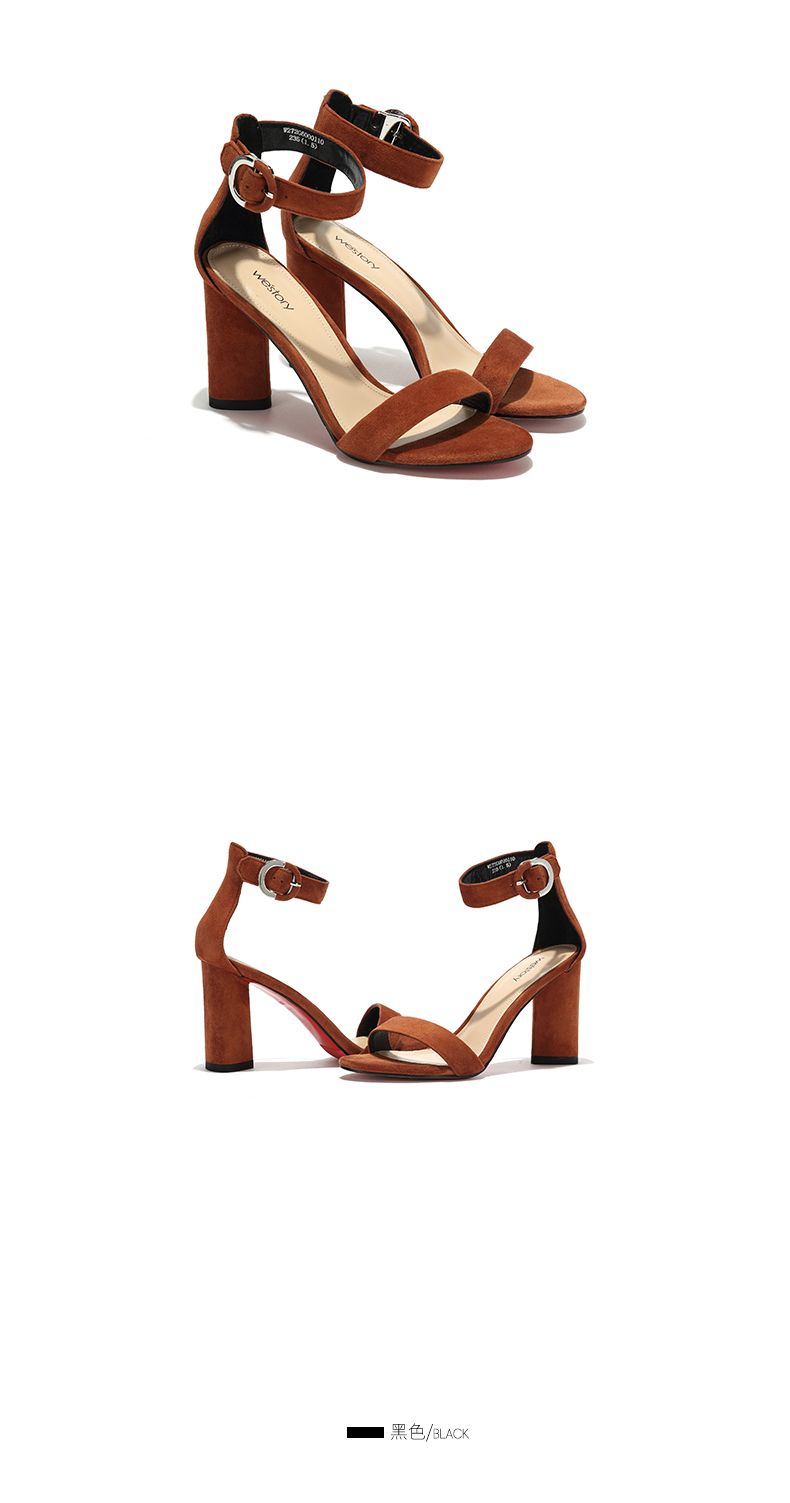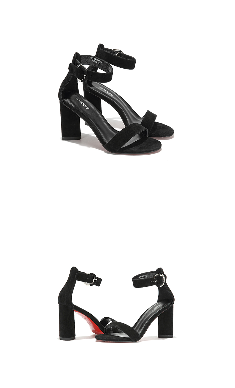 westory夏季凉鞋一字式扣带镂空露趾高跟鞋粗跟女鞋W272G60001