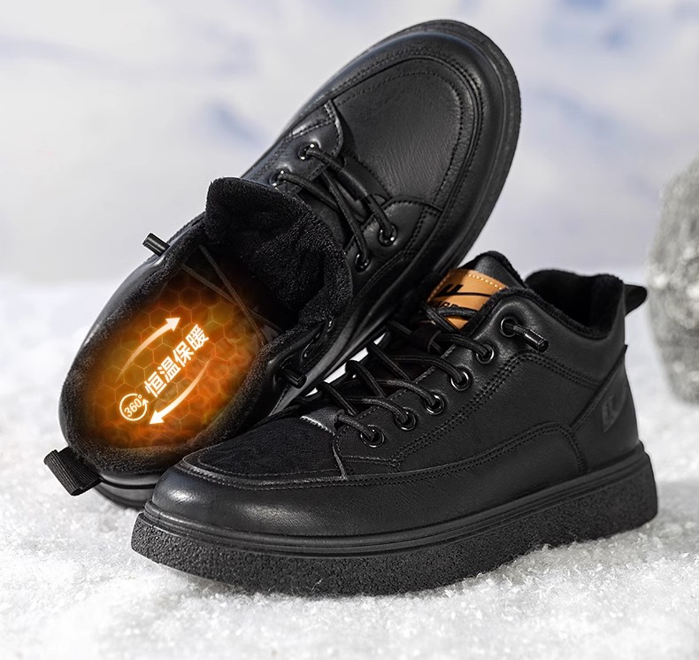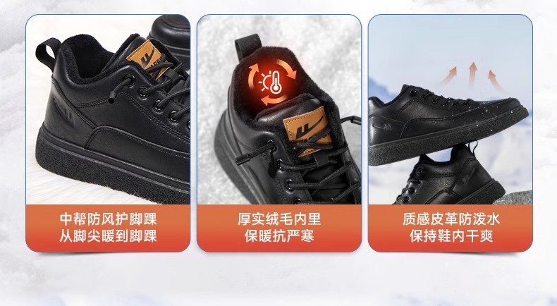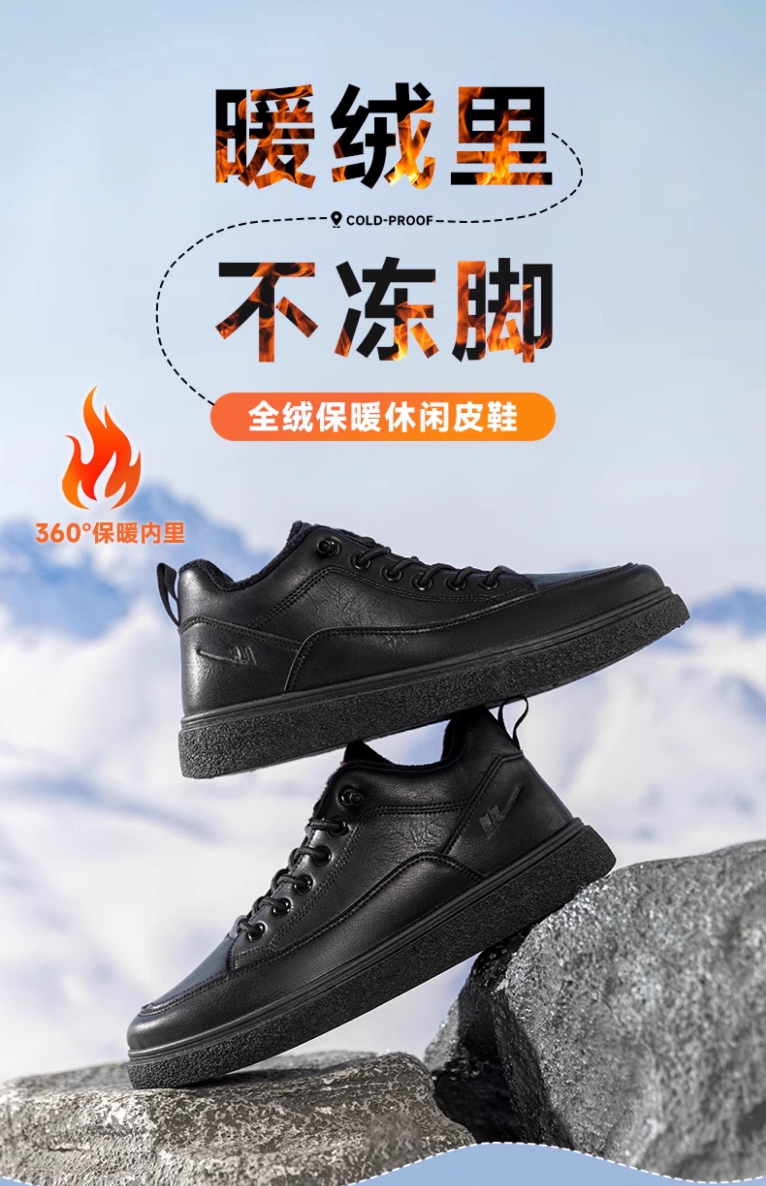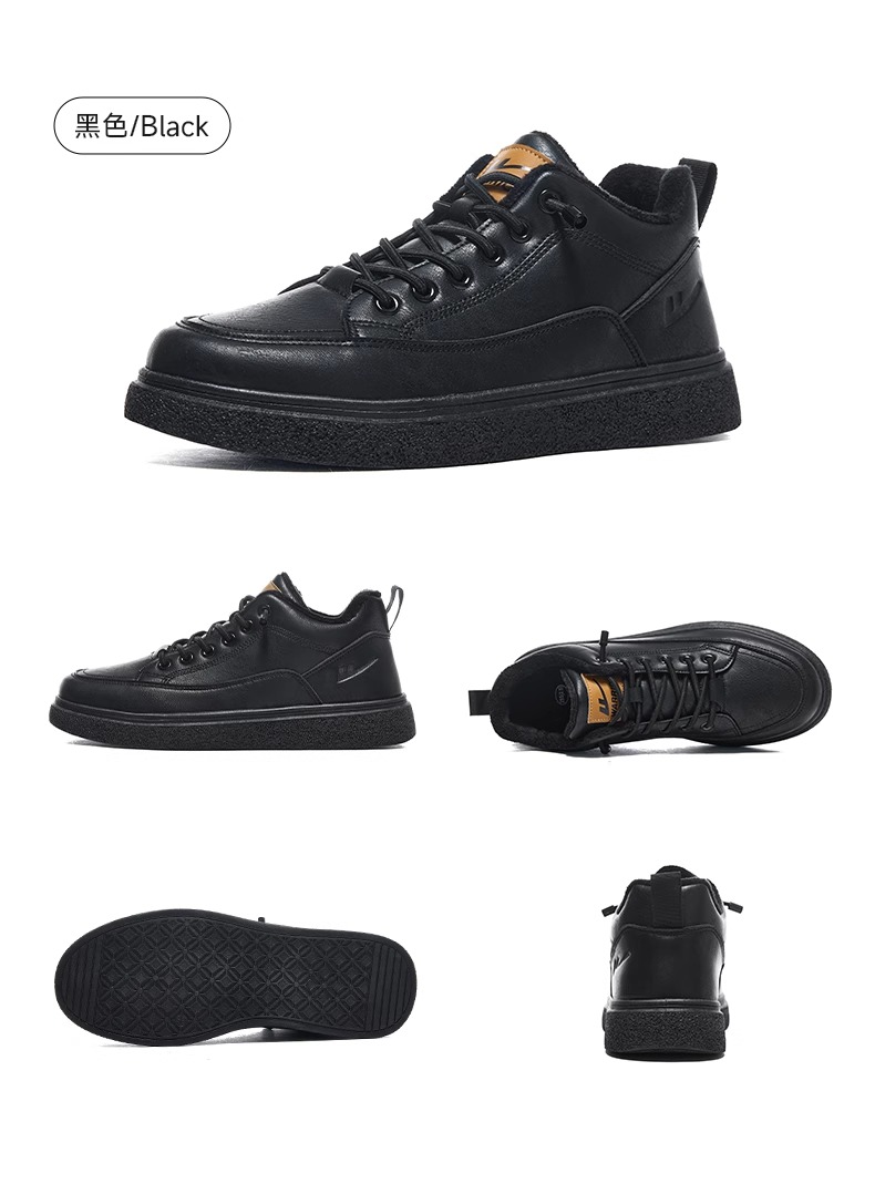 回力板鞋男款冬季新款黑色耐脏男鞋开车鞋子男士上班休闲皮鞋男款