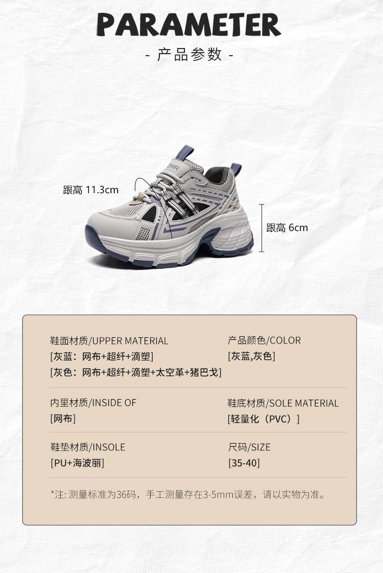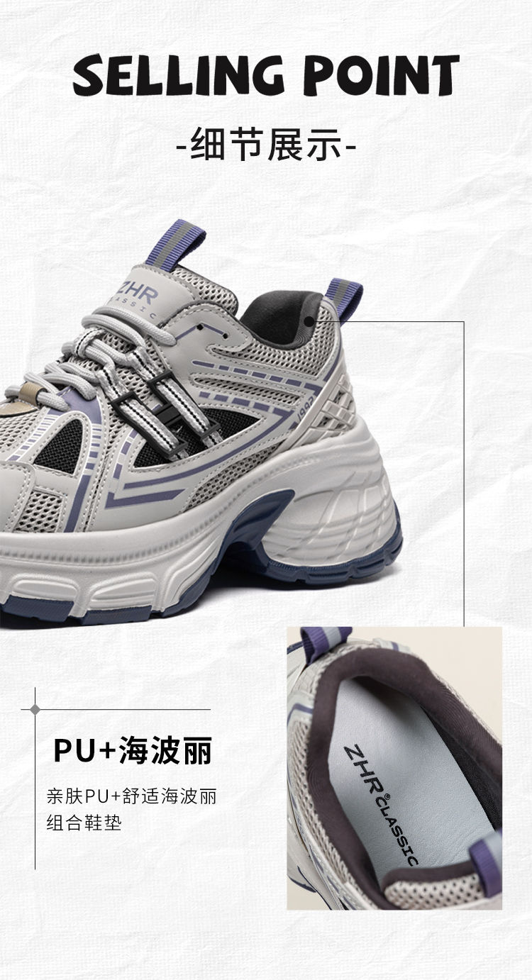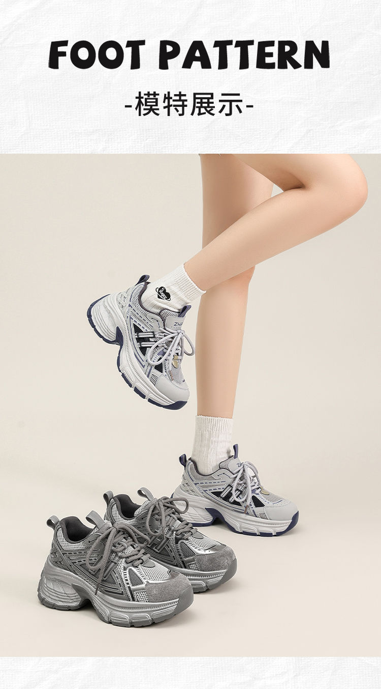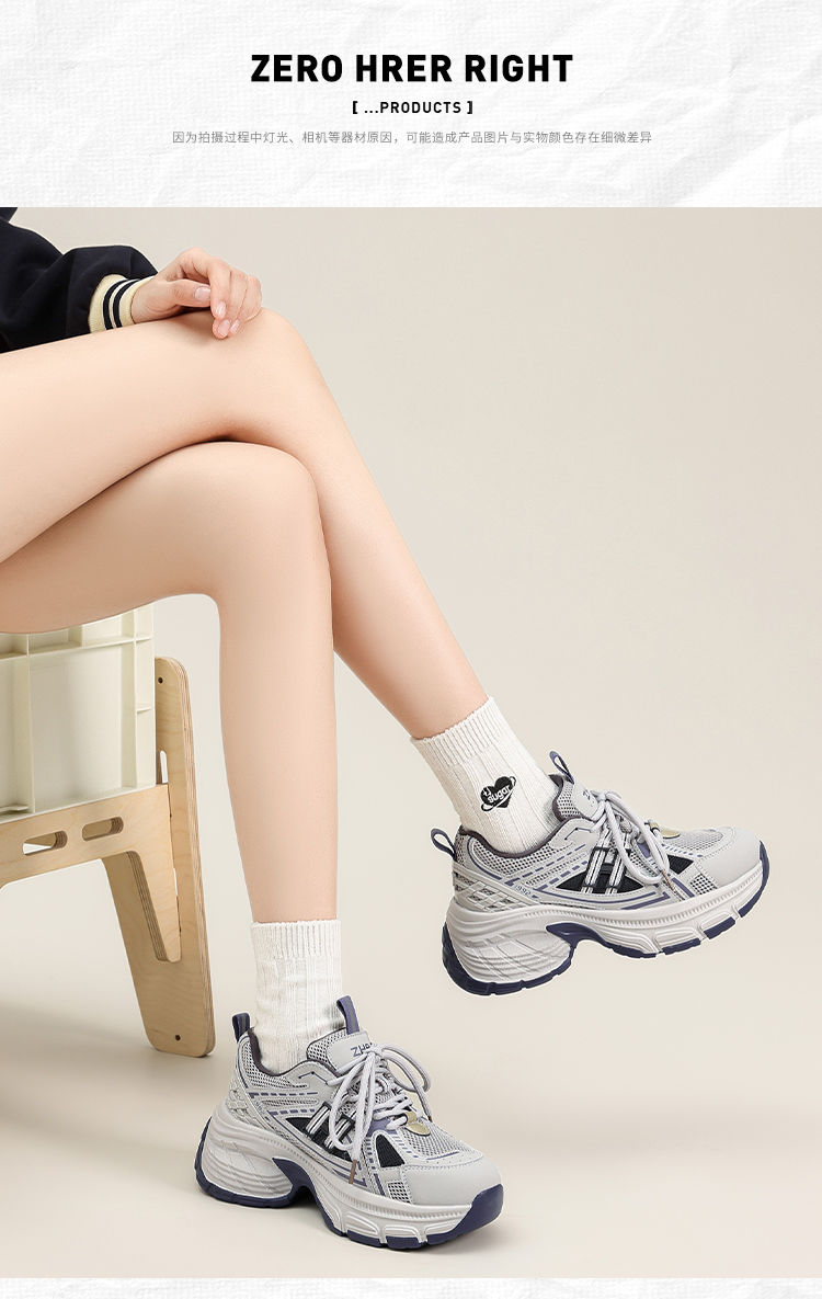 ZHR则则复古增高老爹鞋女春季新款柔软透气休闲鞋耐磨轻便运动鞋