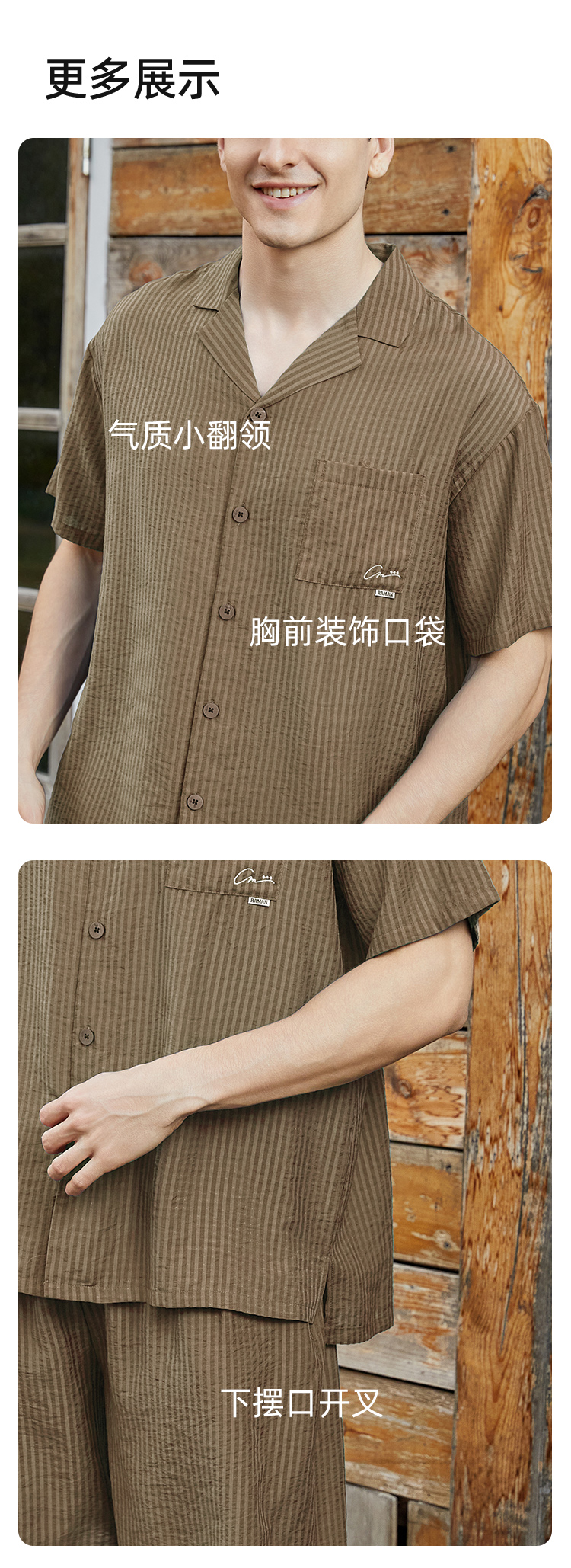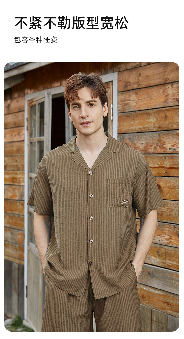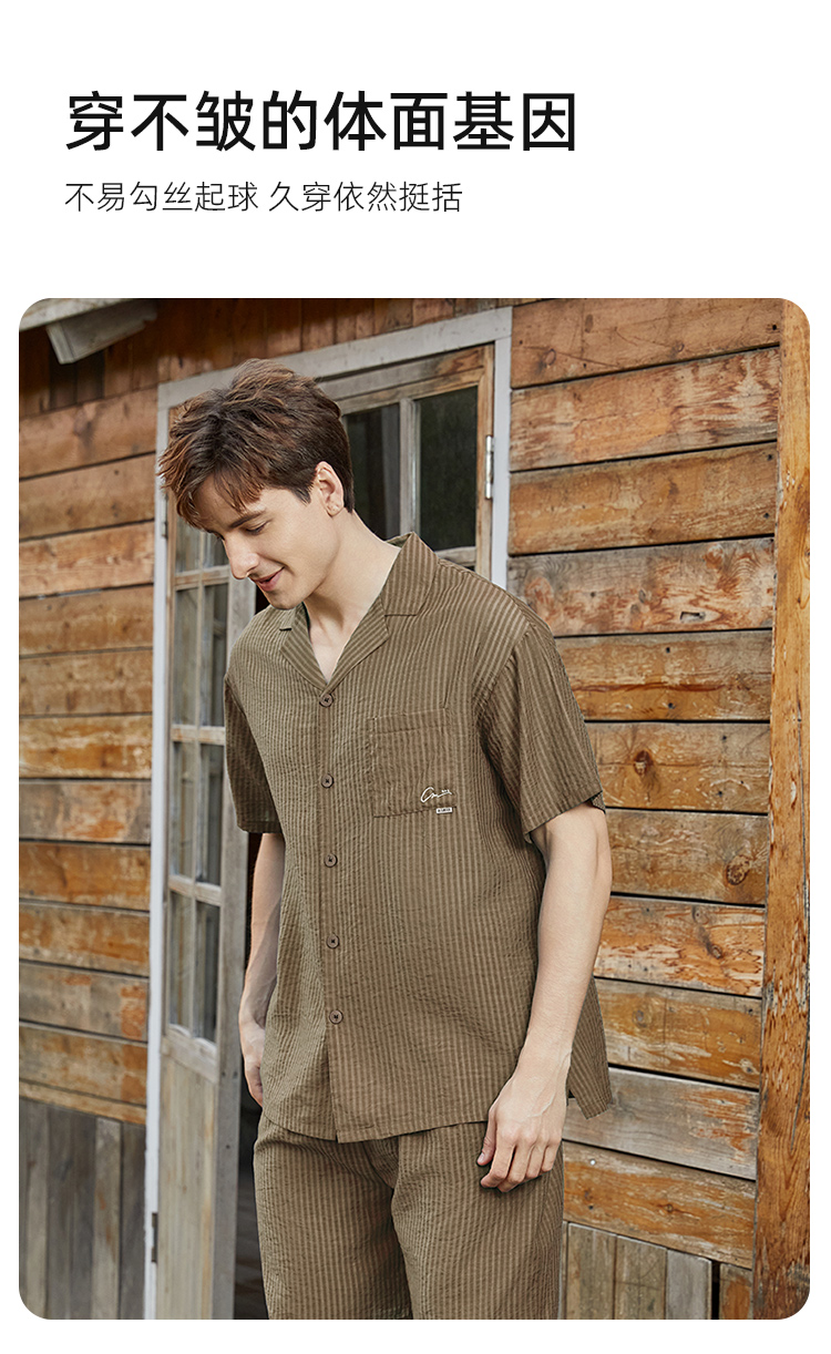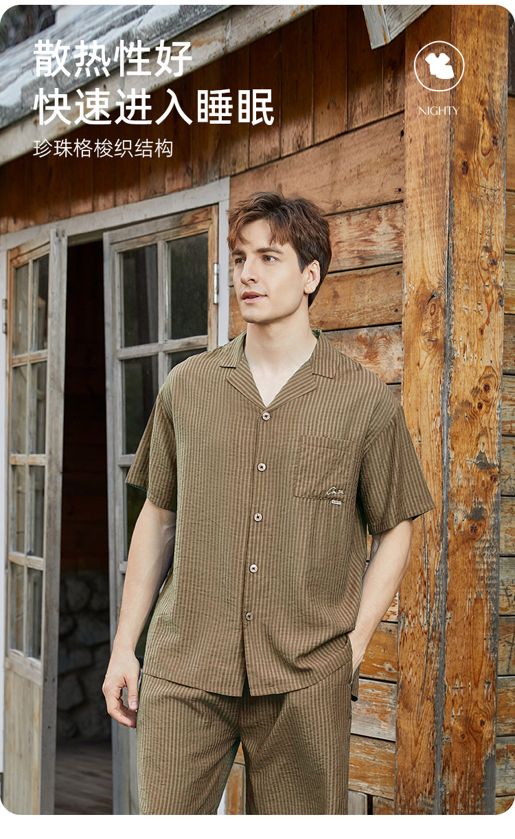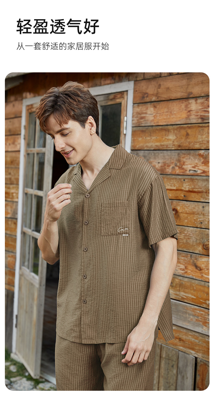 皇家丽美男士家居珍珠格梭织开衫套装透气舒适百搭JJT92519
