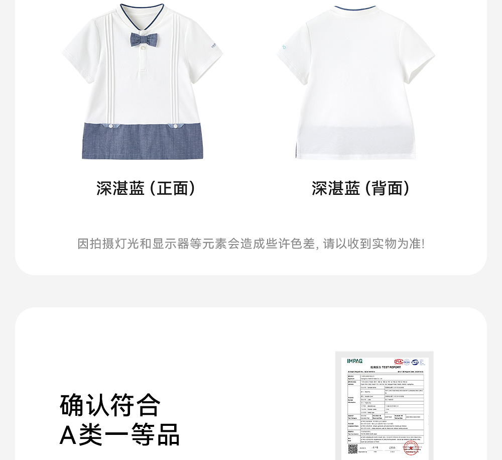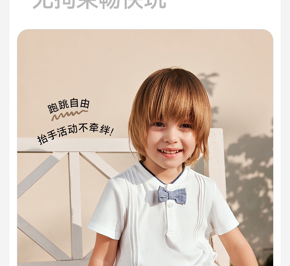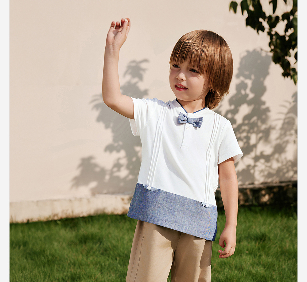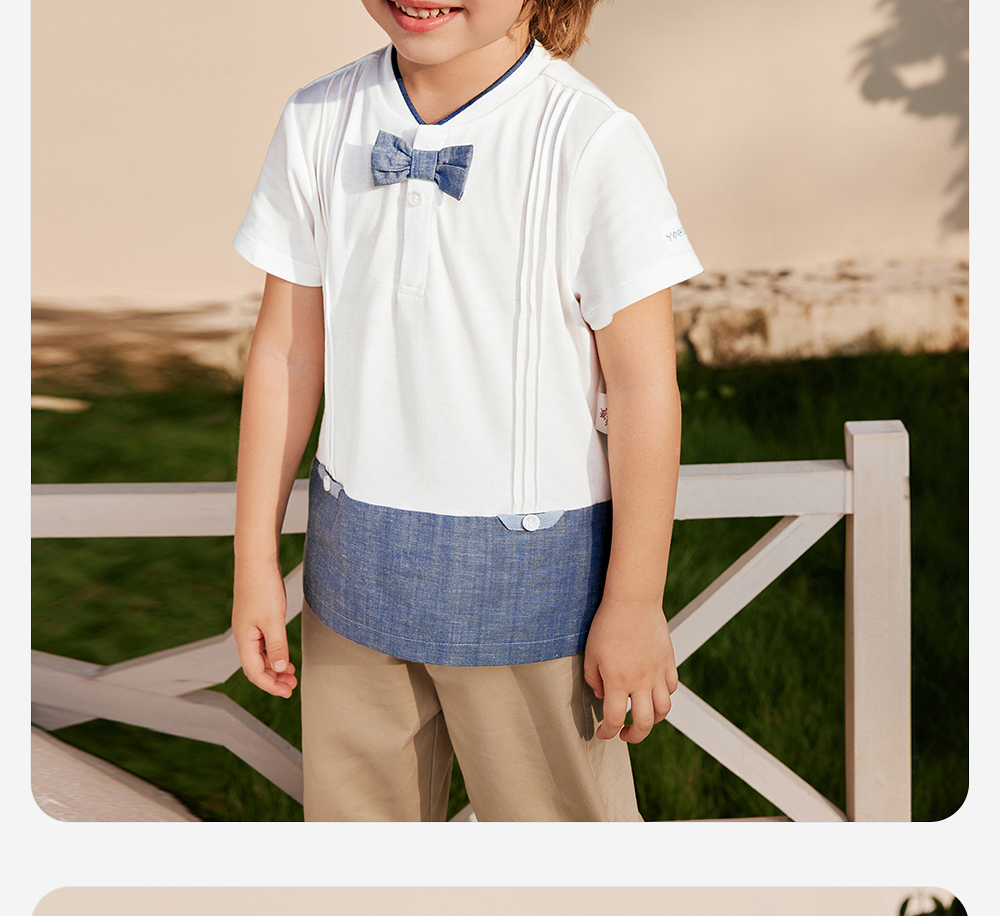 英氏儿童T恤夏季短袖透气男童牛仔纯棉T恤2025新款YRTCJ2R028A