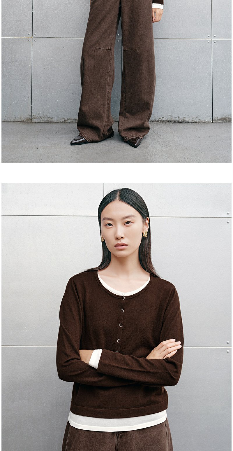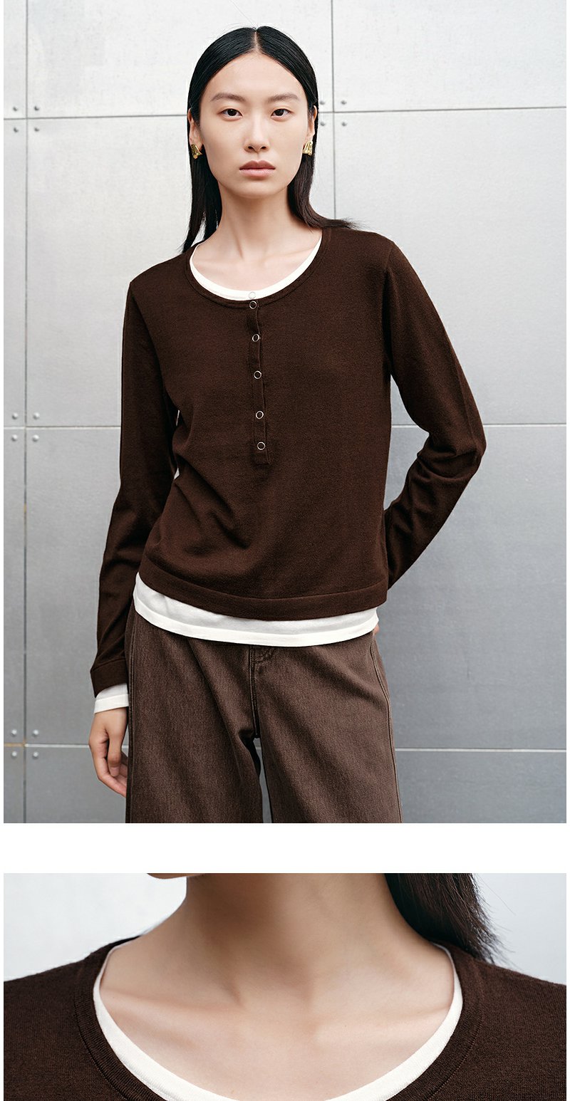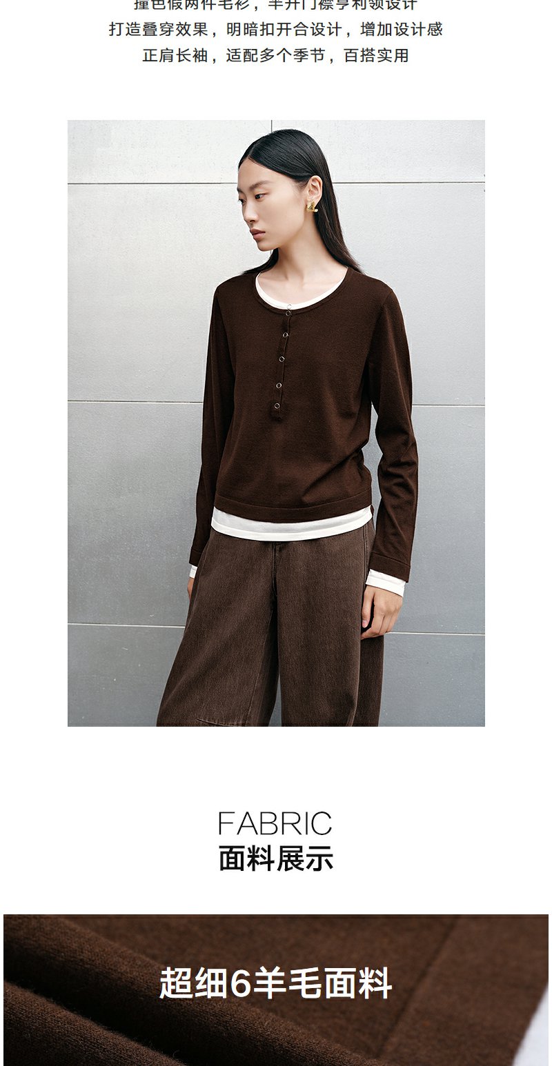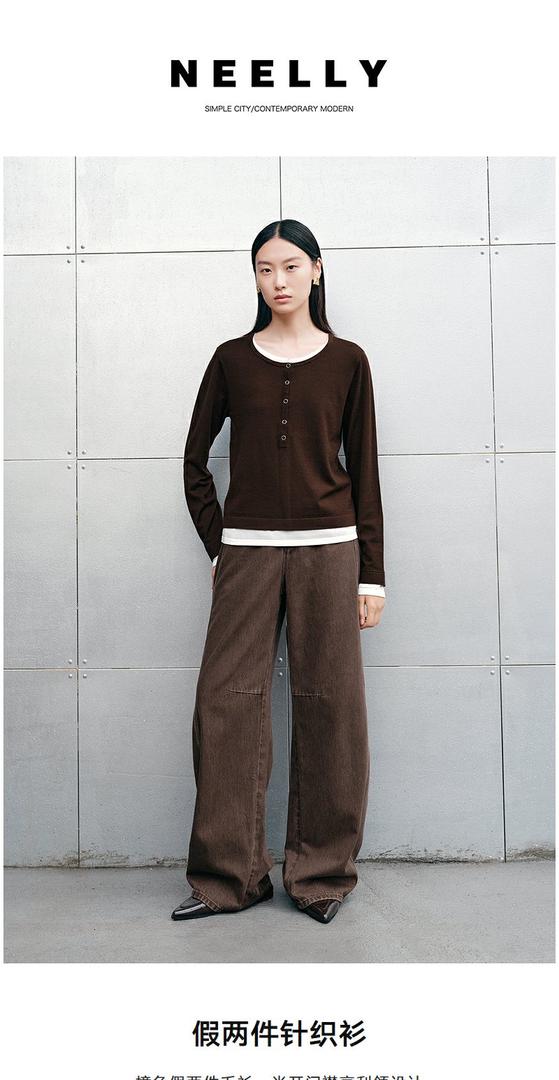 NEELLY纳俪商场同款秋冬新款正肩撞色假两件针织衫女百搭通勤上衣N25091A01137