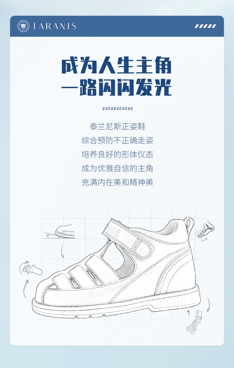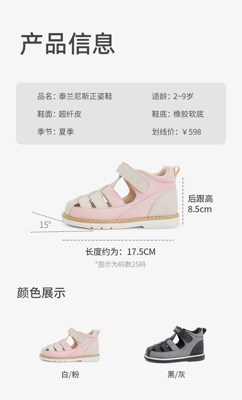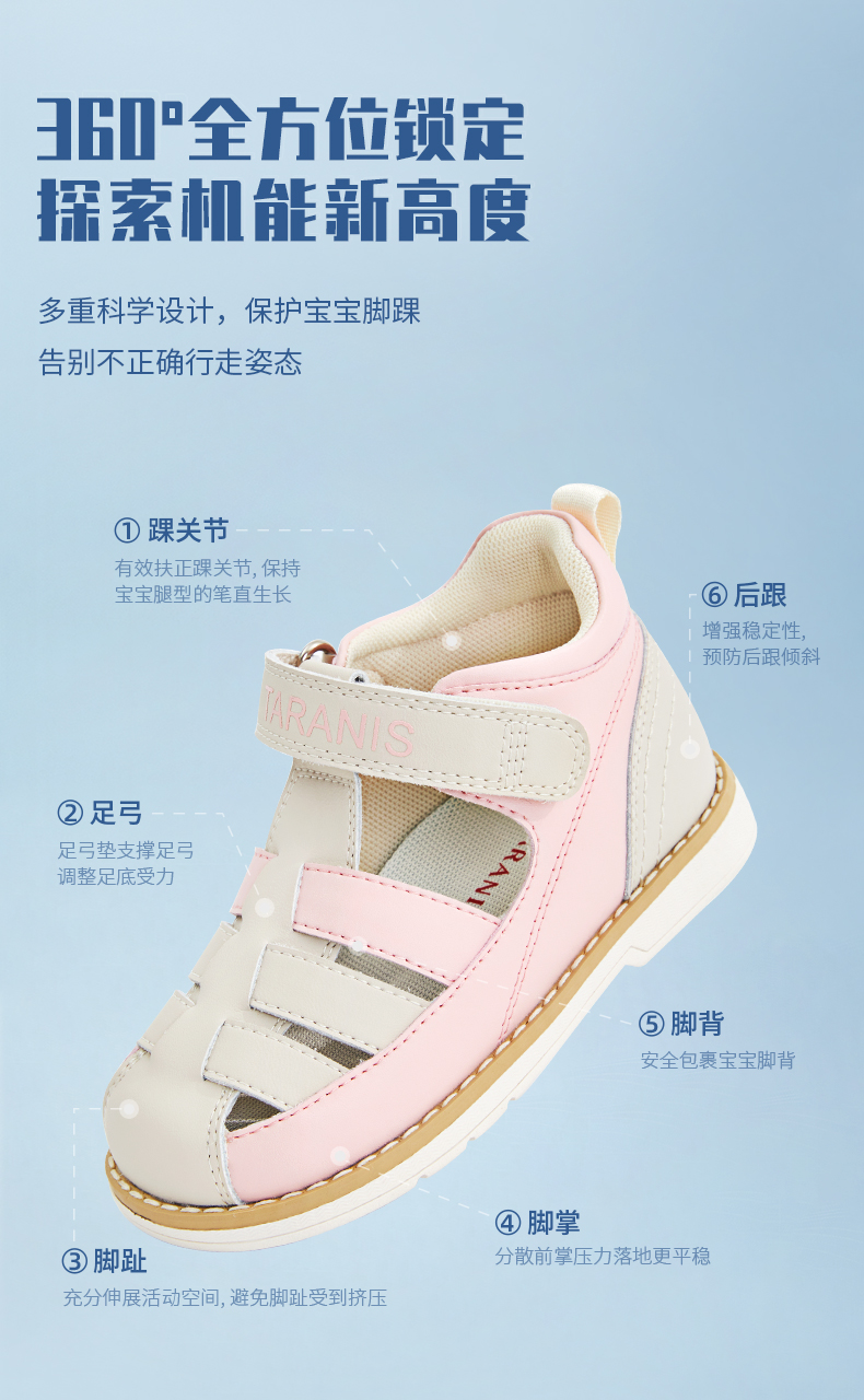 泰兰尼斯儿童凉鞋男女童足弓正姿内八字机能纠正平底足预防足外翻 T18X3B3497