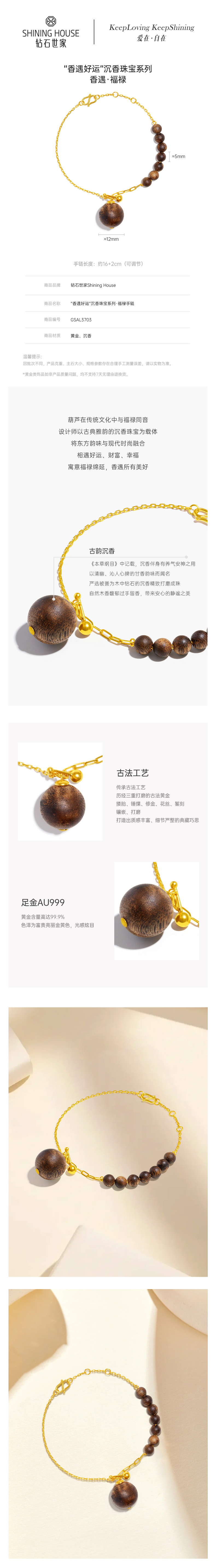 【沉香黄金】钻石世家 祈愿系列·古韵鎏金手链 足金沉香手链 古韵沉香与华贵黄金碰撞组合 汇聚非遗之美【黄金产品不支持无理由退换货】预计3-5天发货