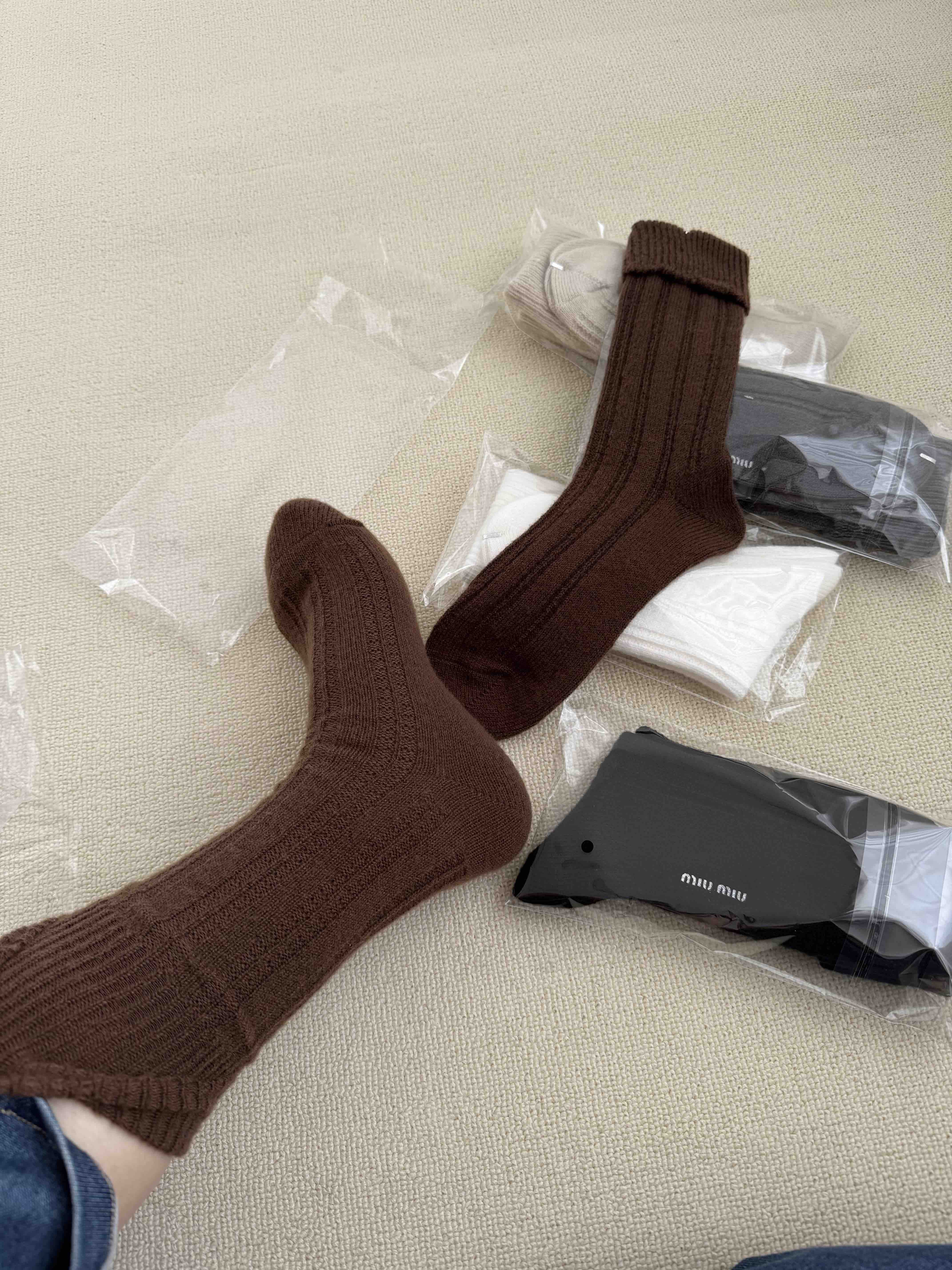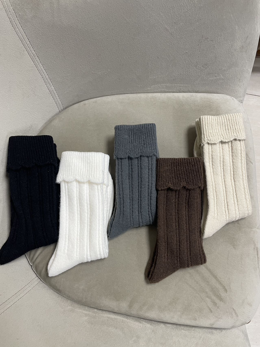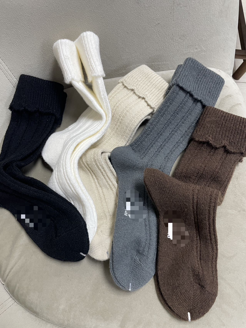 1126-3 渠道工厂 mm厚实羊绒袜 炒鸡亲肤保暖 五双一组不拆卖 翻边搭鞋子贼漂亮🤩