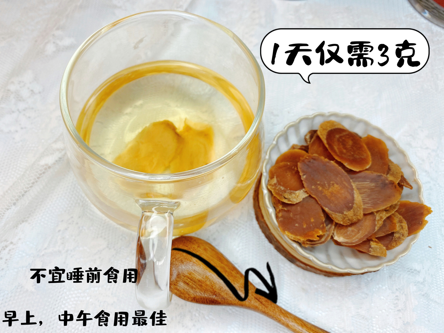 一罐里面是100克的,一般建议每天不过3g,大概是3~4片左右,每天水杯里放上那么3片就可以喝一整天了