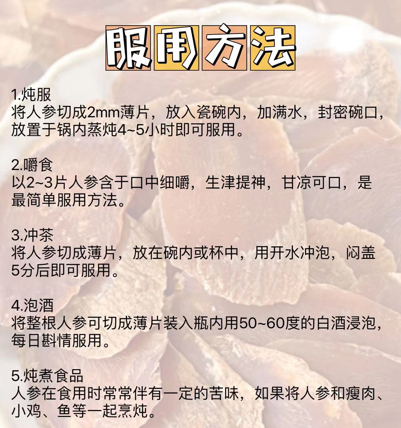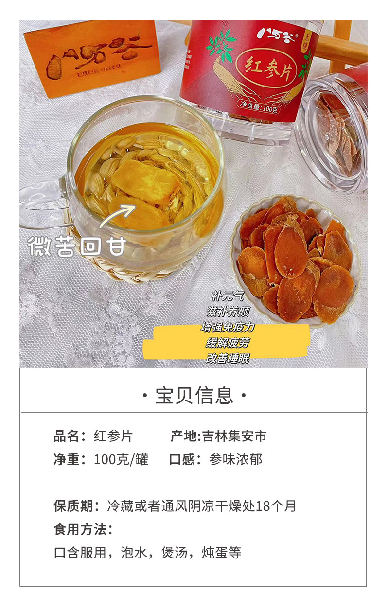 热卖!!【红参片】精选4~5年高标准长白山山脉新鲜人参,延续经典古法工艺制作,片片精华,不含糖,推荐泡水、炖汤、煮粥、含服,补肺健脾,送父母、送长辈