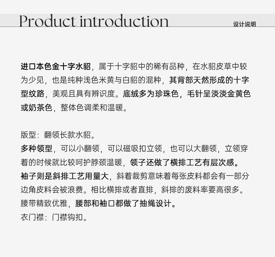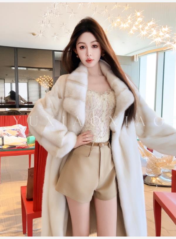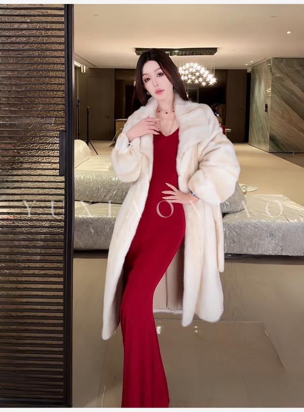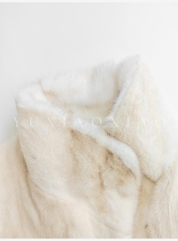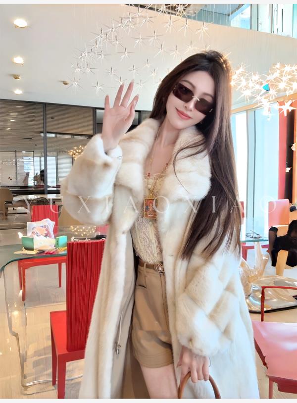 余潇潇【女王本色】本色金十字水貂毛横排工艺磁吸扣抽绳长款皮草