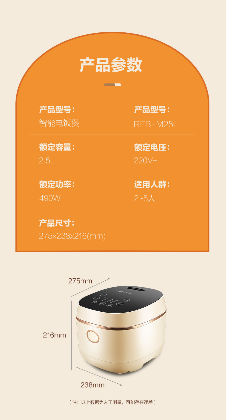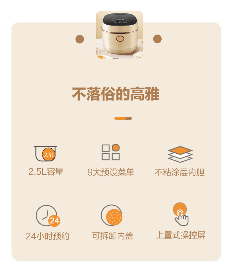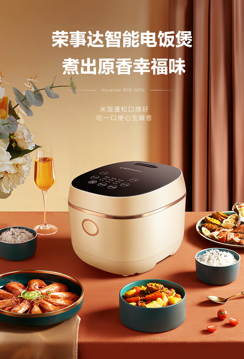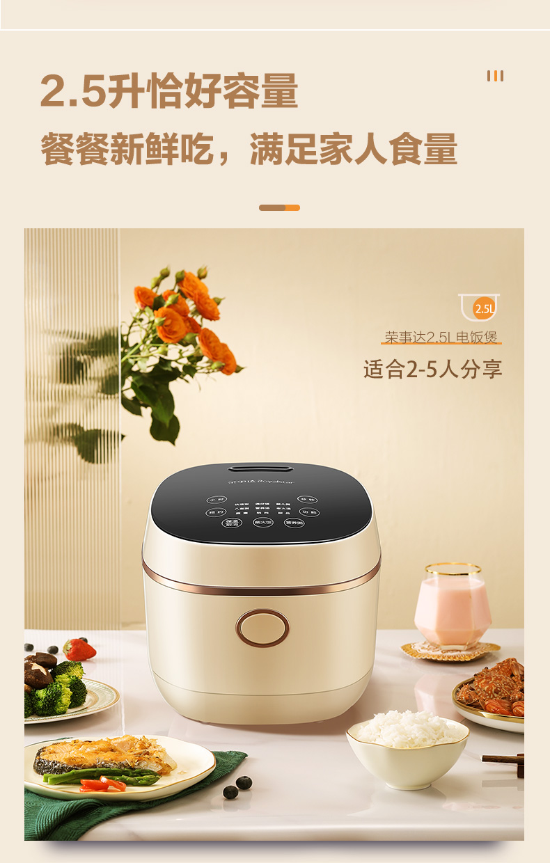 心选丨【智能预约 不粘涂层】荣事达电饭煲家用多功能智能24h预约快速饭煲汤煮粥还蒸米饭2.5L不粘电饭煲RFB-M25L