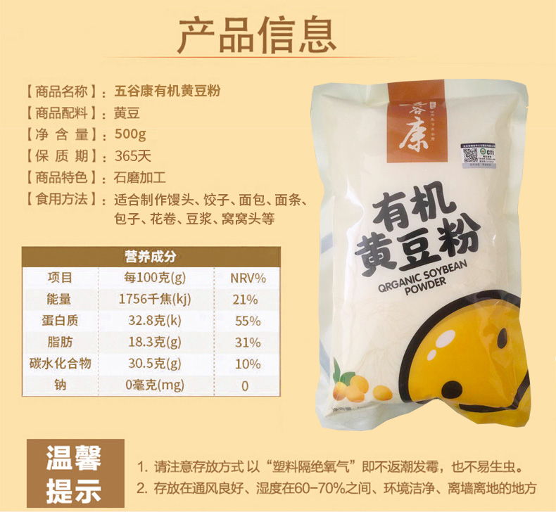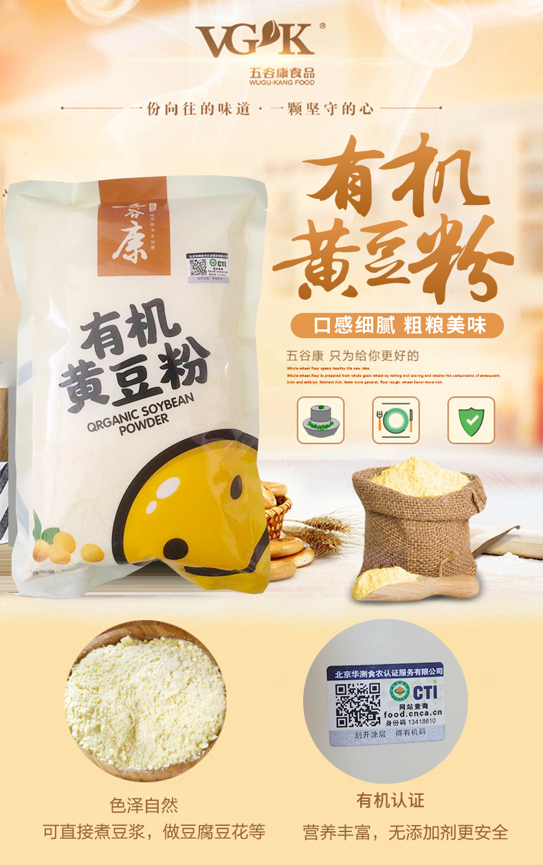有机黄豆粉 大豆黄豆面粉 500g*2袋