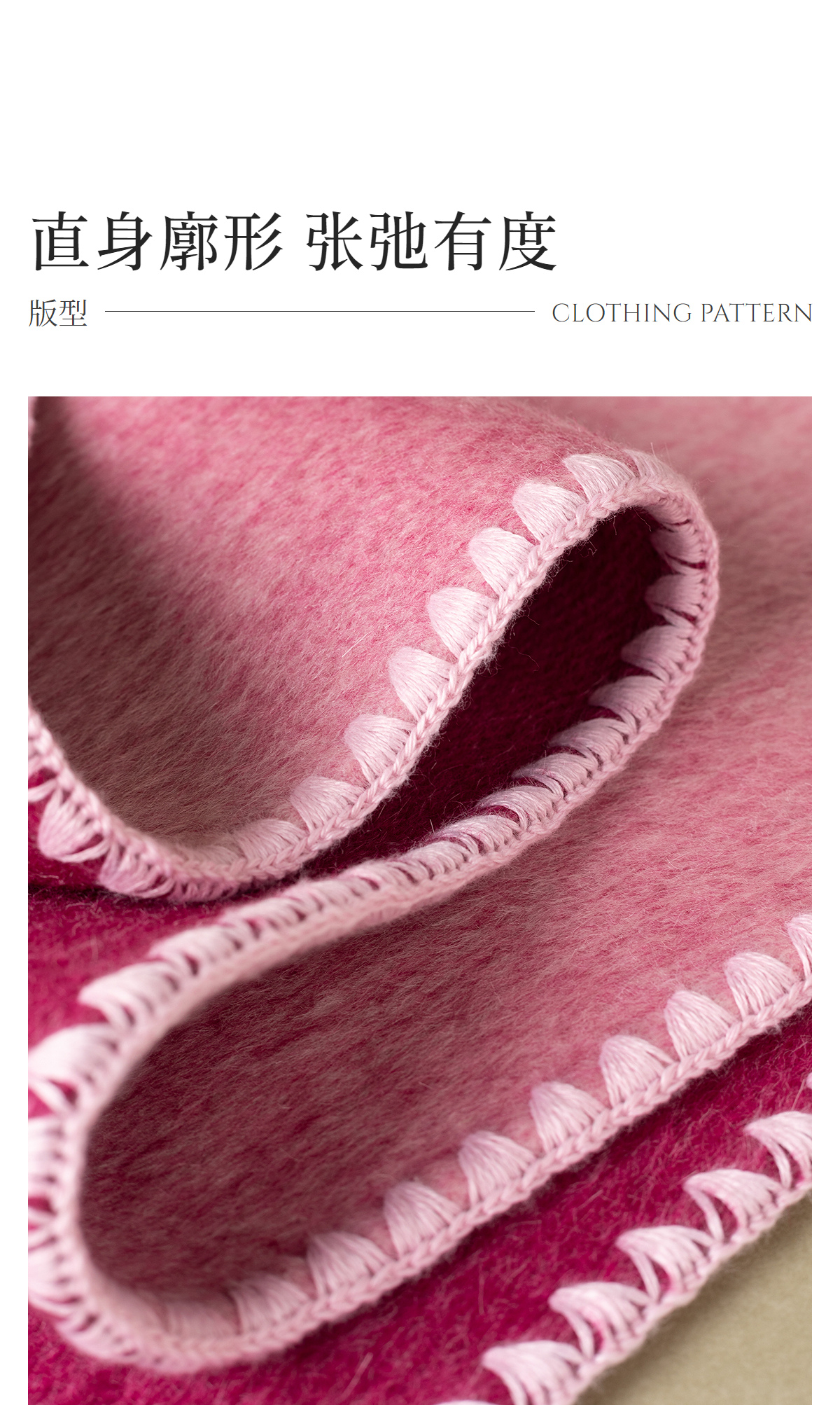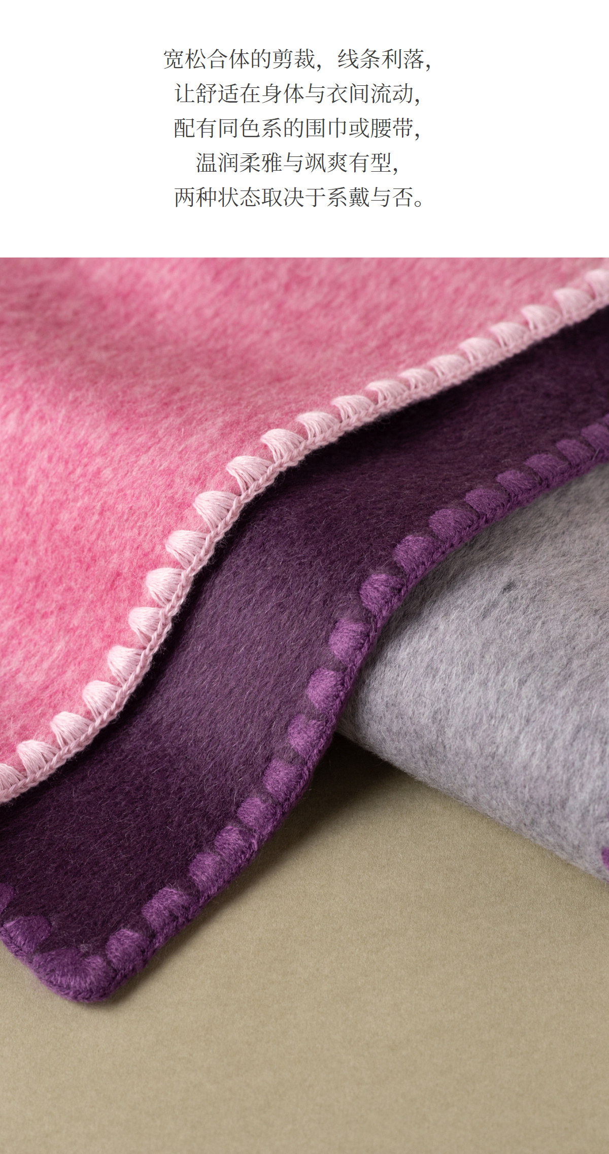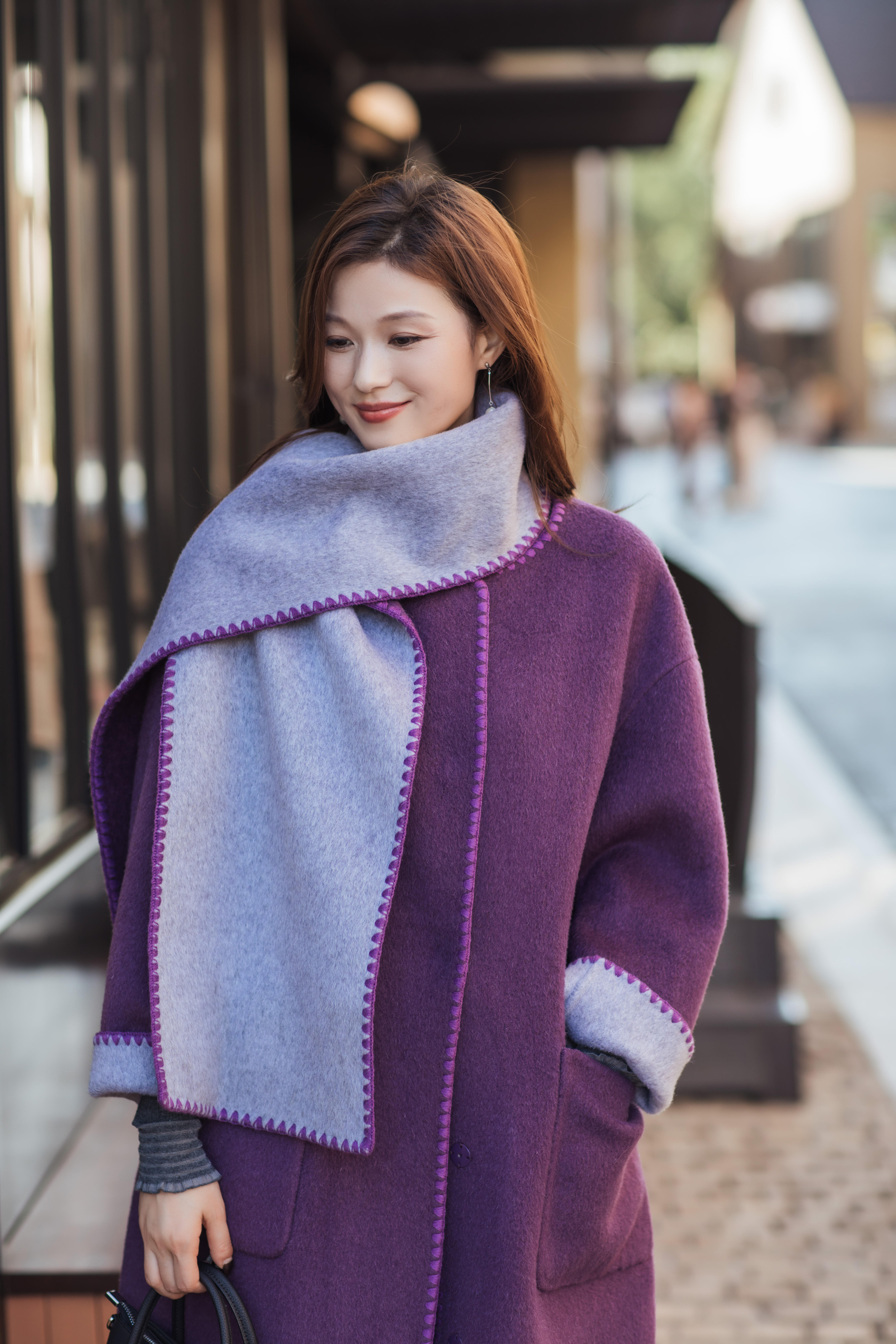 【林栖设计小店】(现货紧俏)绵羊毛双面呢配围巾渐变紫色粉色保暖2025秋冬新款宽松外套女T1954262