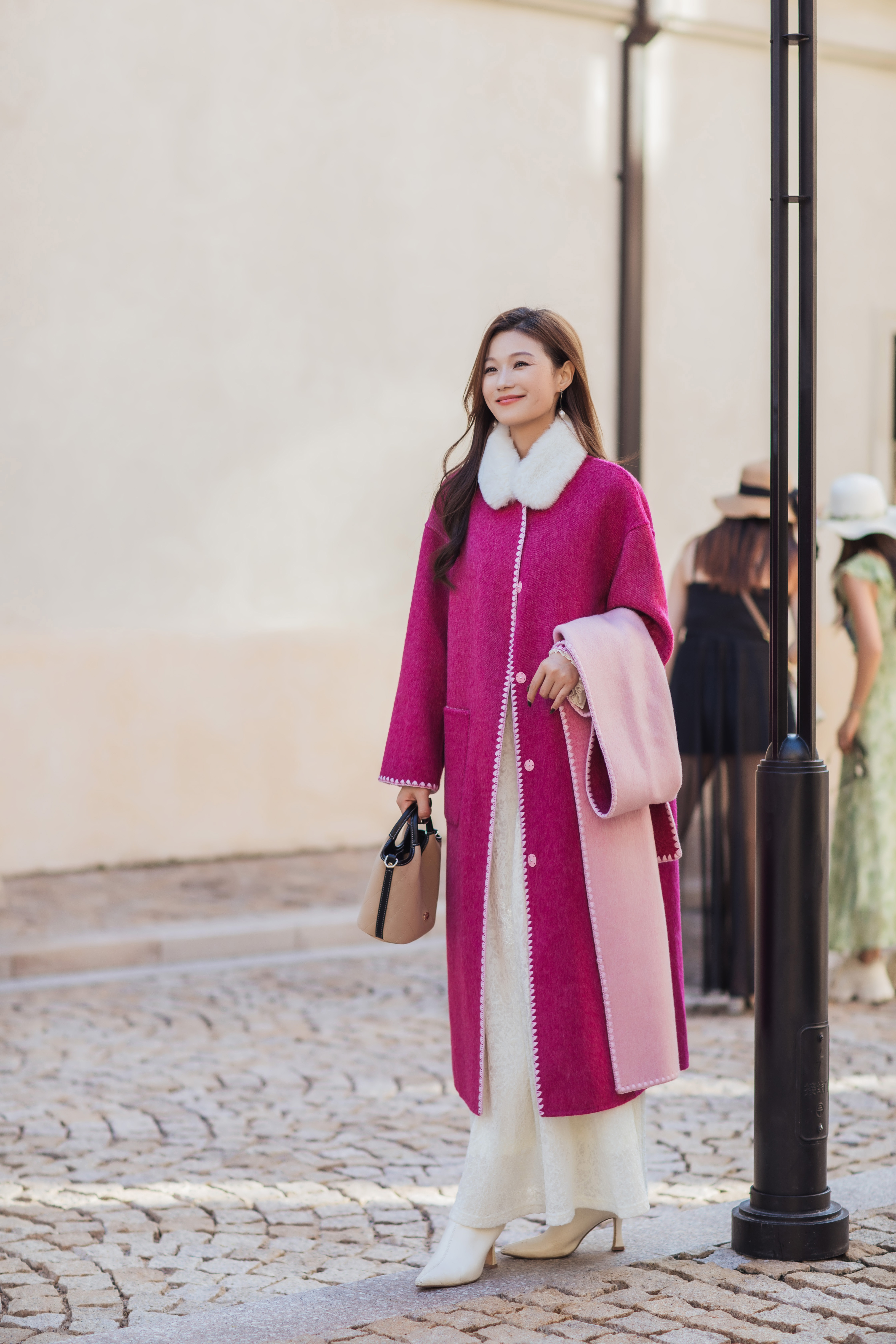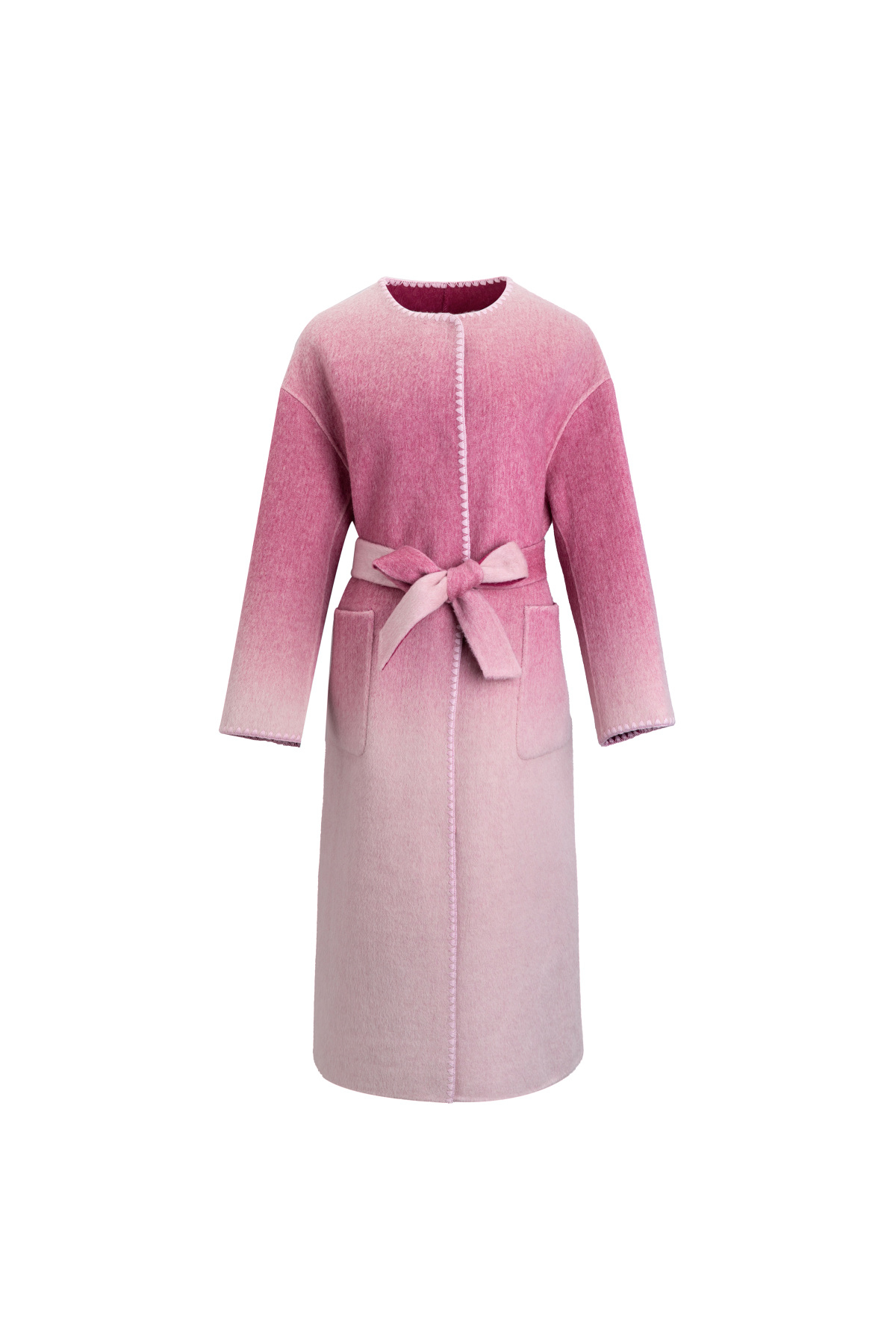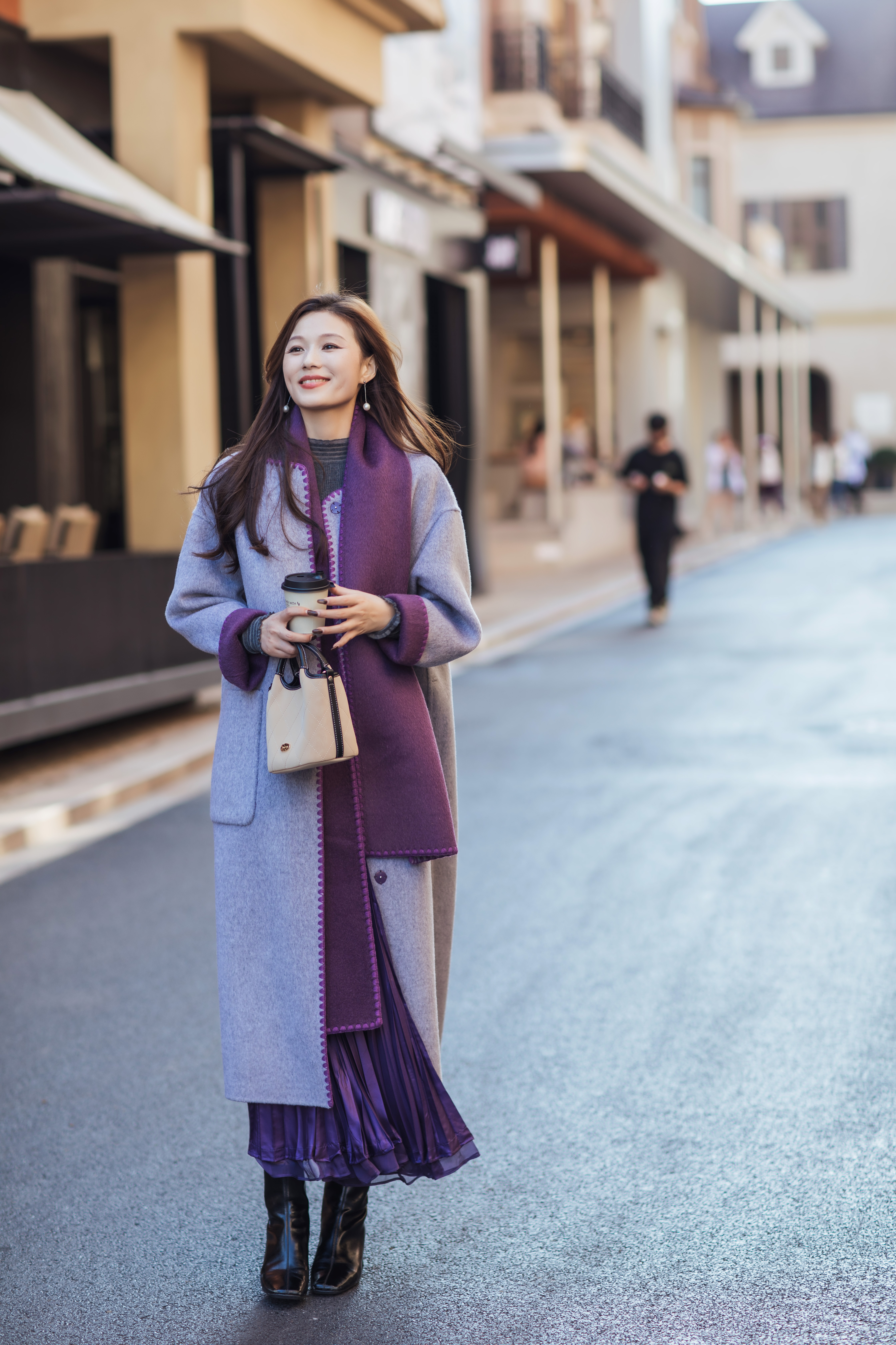 【林栖设计小店】(现货紧俏)绵羊毛双面呢配围巾渐变紫色粉色保暖2025秋冬新款宽松外套女T1954262