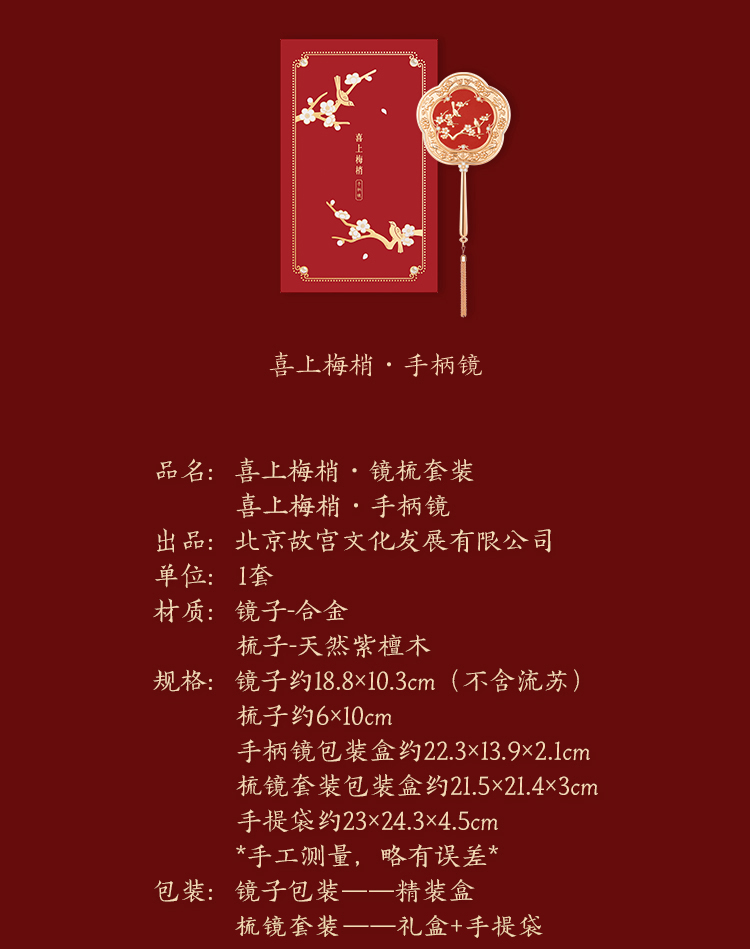 【故宫家居】喜上梅梢梳子镜子礼盒新婚订婚结婚礼物