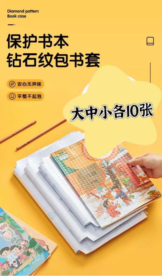 💥开学季来了,该给孩子们准备好学的文具了!【钻石纹包书皮套装】 ✅免裁自粘,防滑磨砂包书皮,🌟多种规格,安全环保,尺寸齐全。