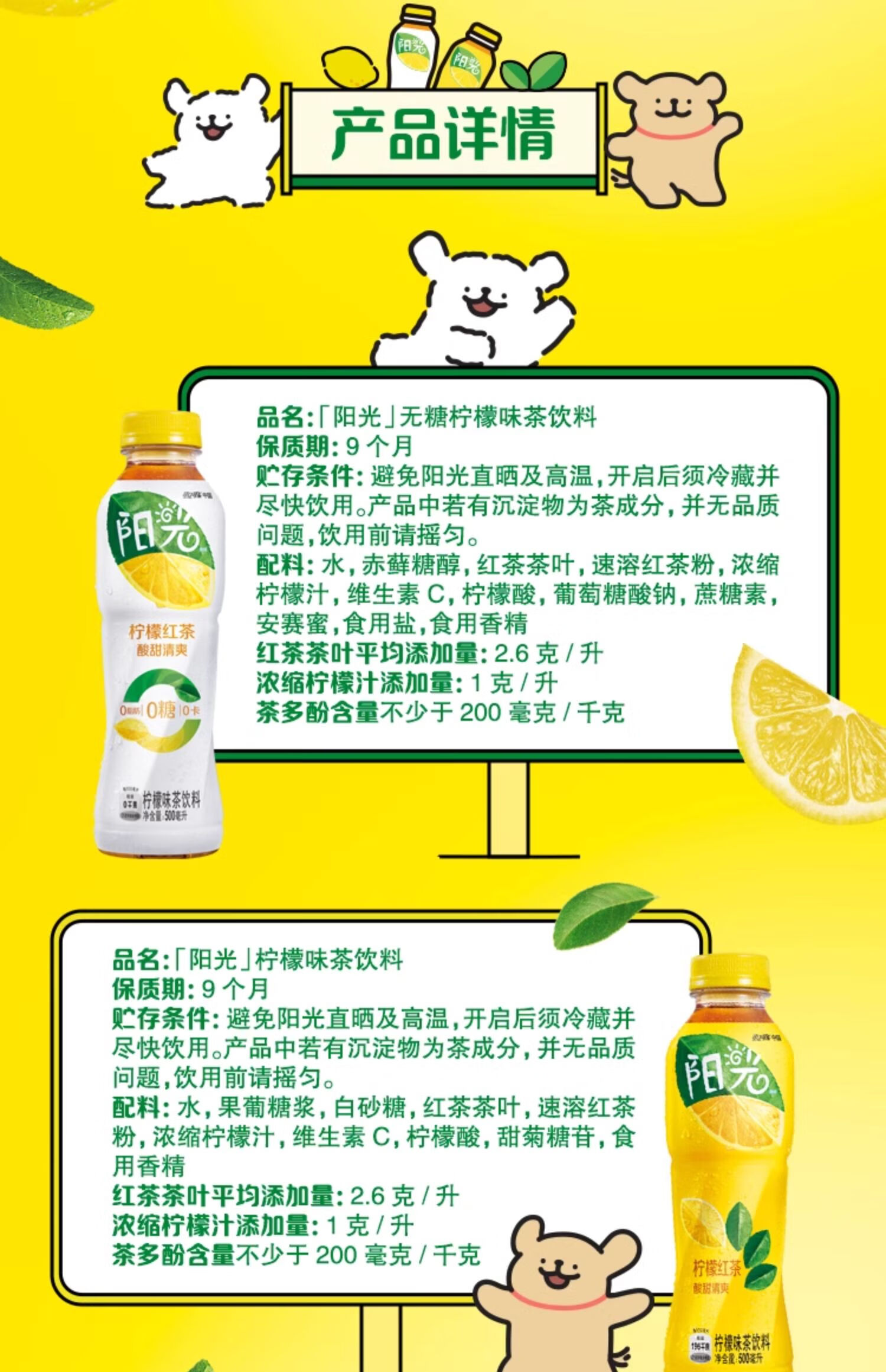 阳光无糖柠檬红茶饮料 500ml/瓶
