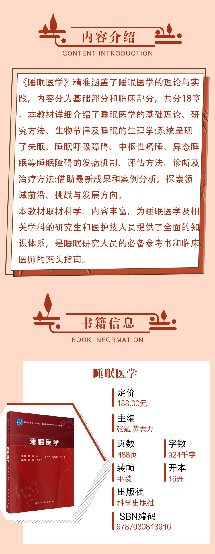 《睡眠医学》精准涵盖了睡眠医学的理论与实践,内容分为基础部分和临床部分,共分18章。本教材详细介绍了睡眠医学的基础理论、研究方法、生物节律及睡眠的生理学;系统呈现了失眠、睡眠呼吸障碍、中枢性嗜睡、异态睡眠等睡眠障碍的发病机制、评估方法、诊断及治疗方法;借助最新成果和案例分析,探索领域前沿、挑战与发展方向。