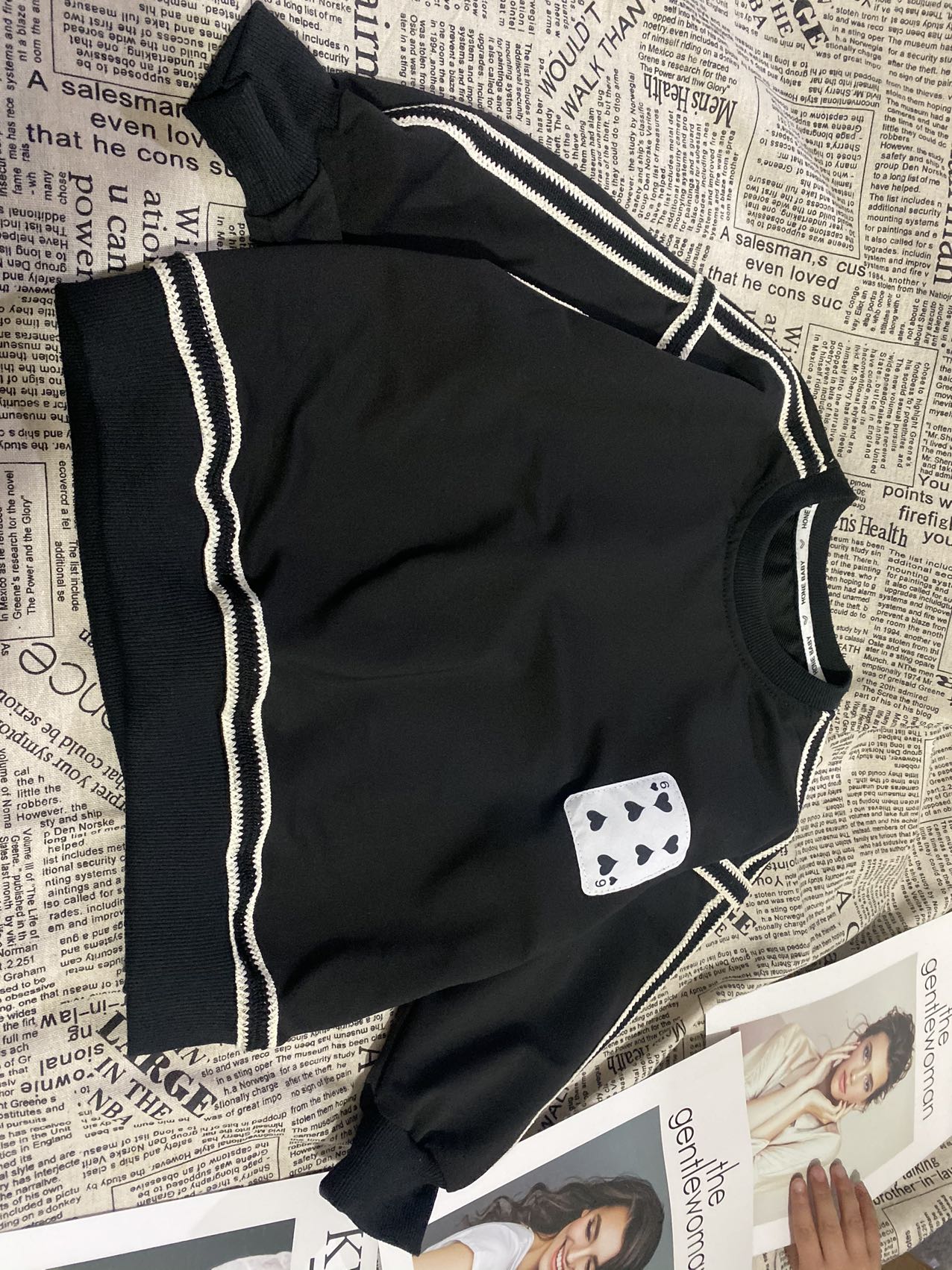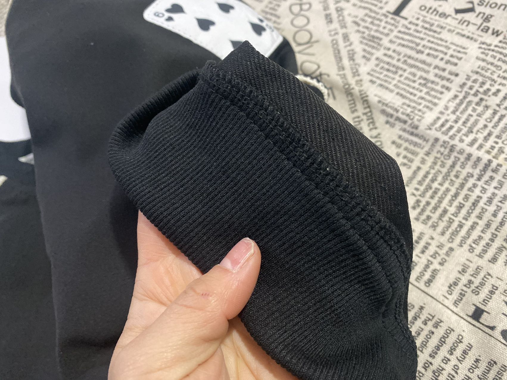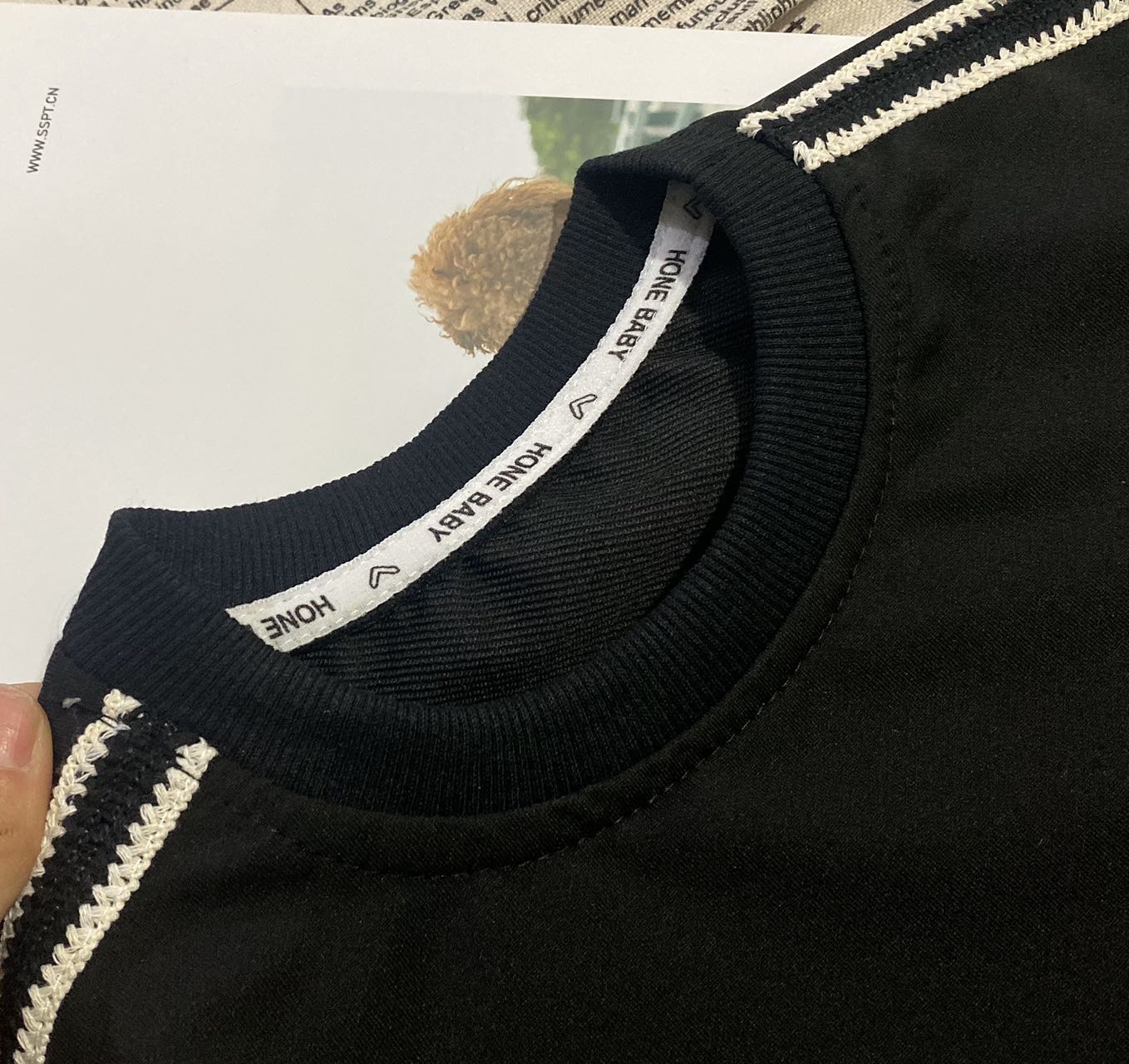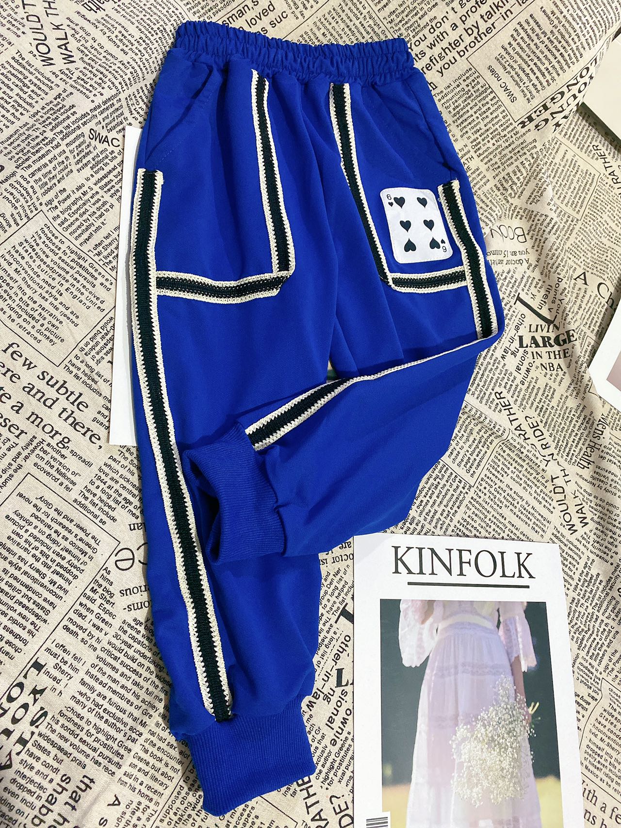 2、上衣和裤子扑克牌贴标非常吸睛,回头率高!亚迪卡棉柔软又保暖的针织面料,既有棉的吸湿透气性,又有涤纶的高耐穿性,手感亲肤爽滑,孩子穿得更舒适!