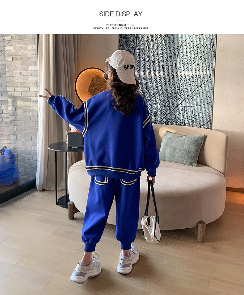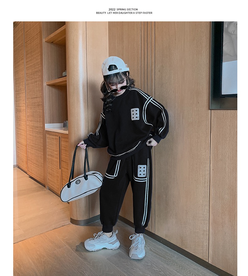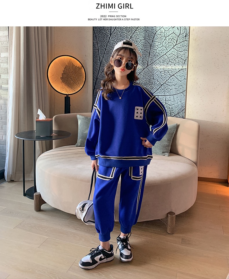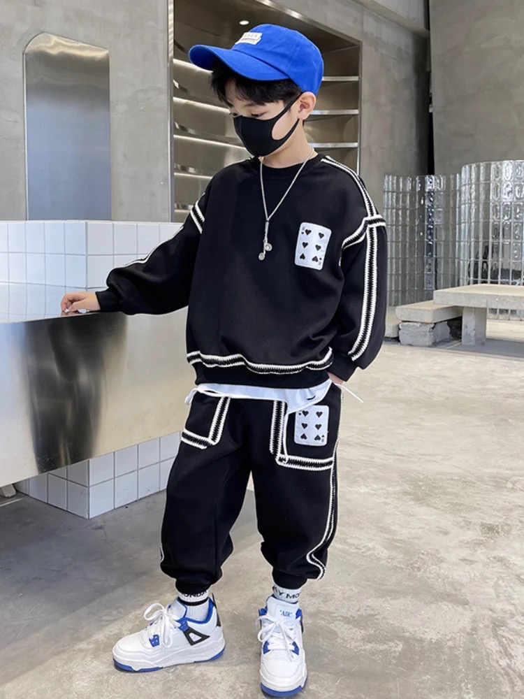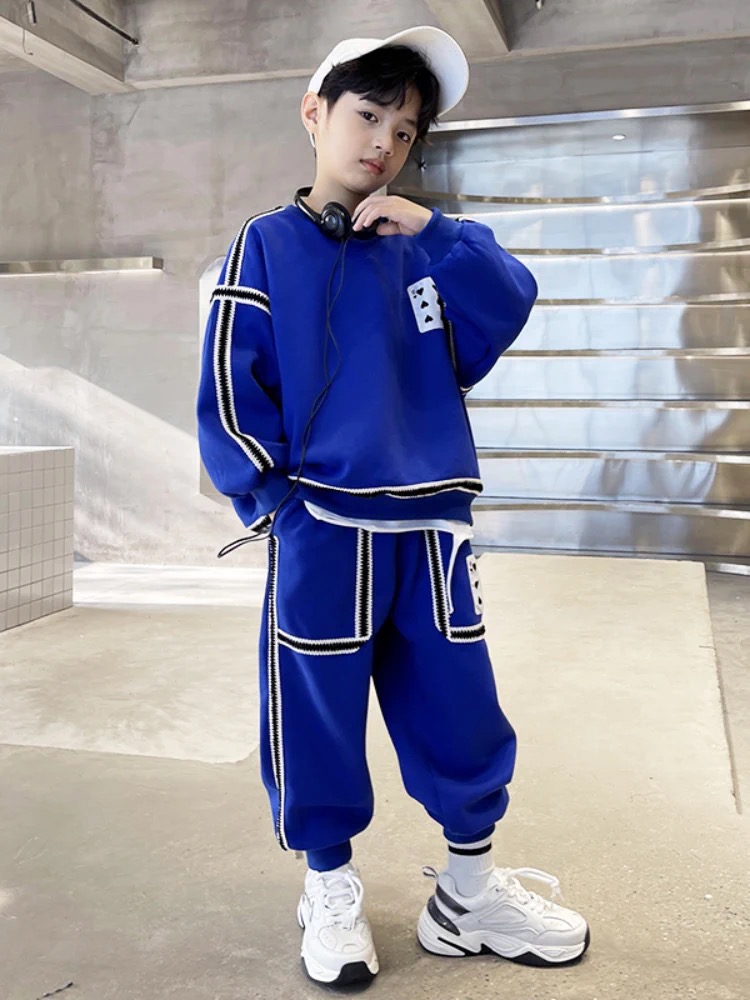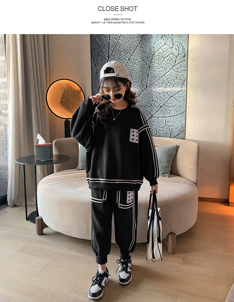 1、精致裁剪做工,走线细腻,不跳线,不跑线,卫衣卫裤都是休闲不挑人的,孩子胖瘦都很好驾驭,原创设计,张扬独特的魅力,整体设计让人感觉很潮,超酷的贴条,潮流感十足