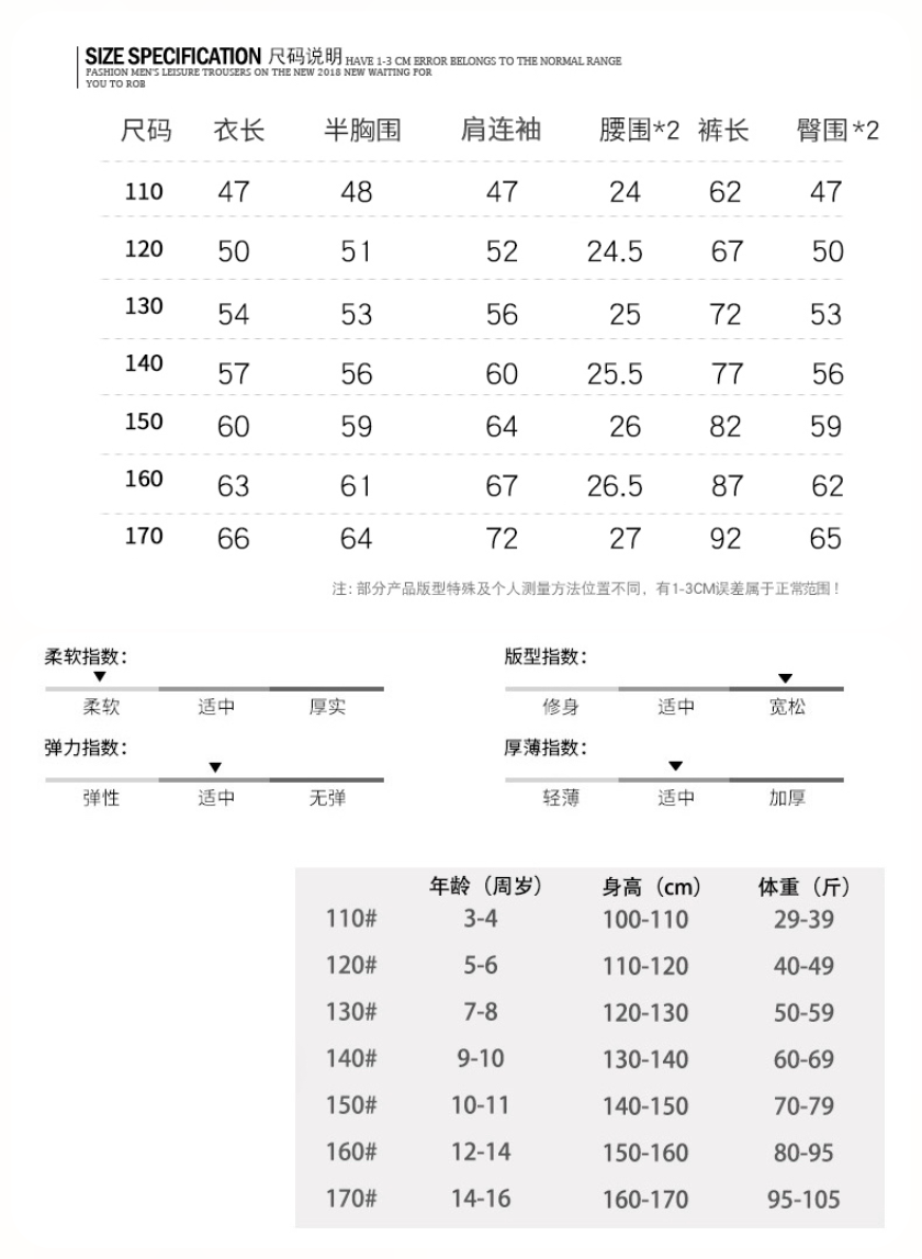 【产品尺寸】110-170码(详见尺码表)