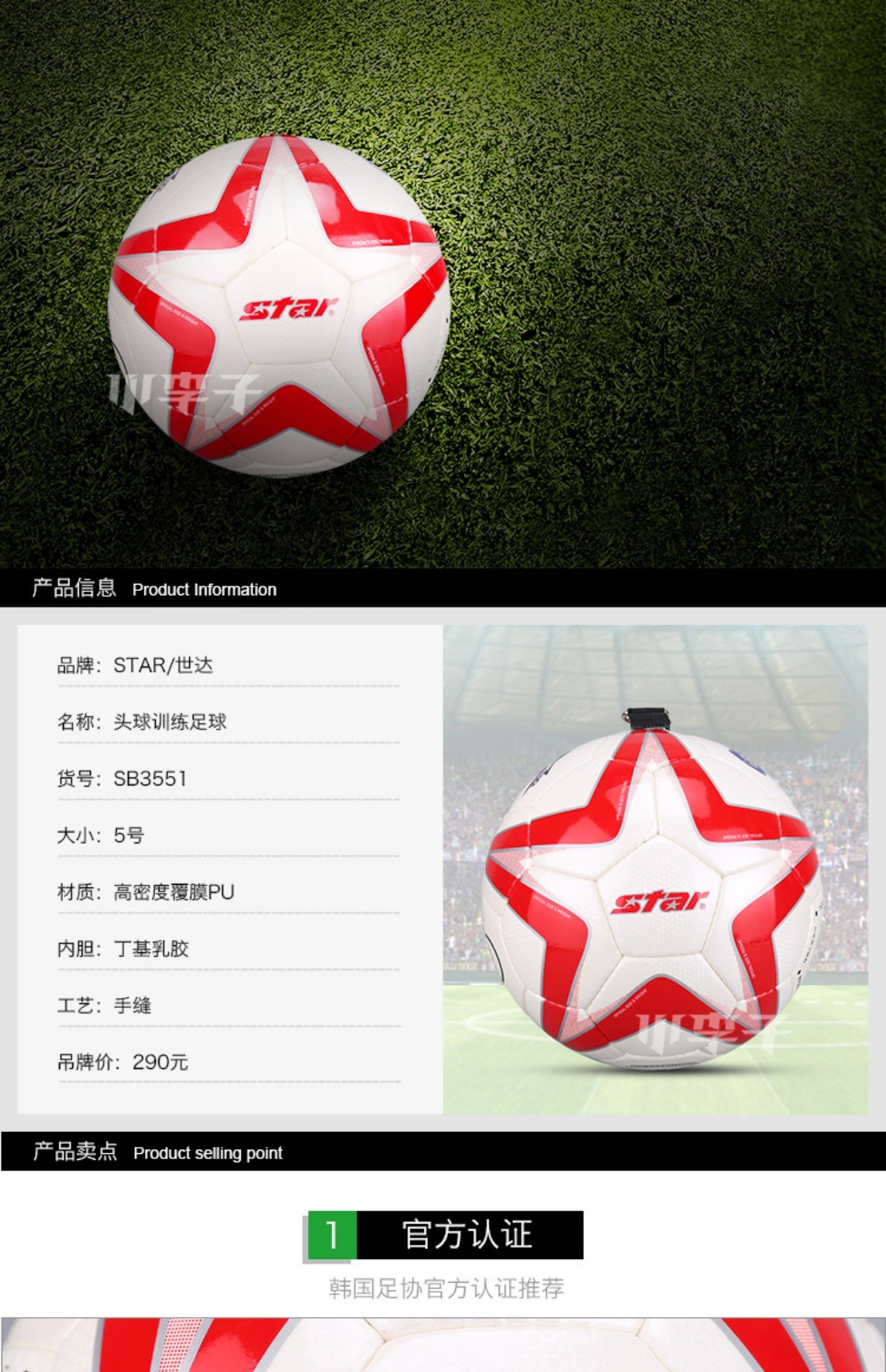 小李子:专柜正品STAR世达成人头球训练带绳手缝5号练习耐磨足球男