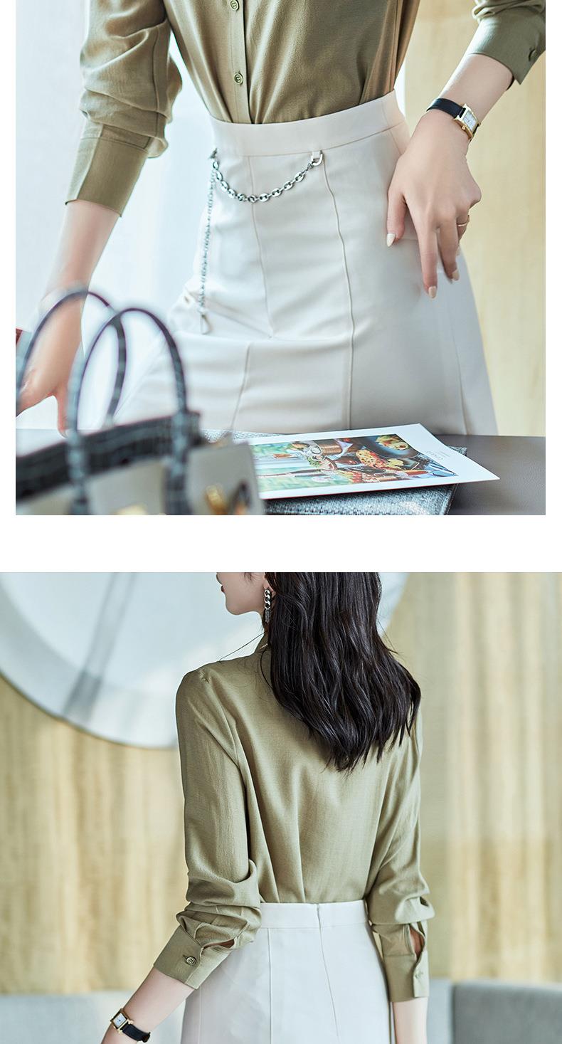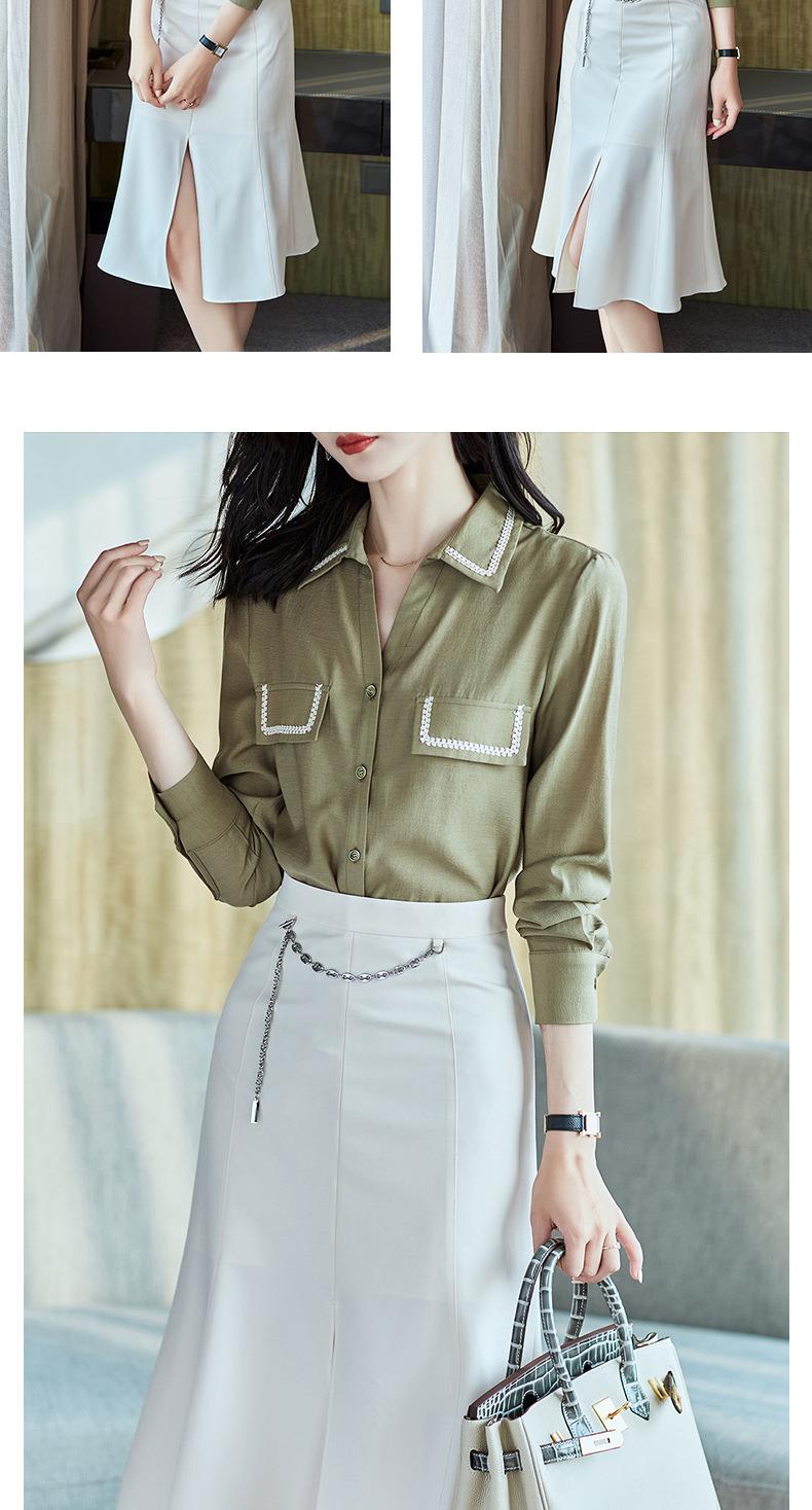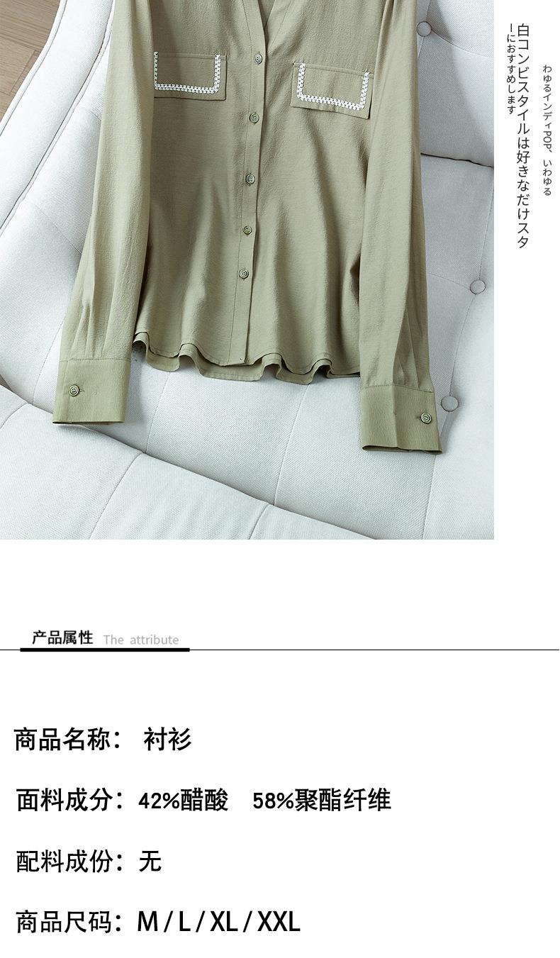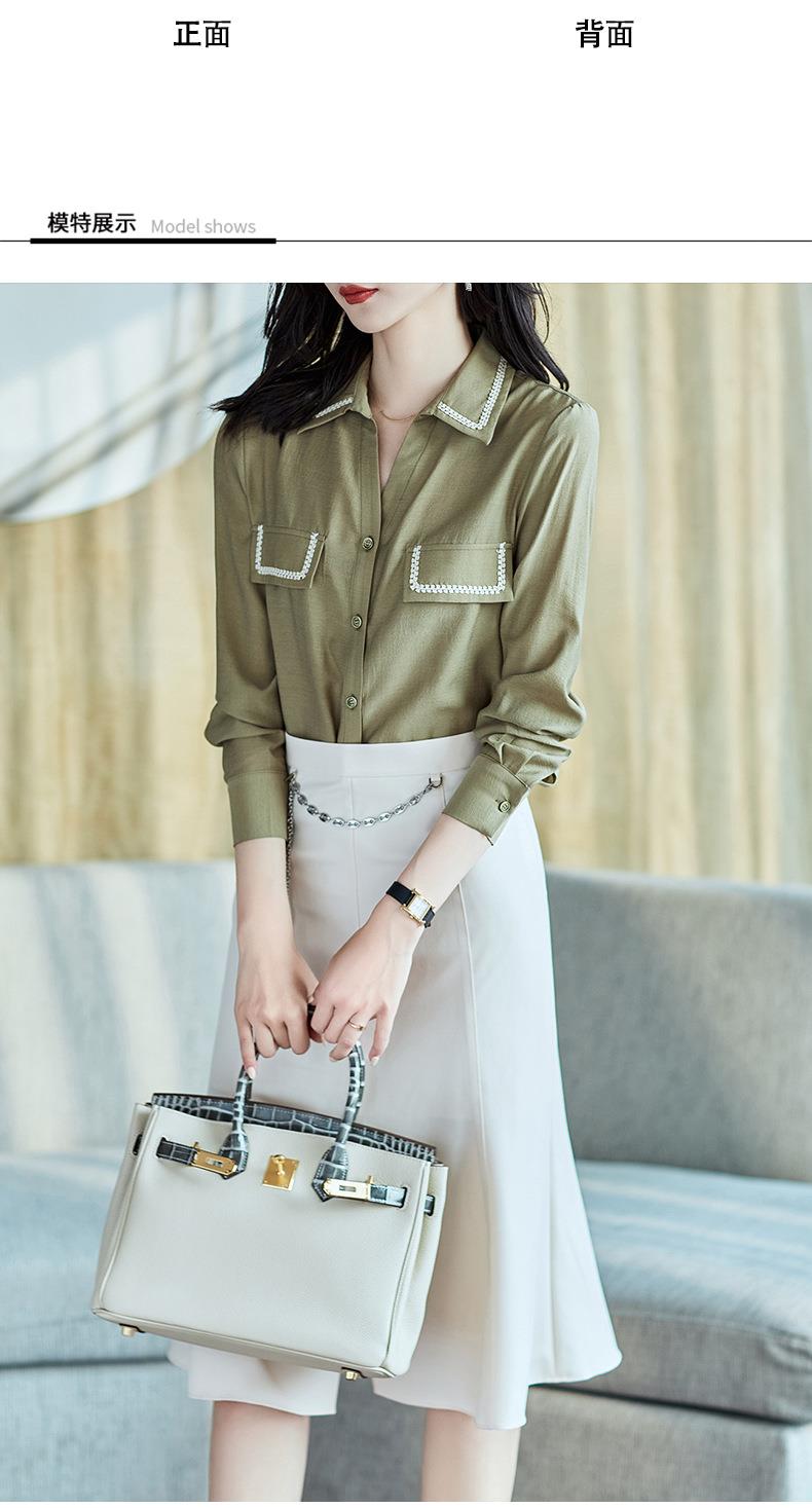 2023秋装新款衬衫女长袖大码简约军绿色女士衬衣A2732