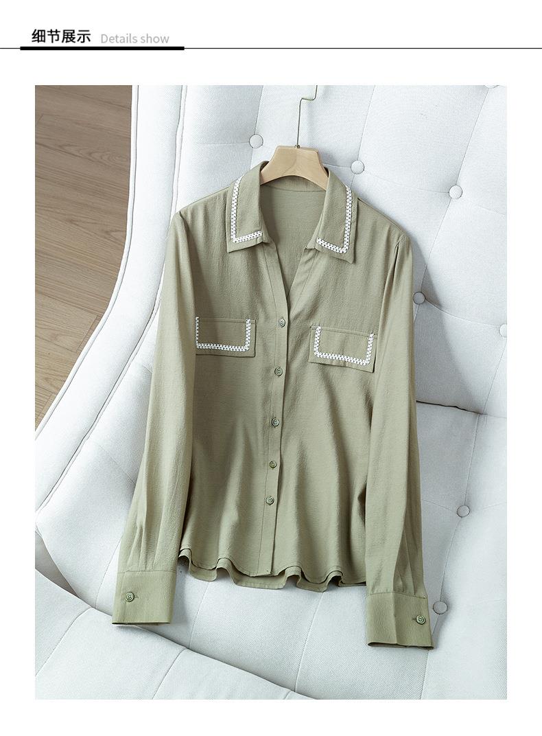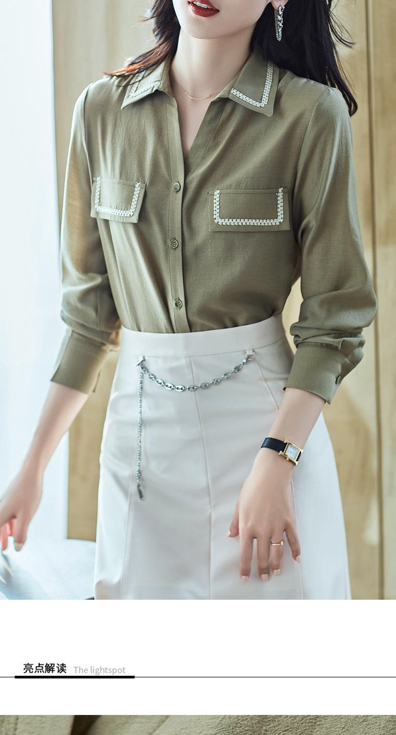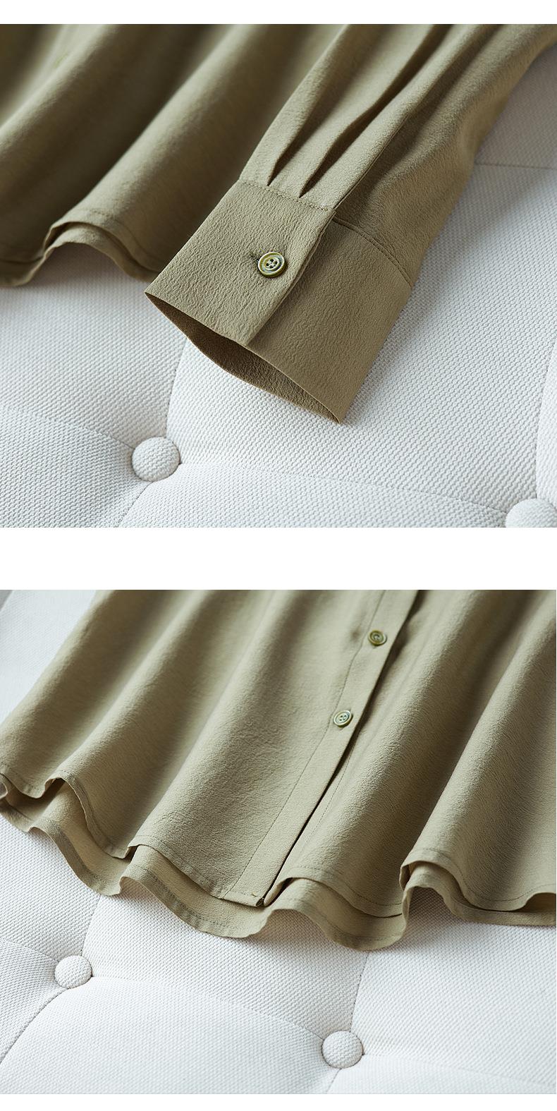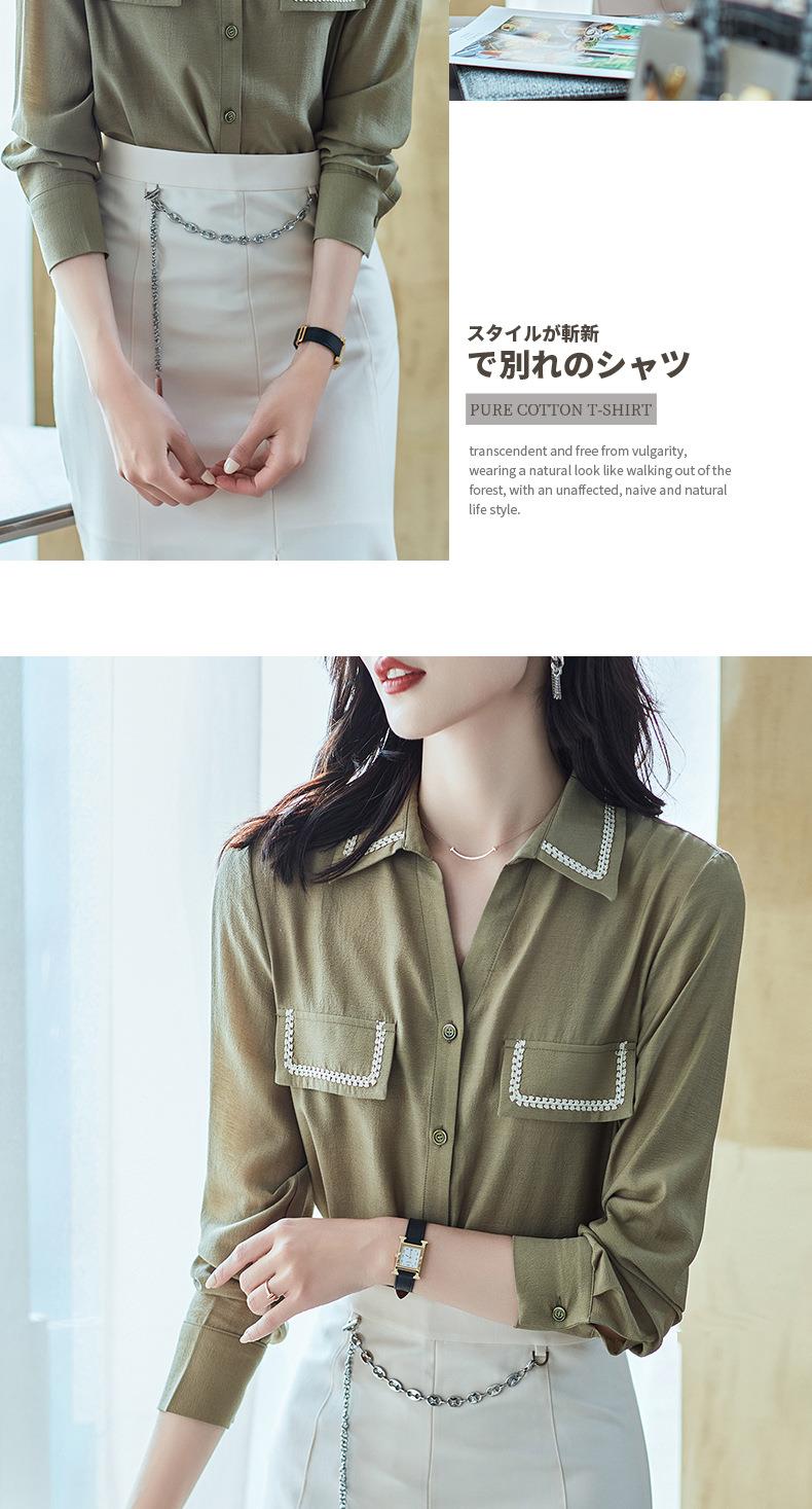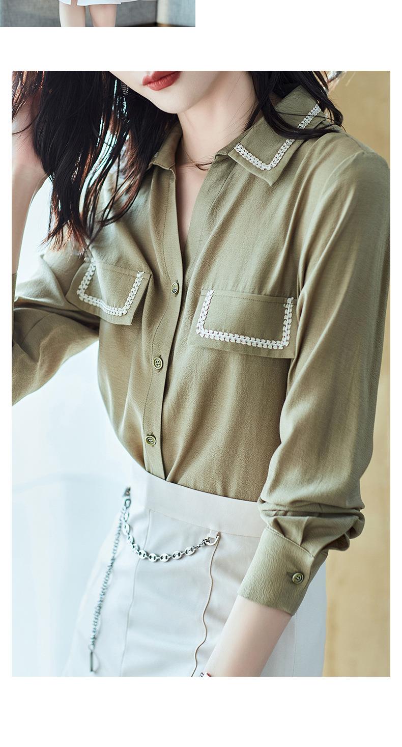 2023秋装新款衬衫女长袖大码简约军绿色女士衬衣A2732