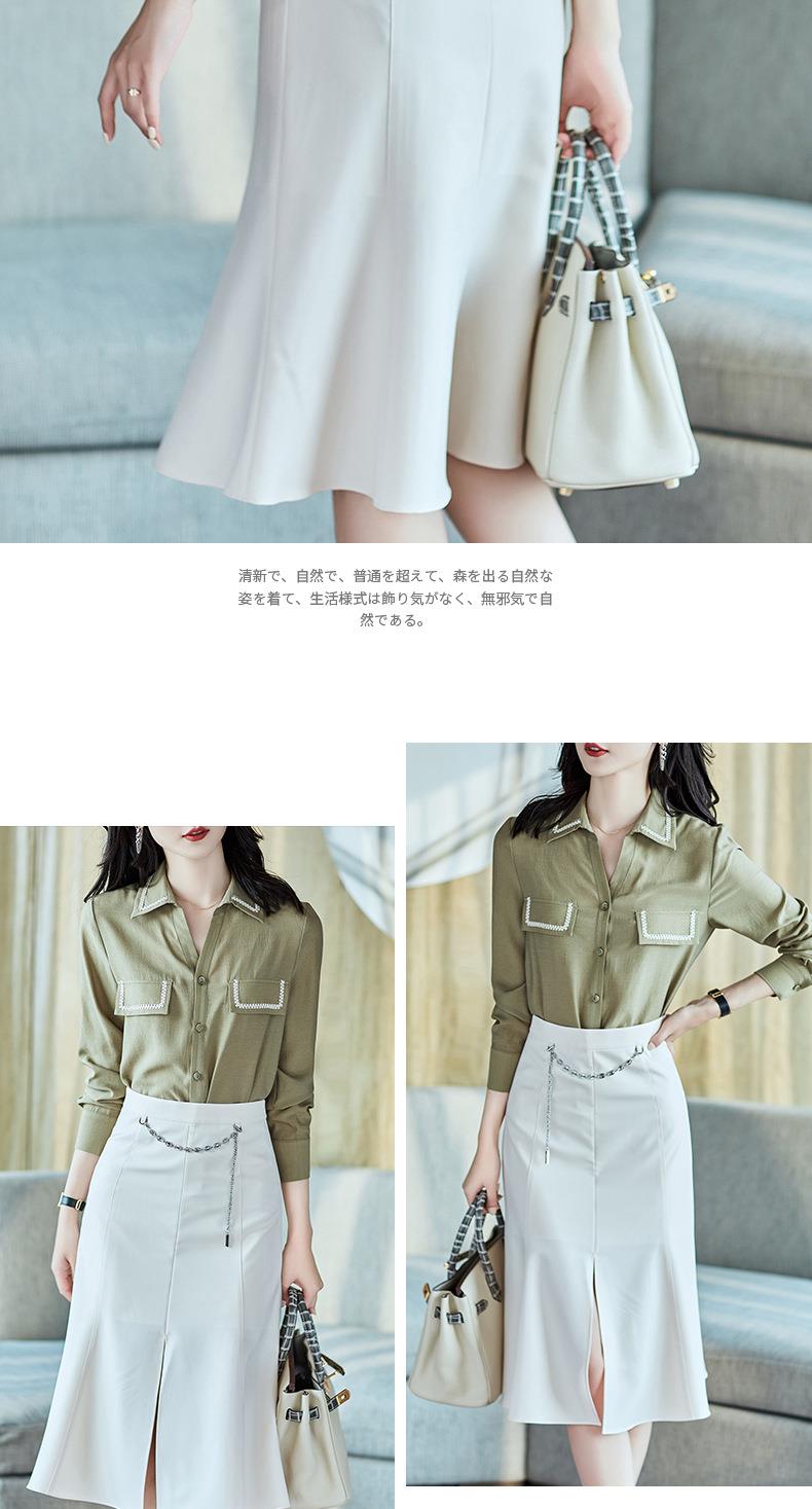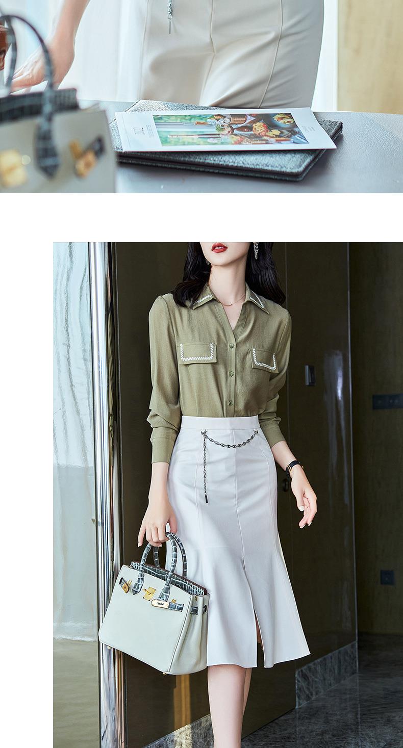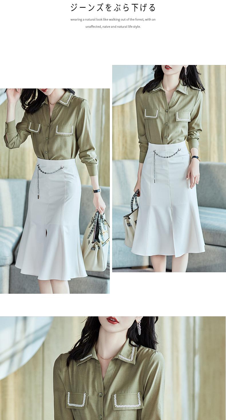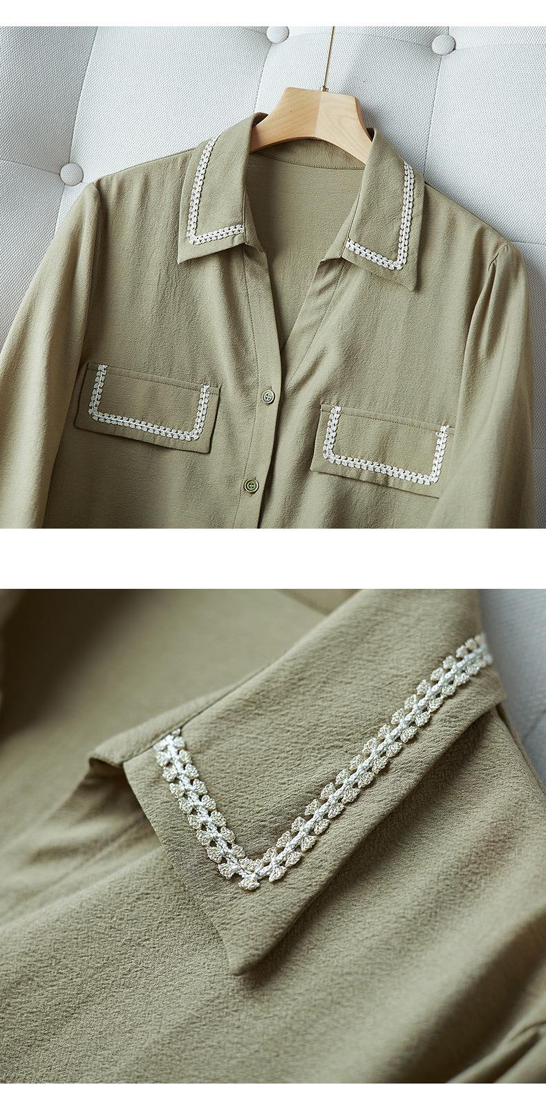 2023秋装新款衬衫女长袖大码简约军绿色女士衬衣A2732