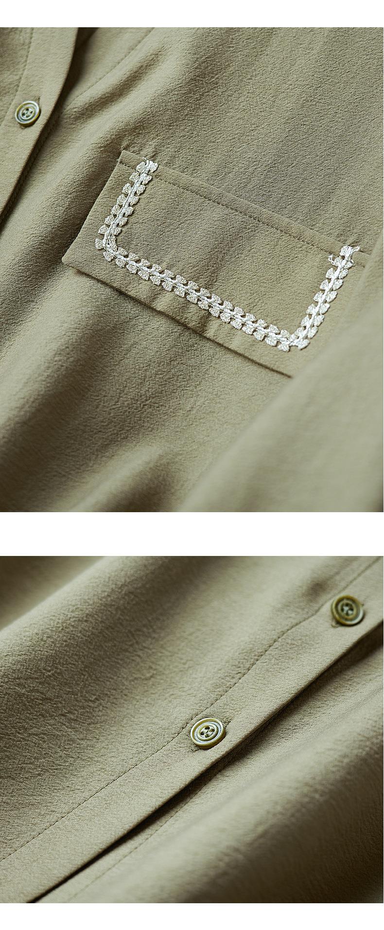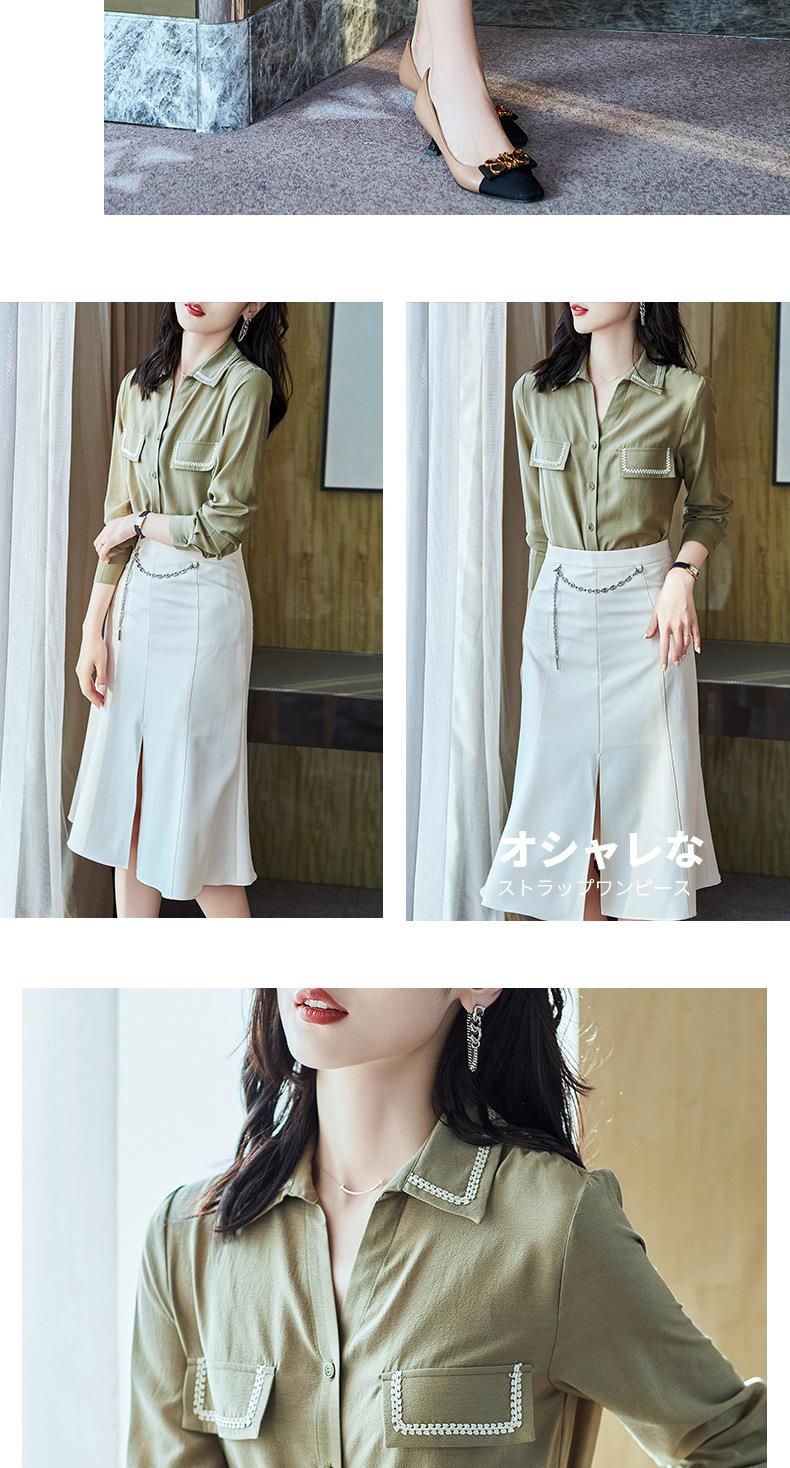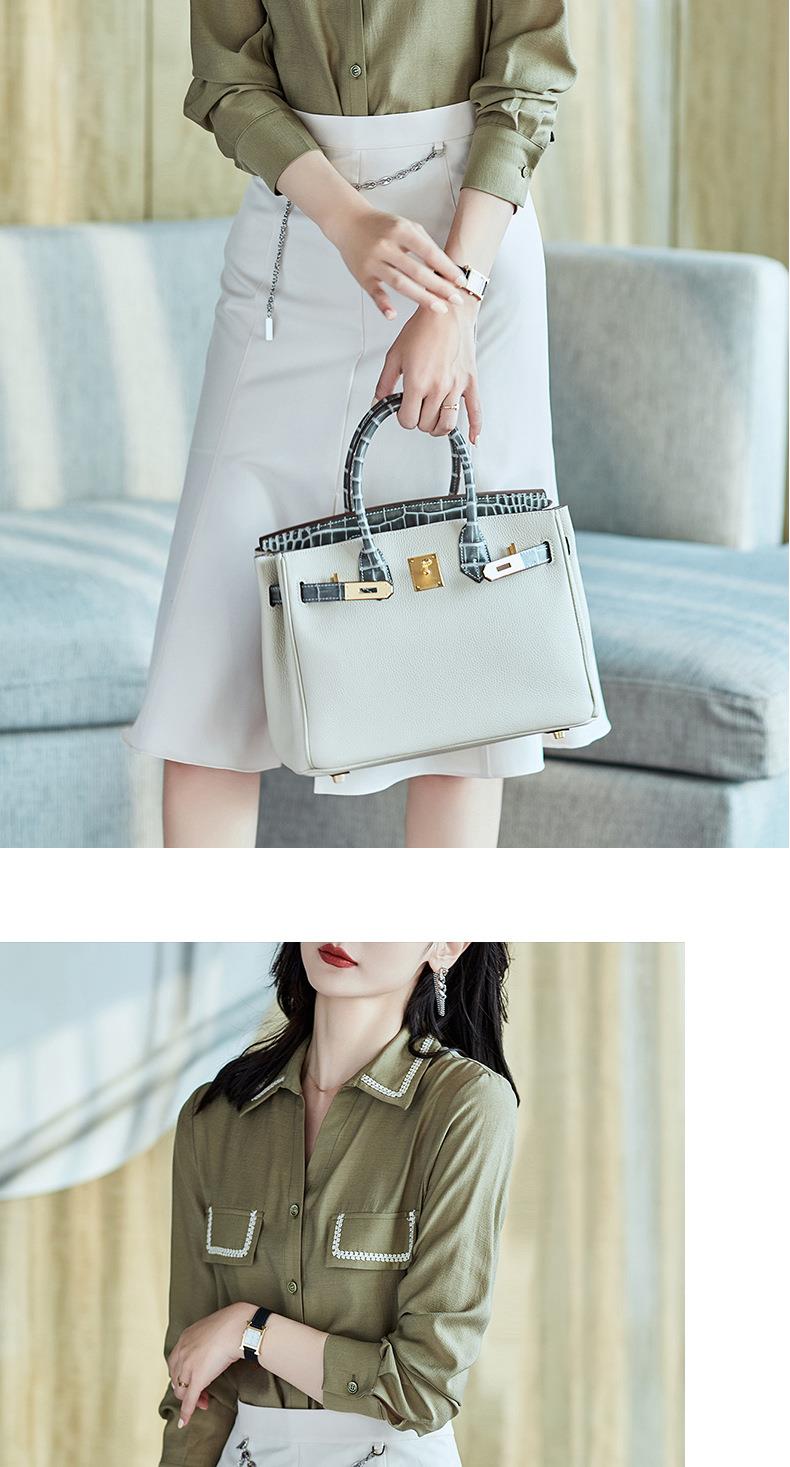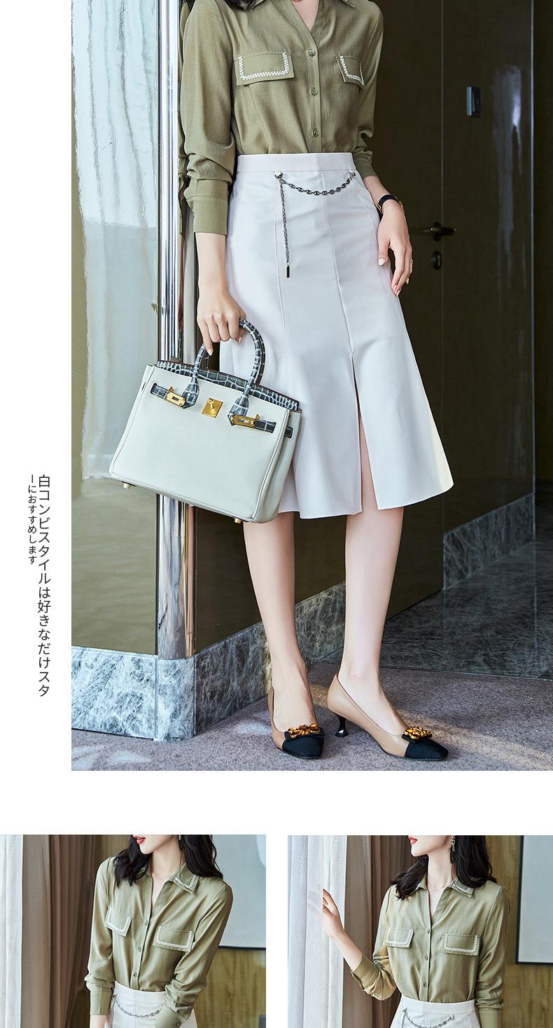 2023秋装新款衬衫女长袖大码简约军绿色女士衬衣A2732