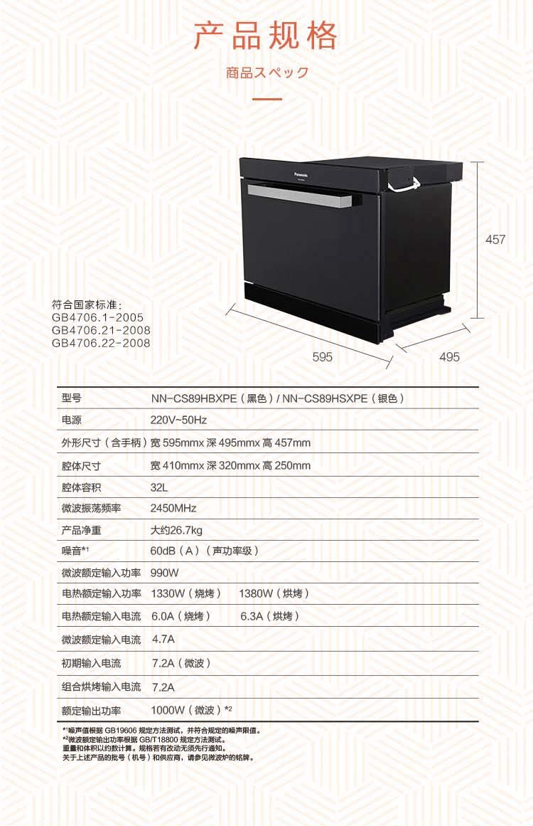 【包邮直发】松下烤箱 NN-CS89HBXPE(ZB)