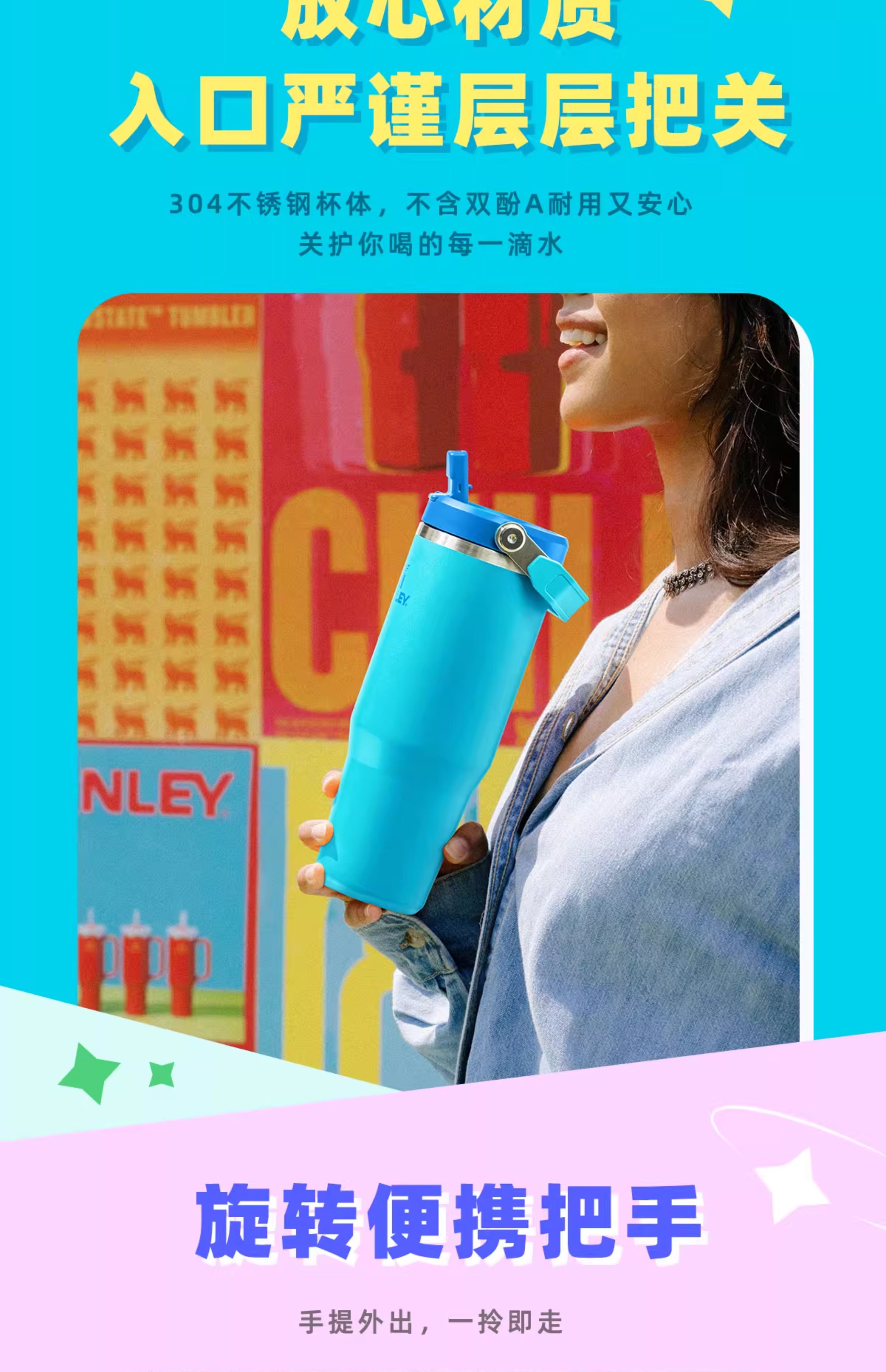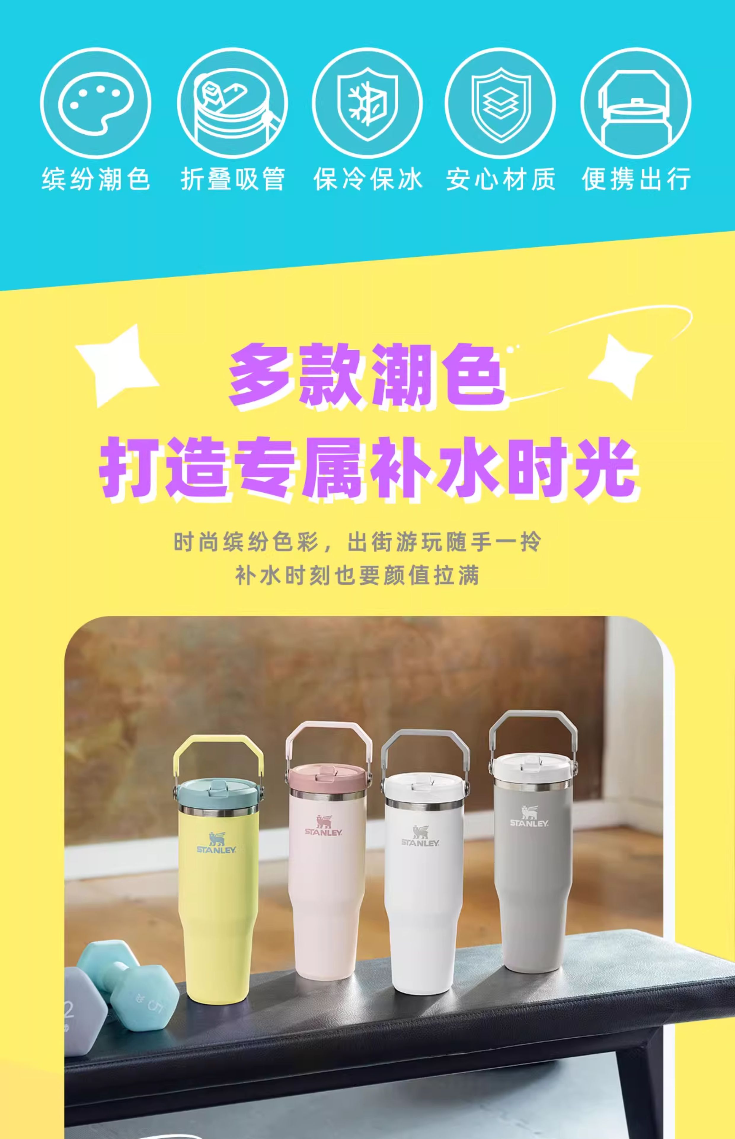 Stanley 拎拎杯 巨无霸杯子 折叠吸管杯保温保冷大容量高颜值男女水杯子