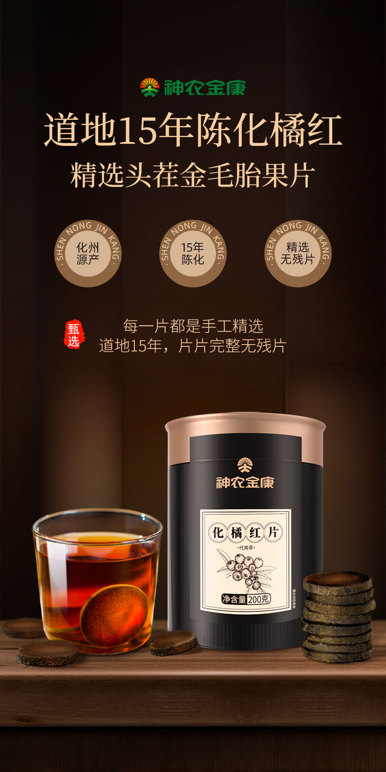 神农金康 陈年化橘红200g 正宗化州化橘红胎果切片 原生态真滋补 喝护家人健康