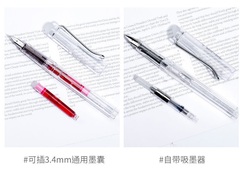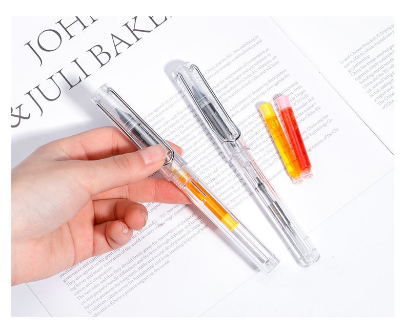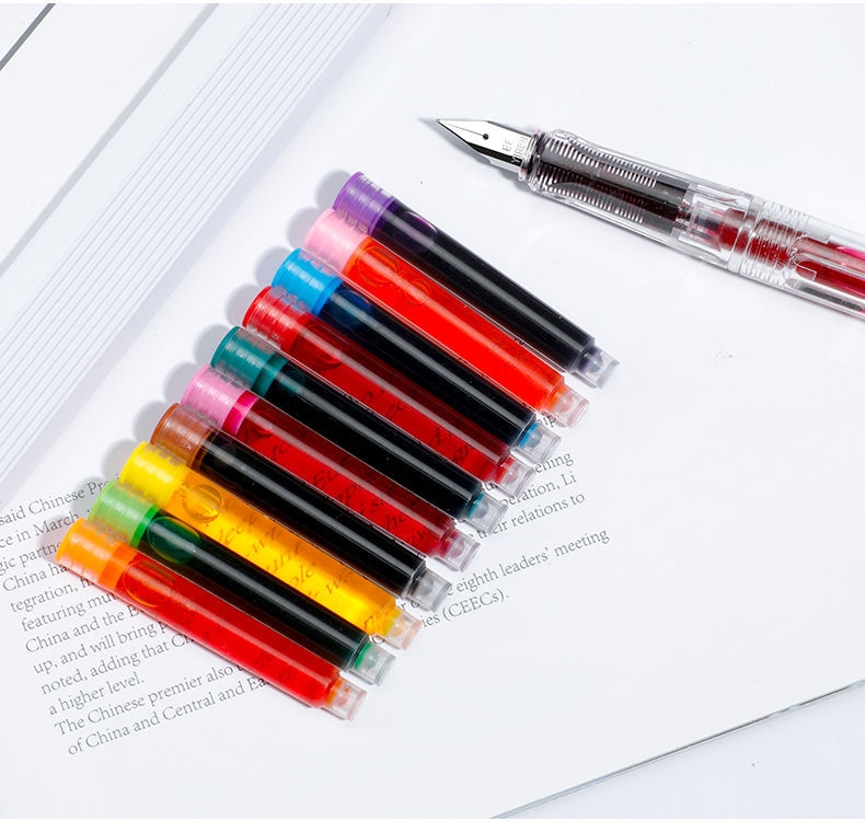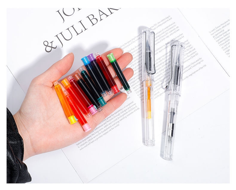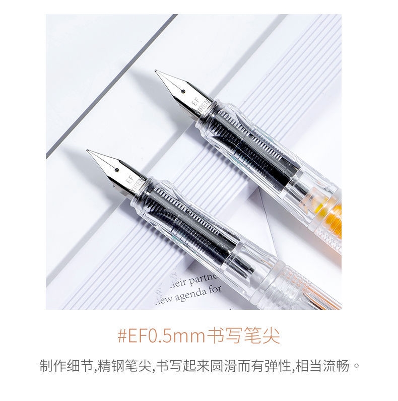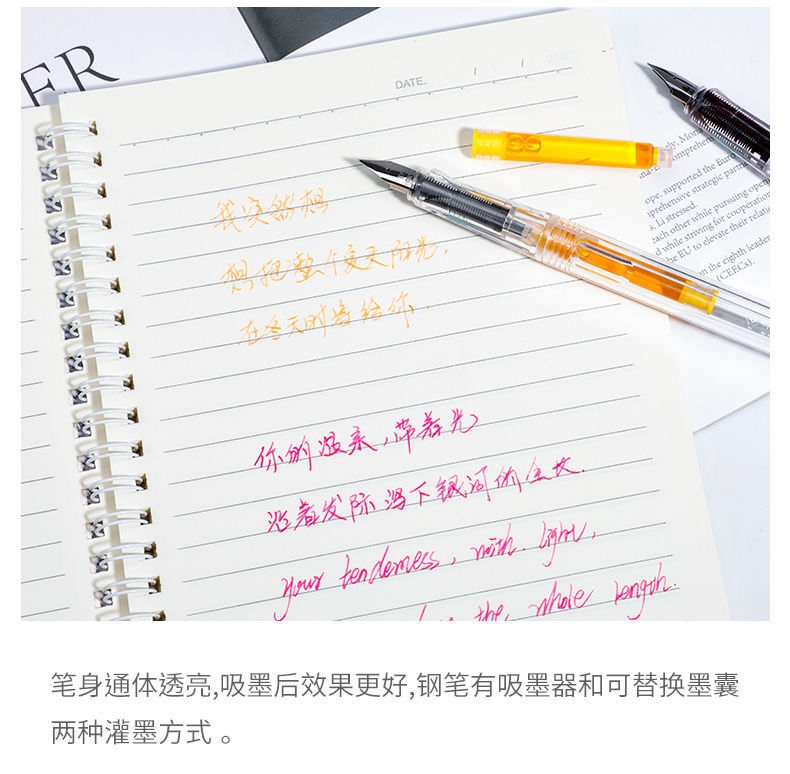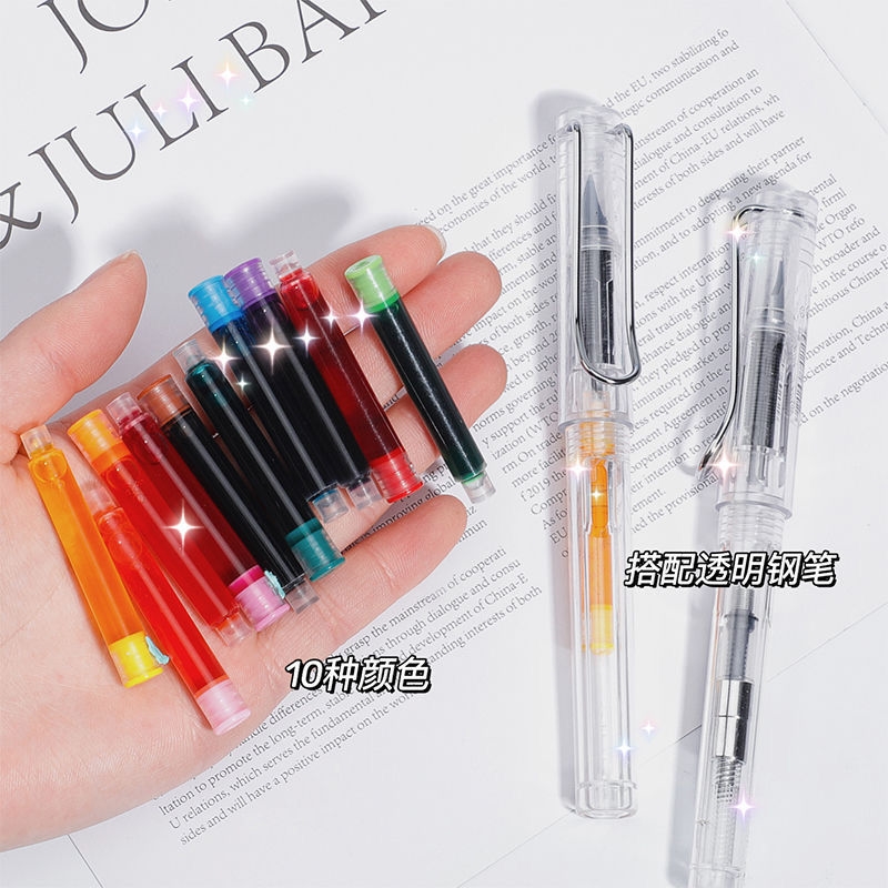 【无印风钢笔】办公文具可换墨囊可替换1-6年级墨胆初学者练字中小学生用儿童晶蓝色墨水EF笔尖3.8mm标准口径通用黑色彩色钢笔替芯