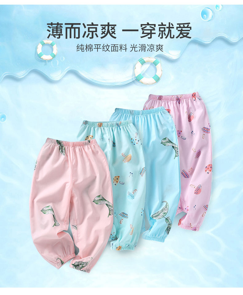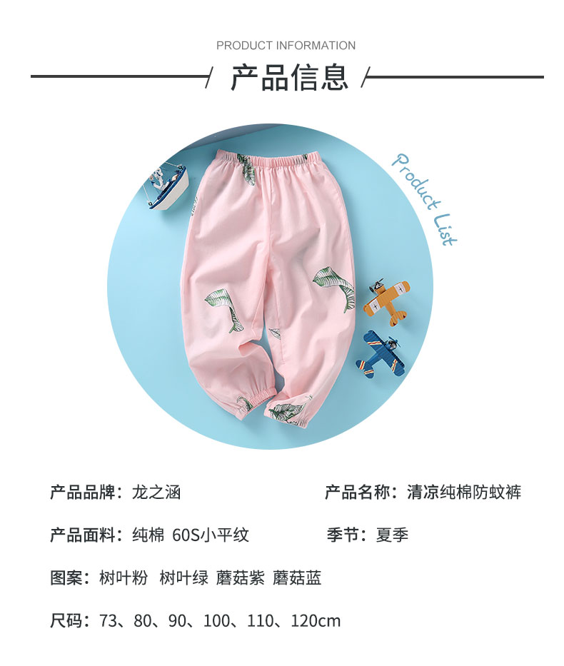 【特价清仓】龙之涵 儿童平纹印花防蚊裤 儿童夏季款防蚊裤全棉印花防蚊裤