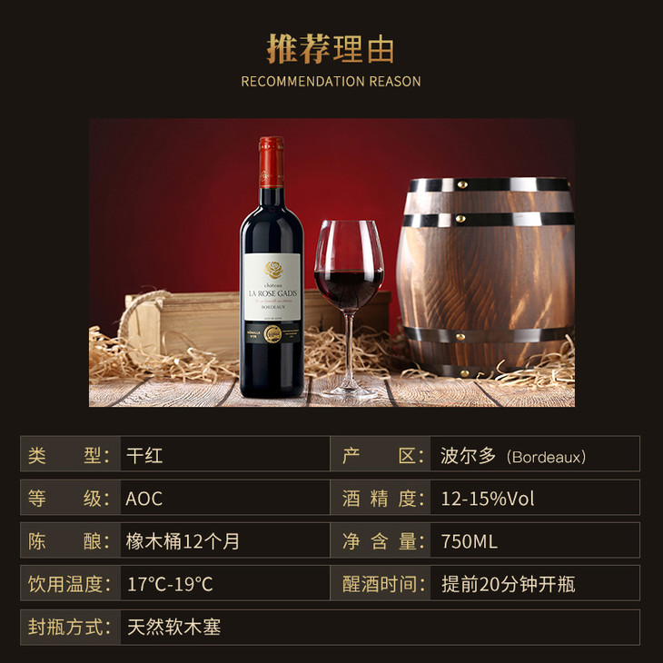 红玫瑰庄园红葡萄酒 Chateau La Rose Gadis