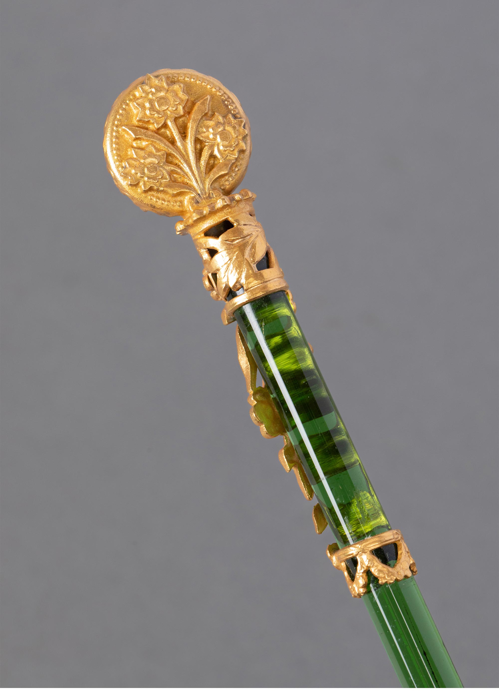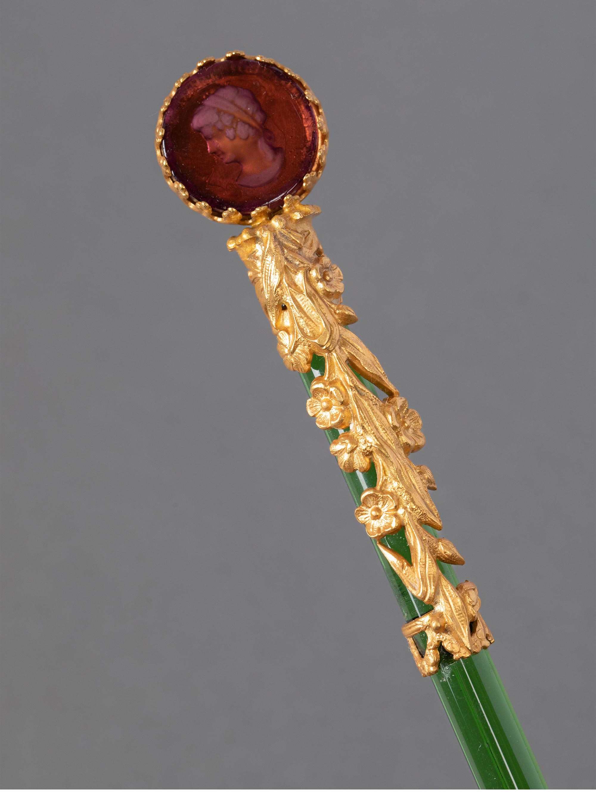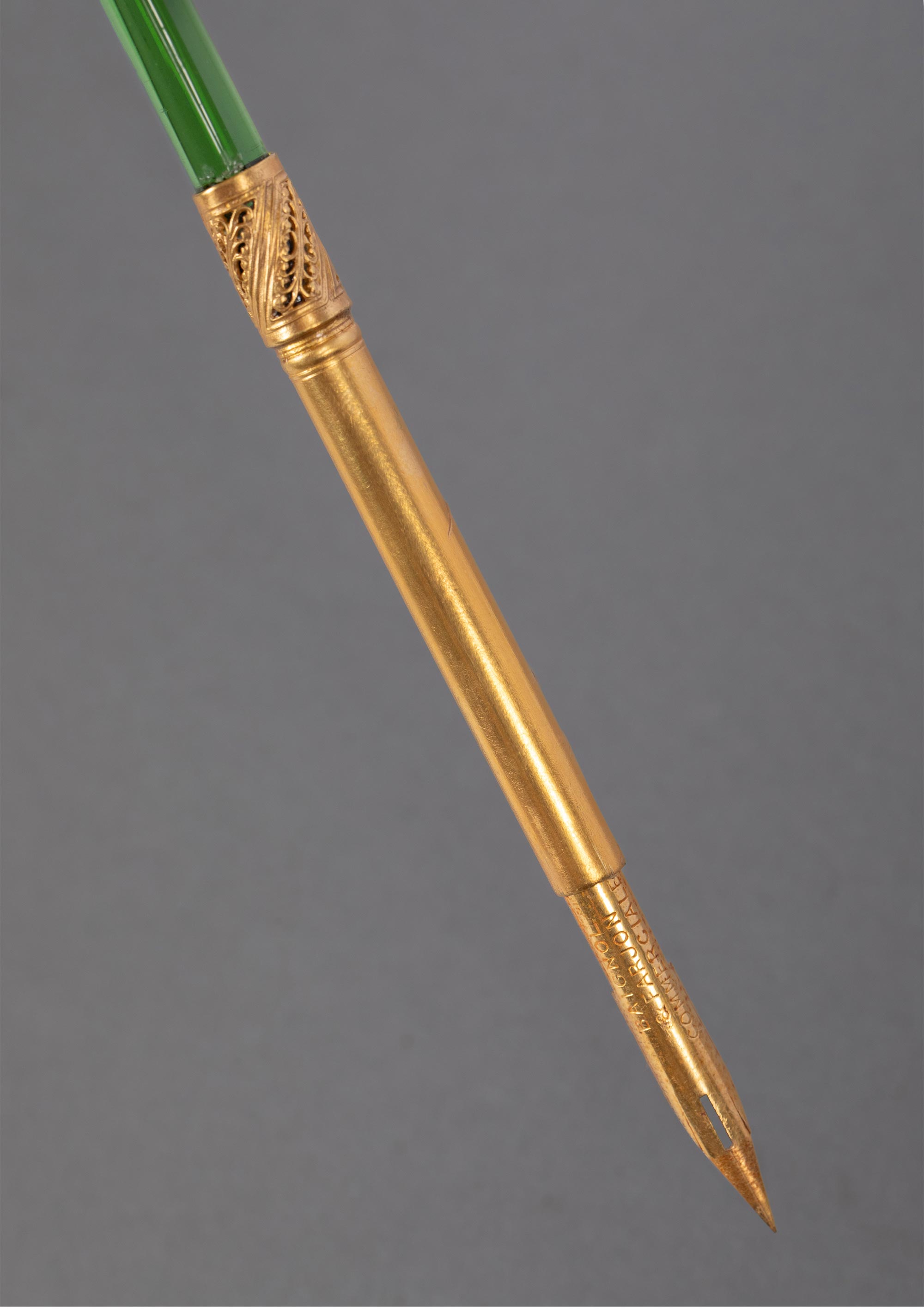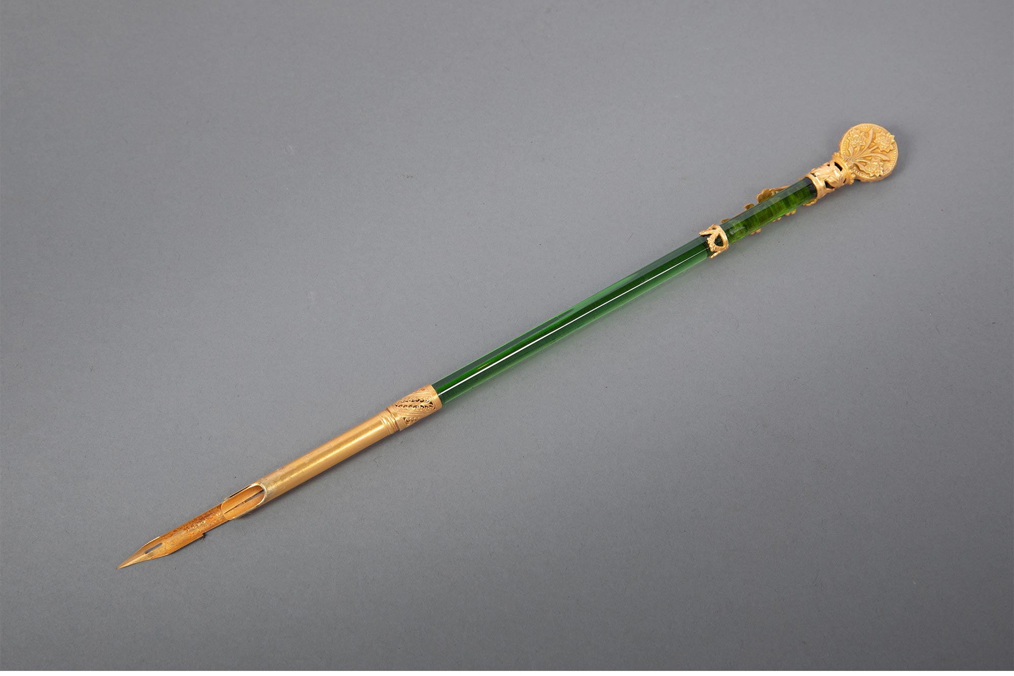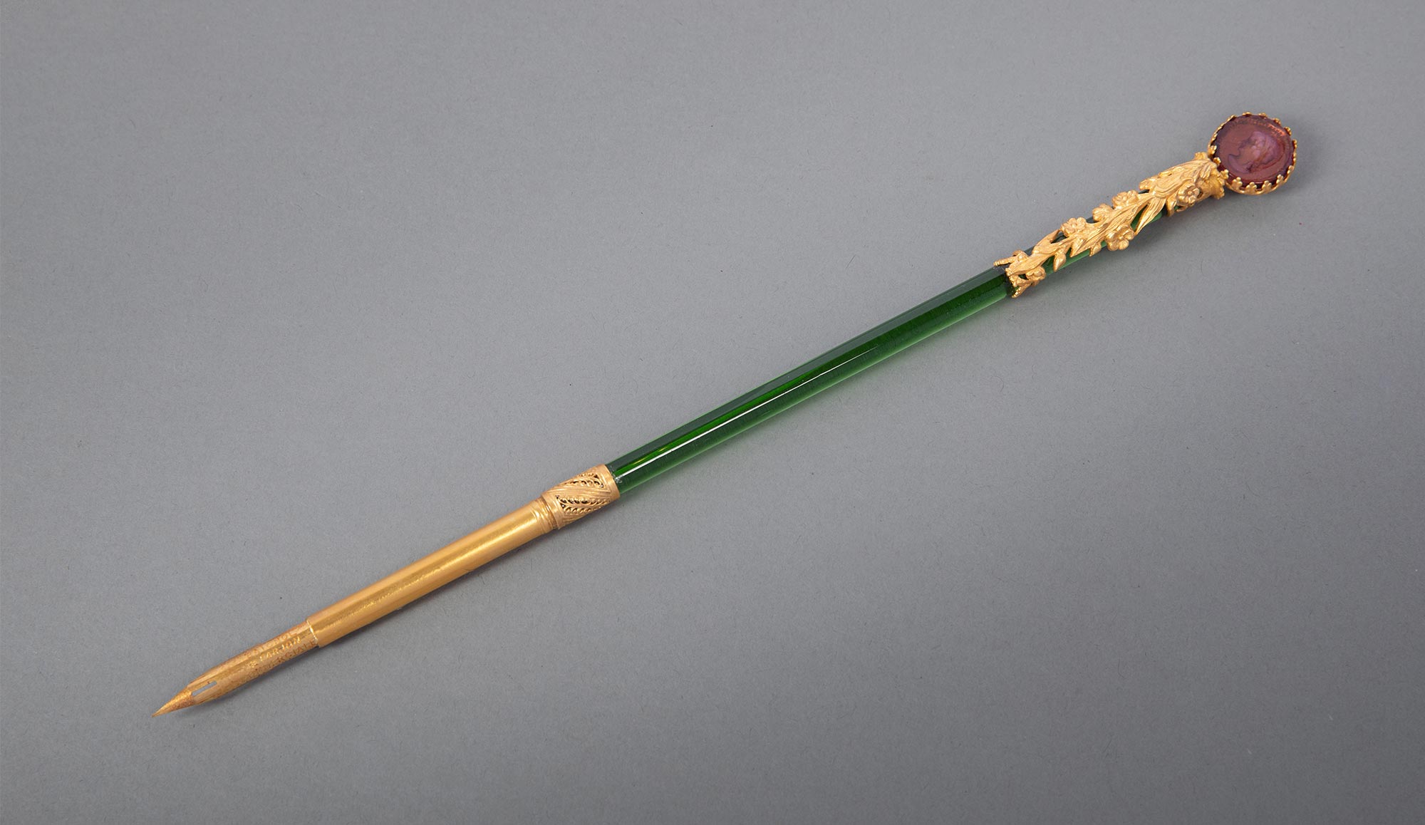 19世纪末法国出品古典女子肖像铜鎏金精雕装饰水晶笔杆蘸水钢笔