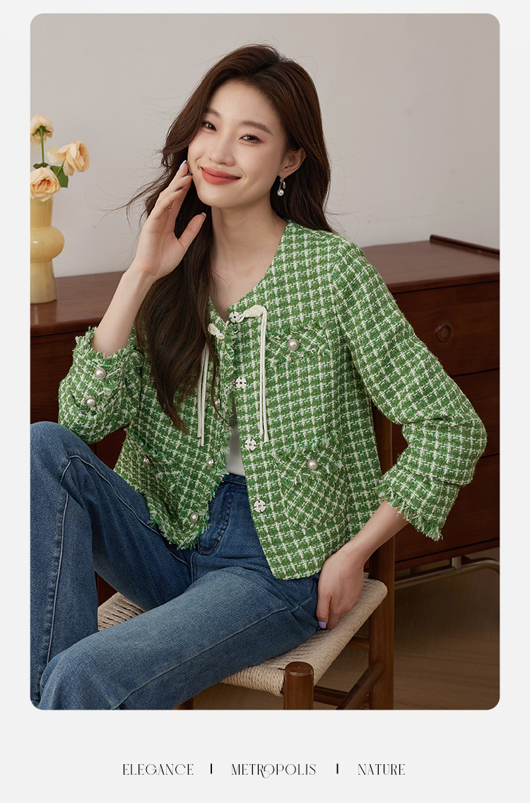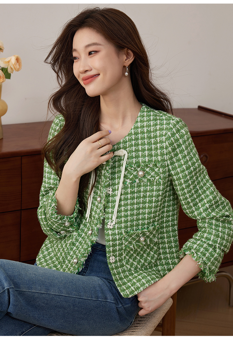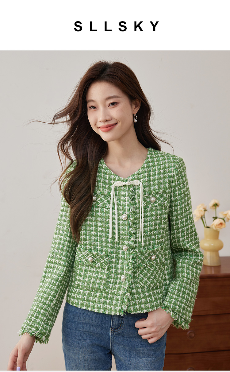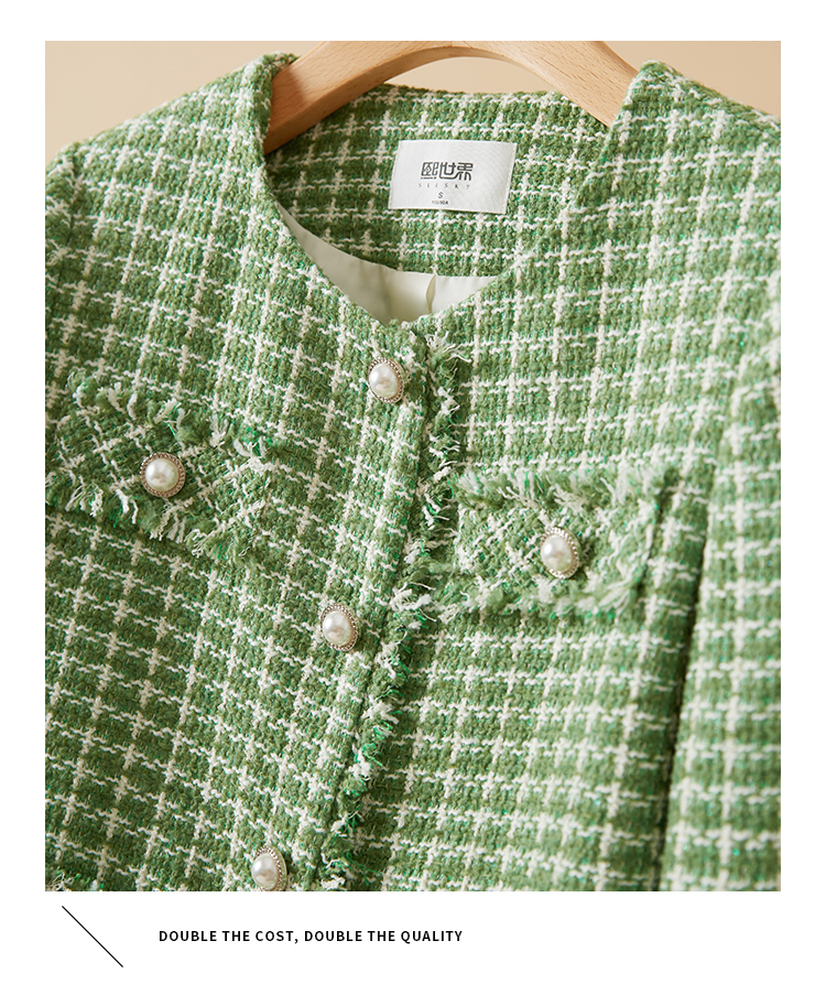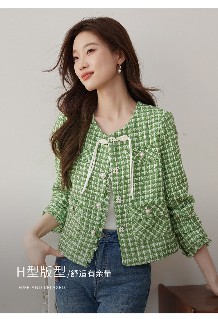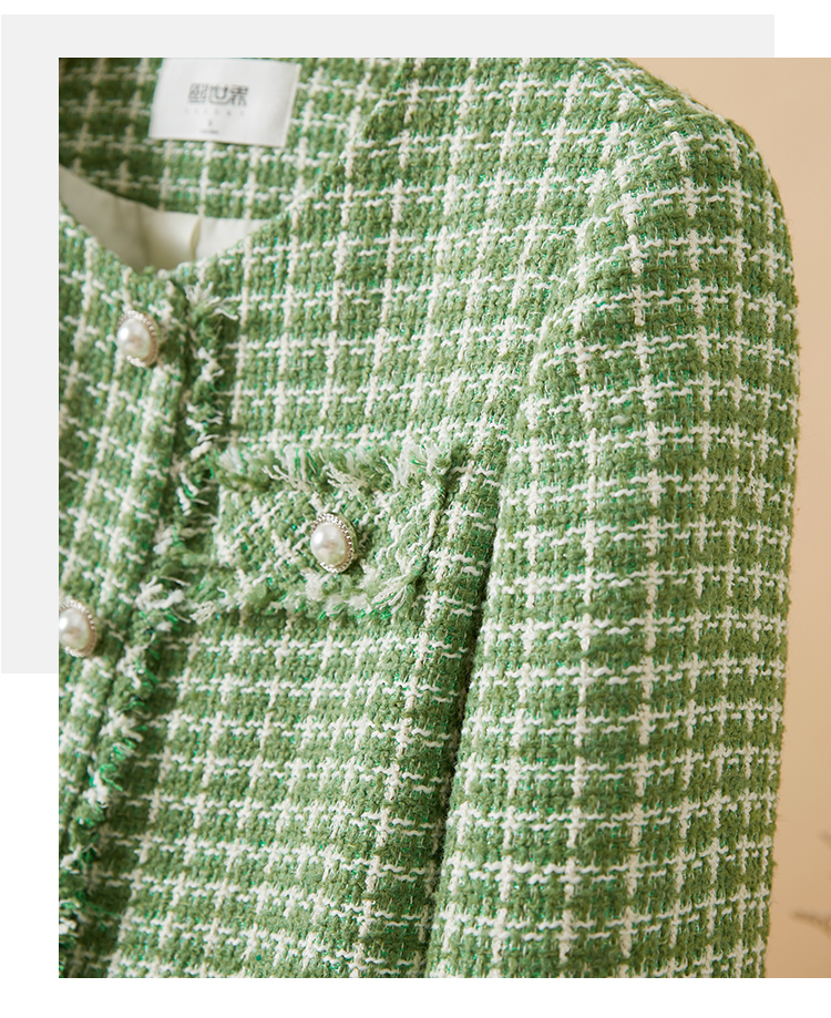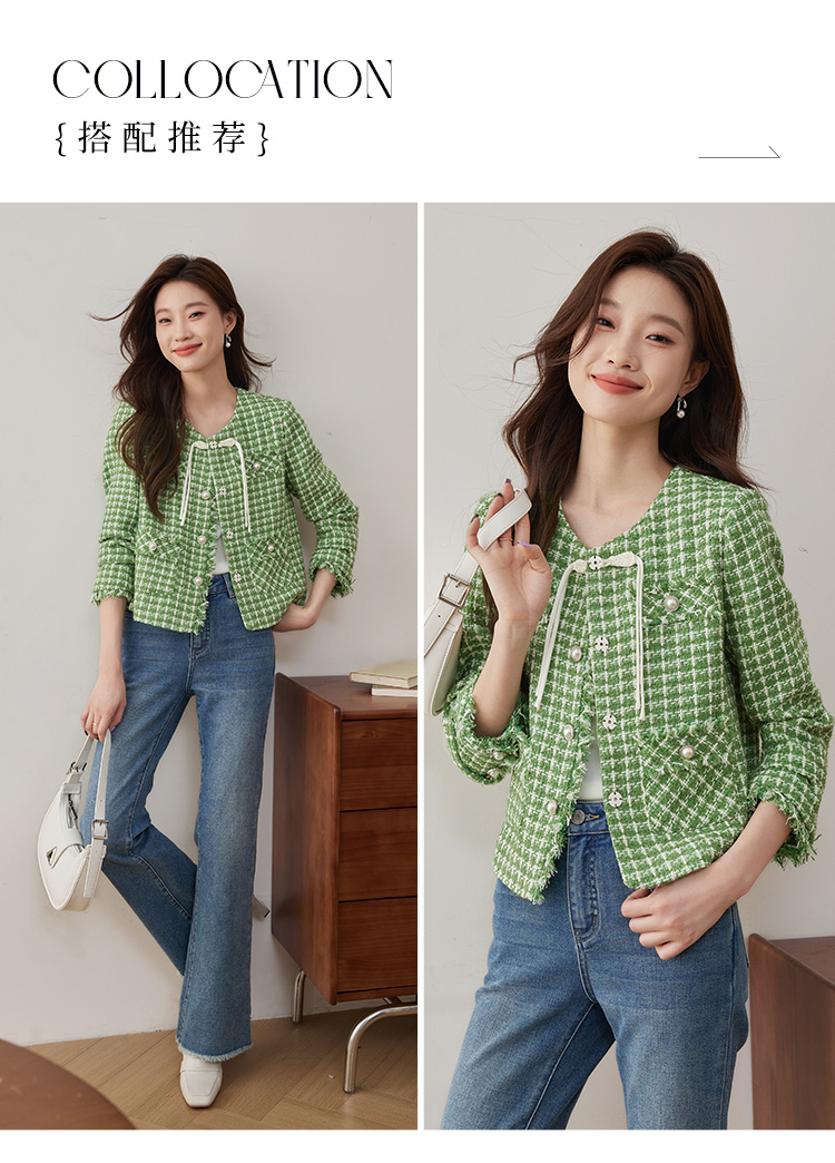 【年货节】熙世界小香风外套女秋款优雅毛边粗花呢短外套女