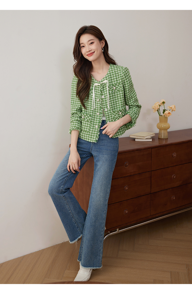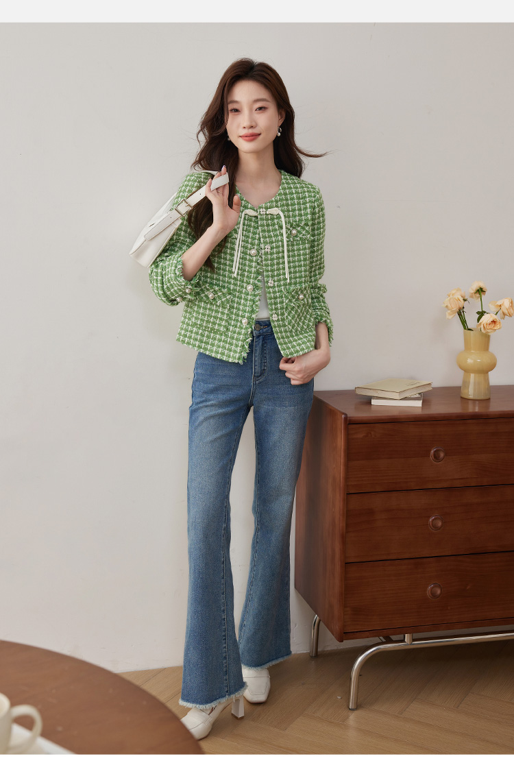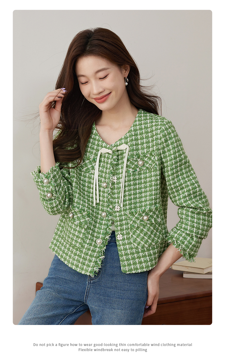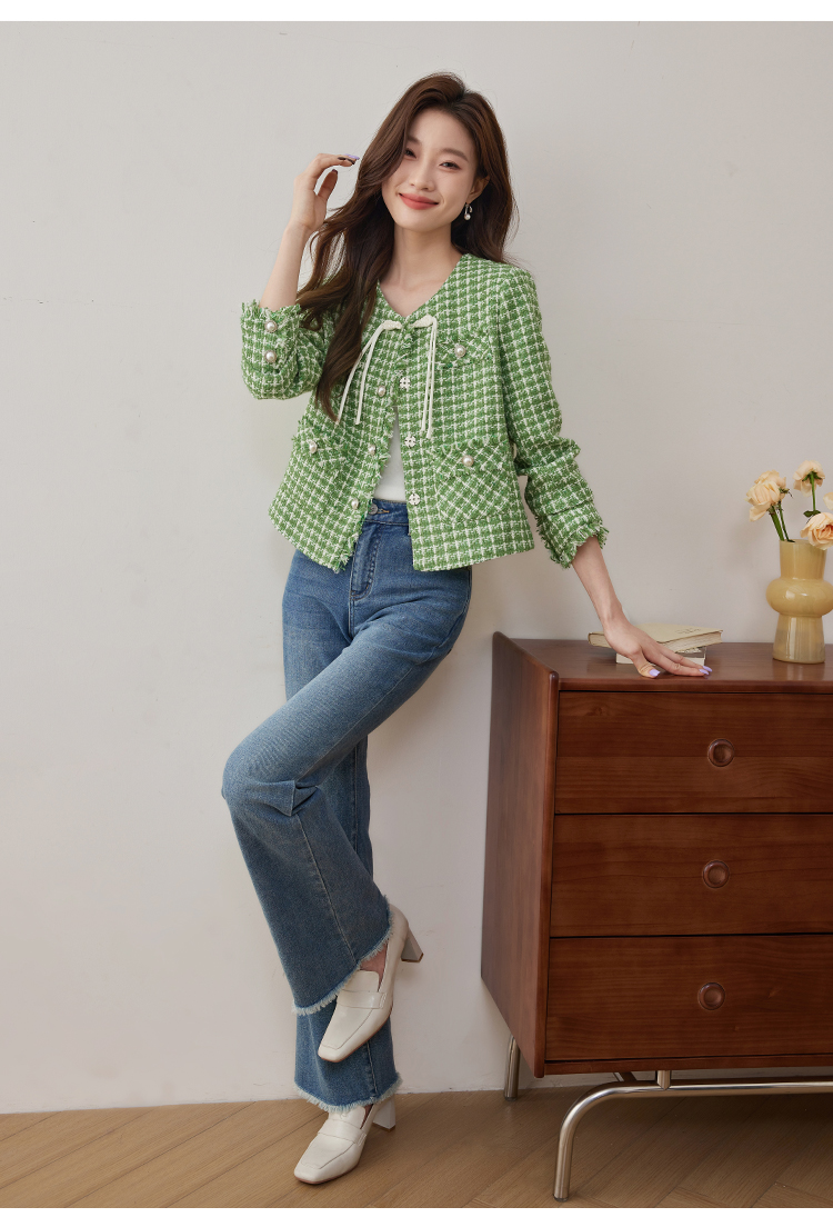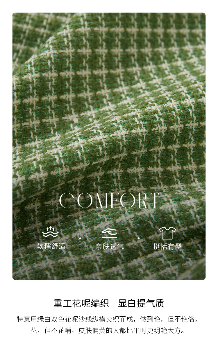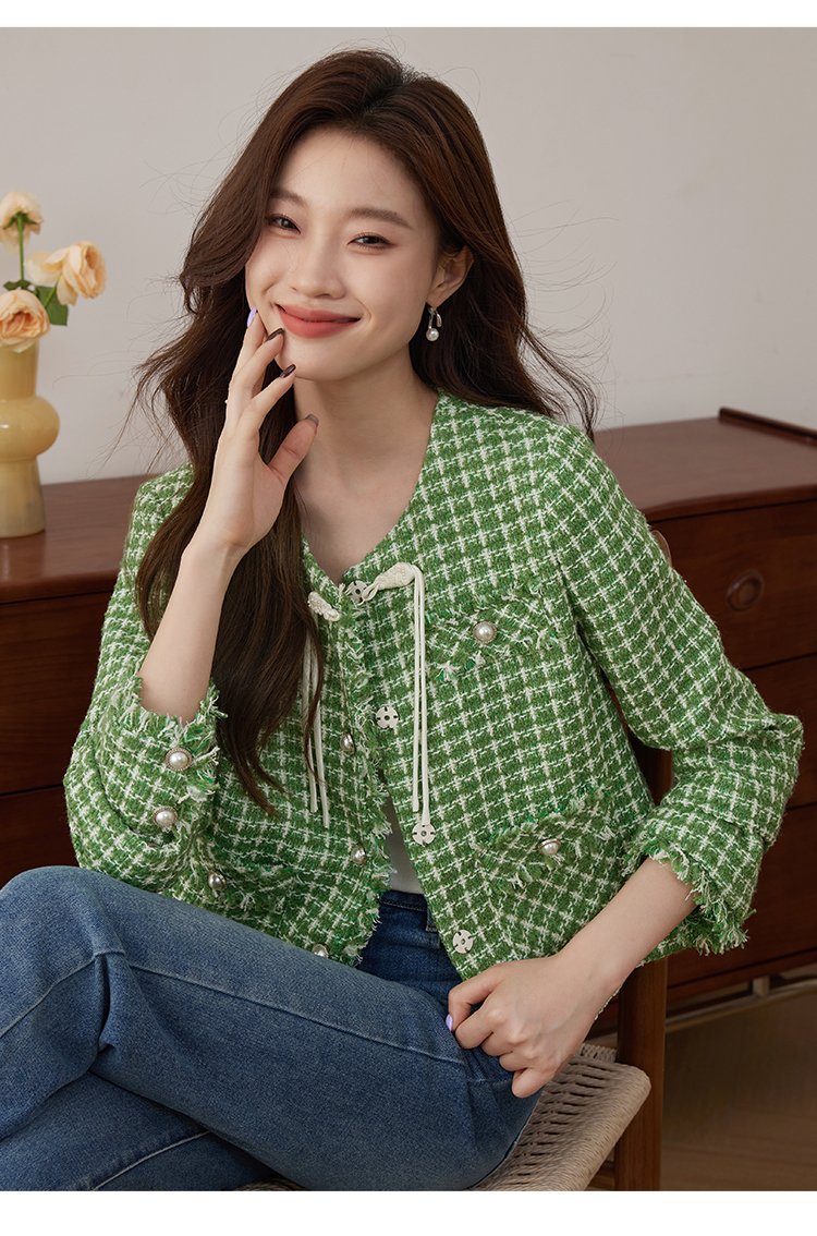 【年货节】熙世界小香风外套女秋款优雅毛边粗花呢短外套女