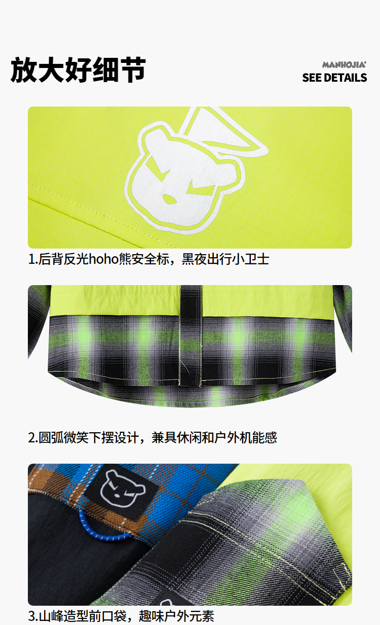 【熊朋友】漫画家25春Teflon三防户外机能工装格纹拼接衬衫外套
