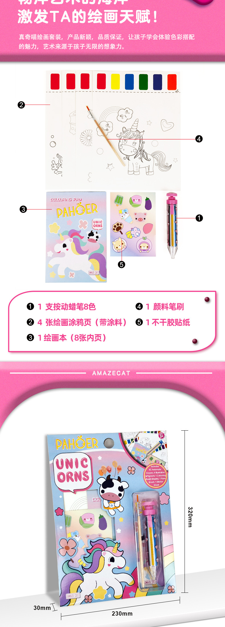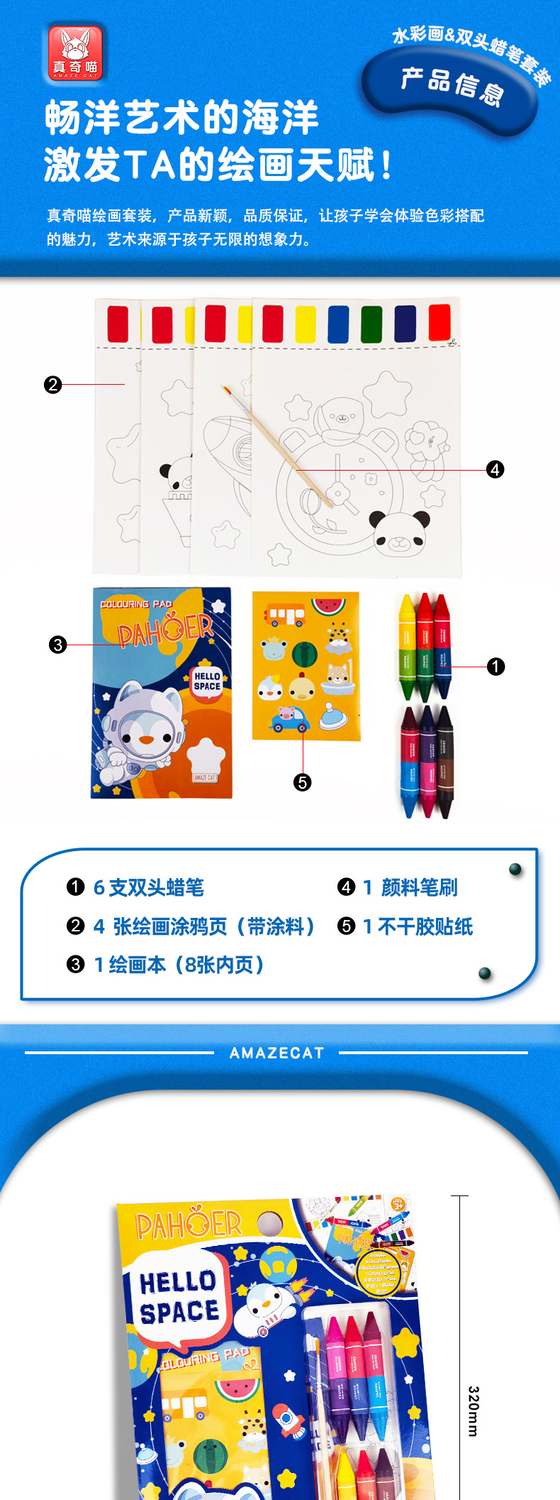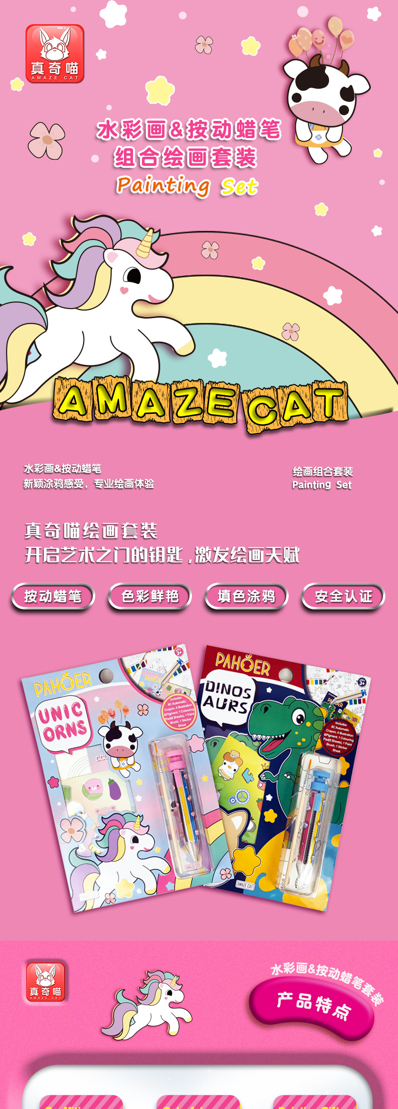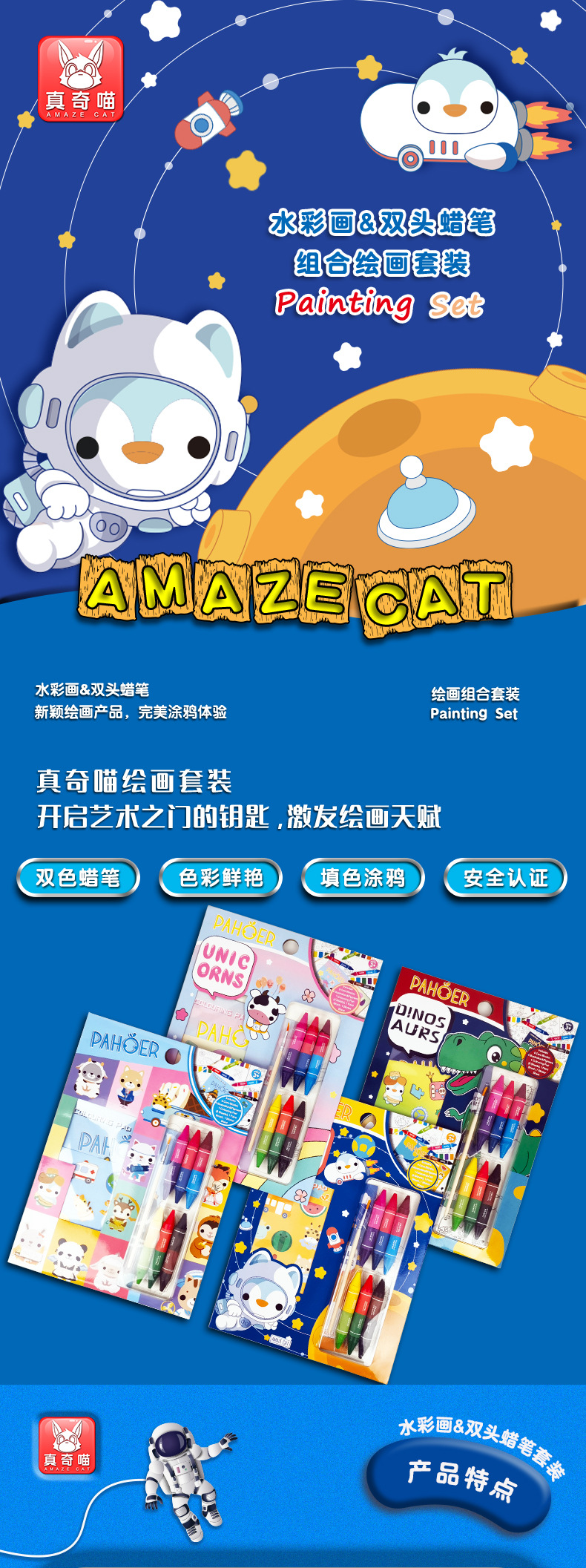 【19.9元秒绘画套装】AMAZE CAT真奇喵水彩画&按动蜡笔组合绘画套装 启蒙宝宝绘画天赋 体验色彩搭配的惊喜