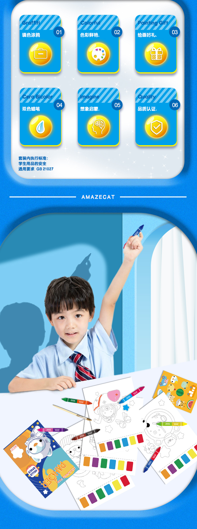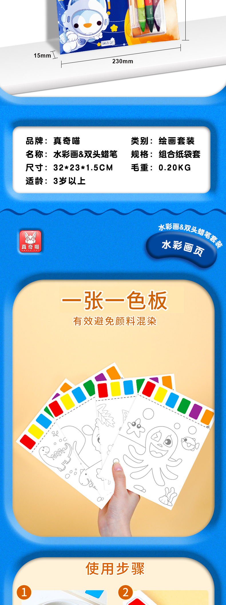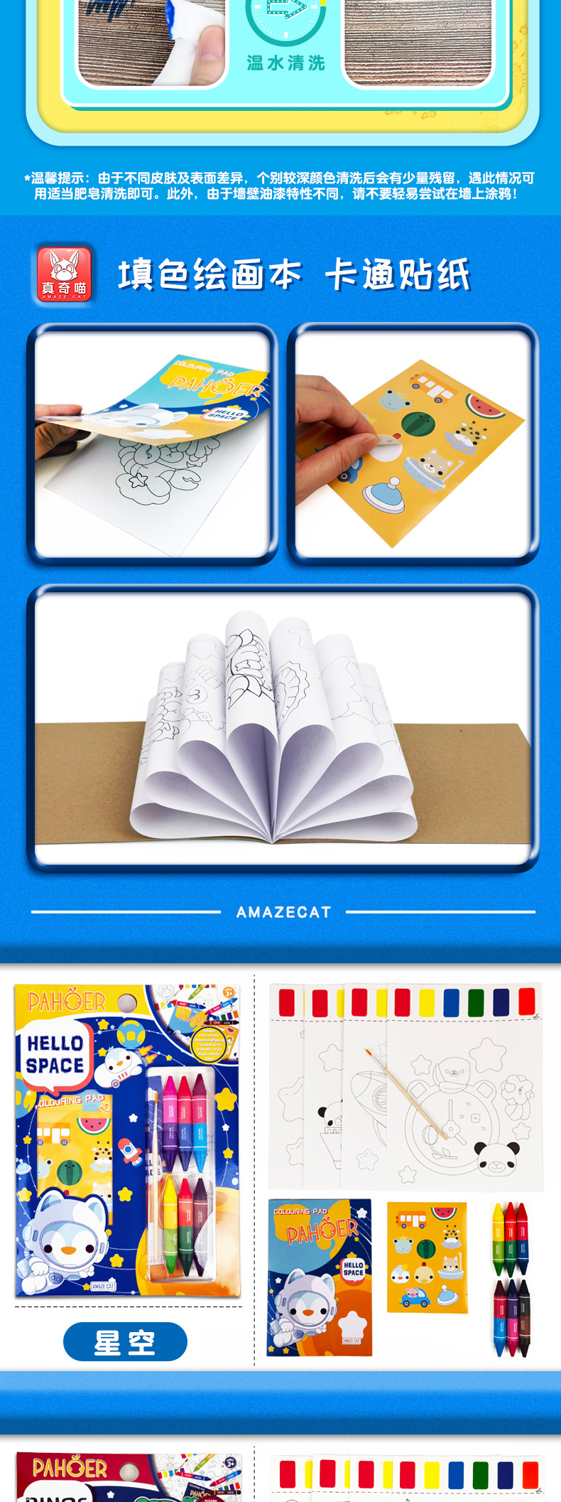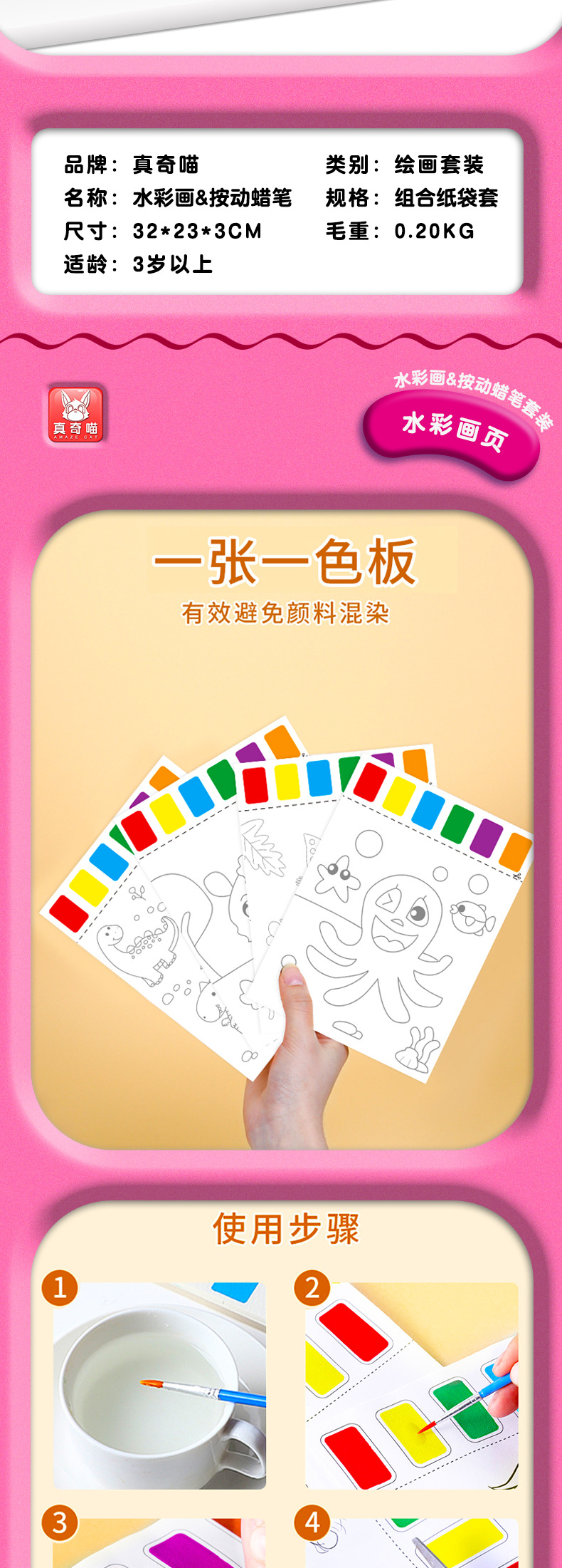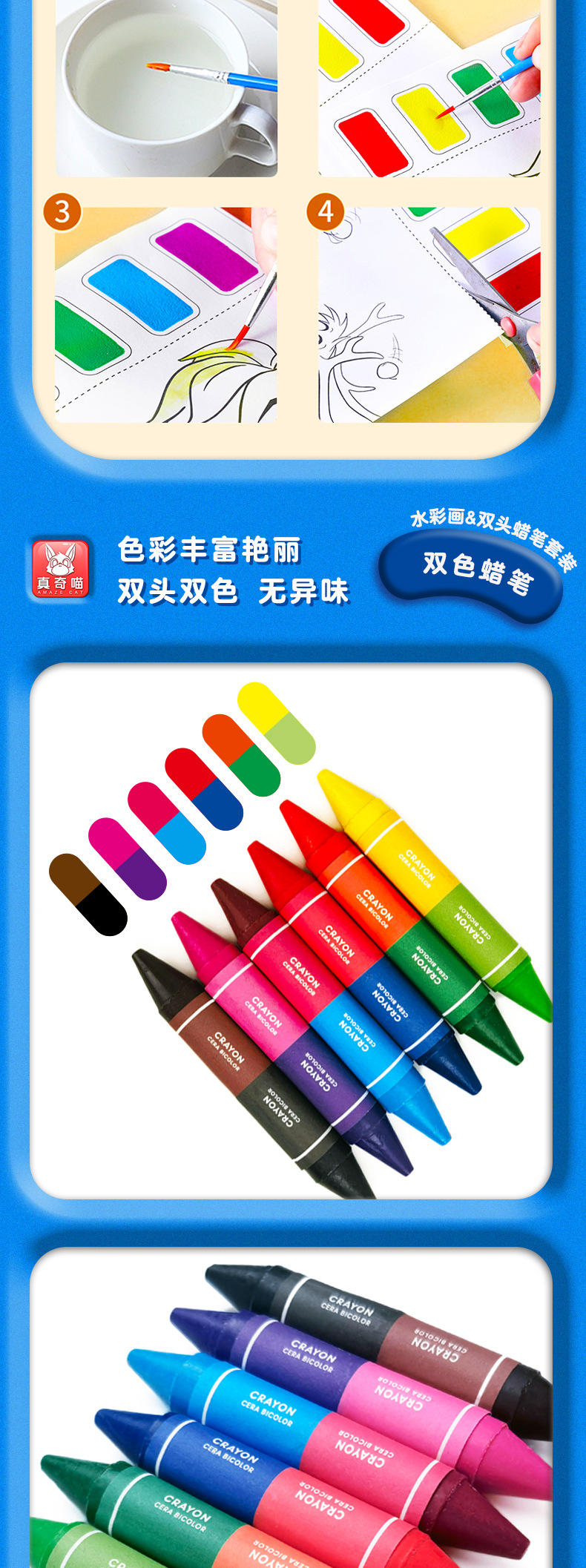 【19.9元秒绘画套装】AMAZE CAT真奇喵水彩画&按动蜡笔组合绘画套装 启蒙宝宝绘画天赋 体验色彩搭配的惊喜
