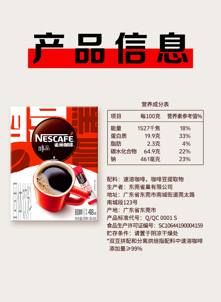雀巢咖啡醇品速溶咖啡(48x1.8g)*2盒