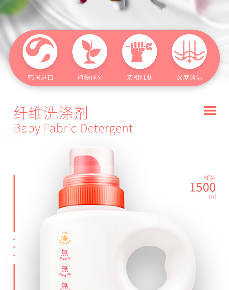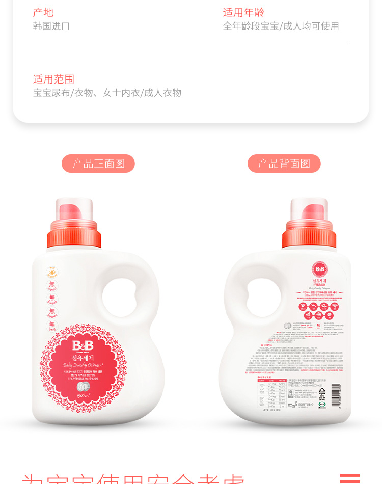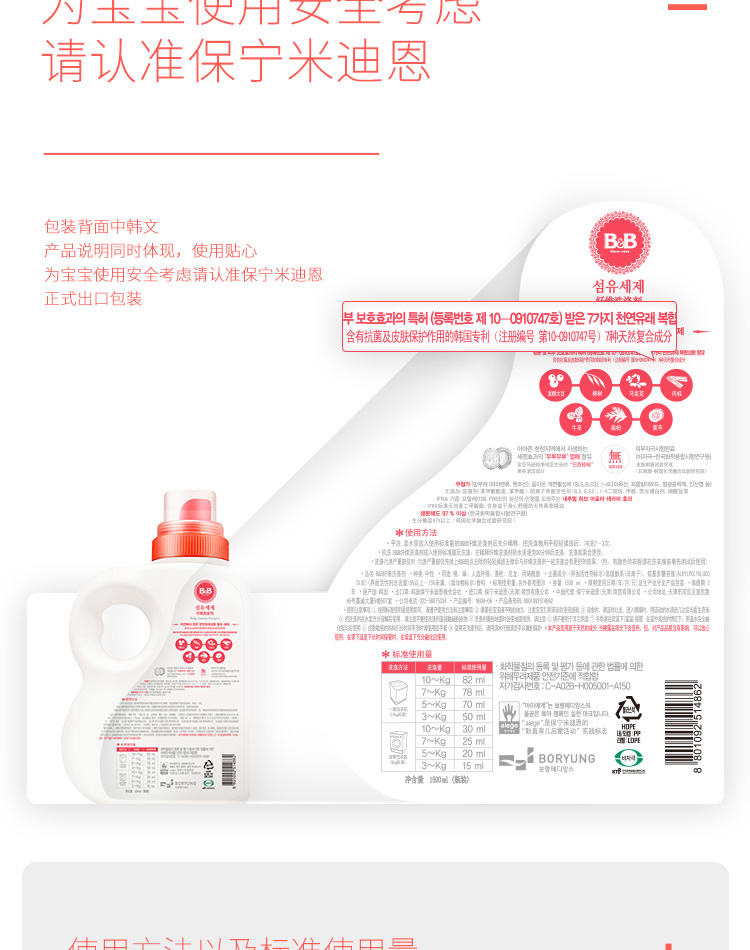 保宁韩国原装进口宝宝洗衣液婴幼儿新生儿童专用洗涤剂衣物清洁可手洗洗衣液瓶装1500ml